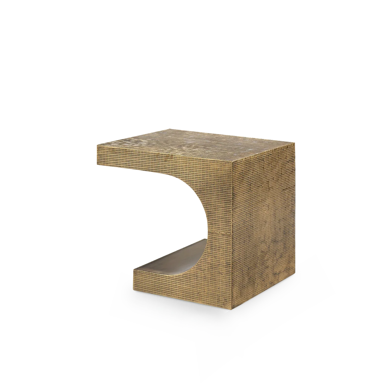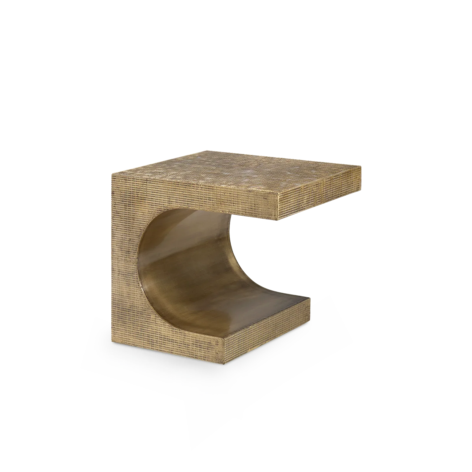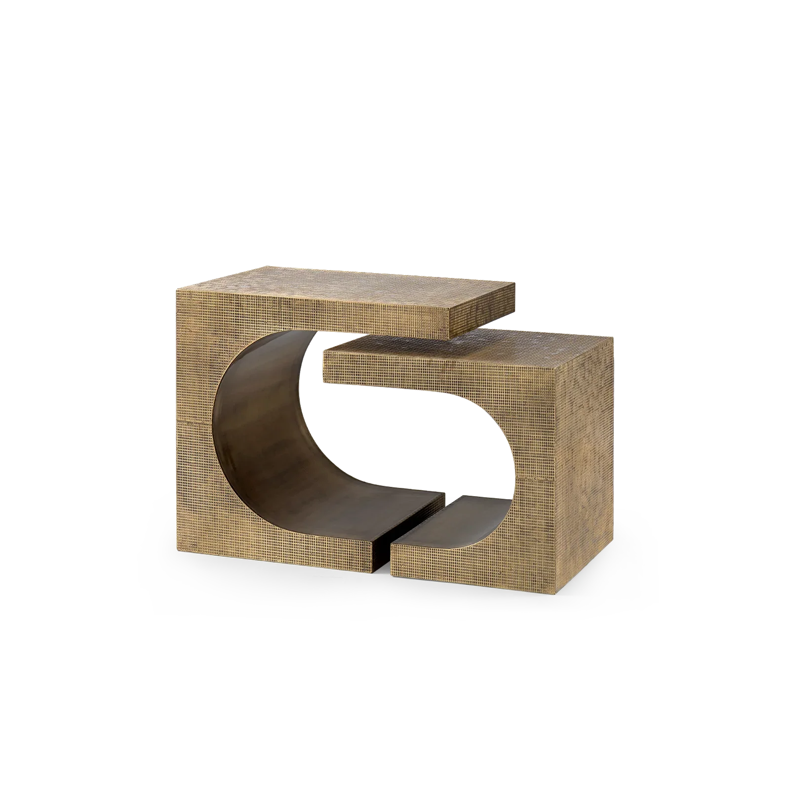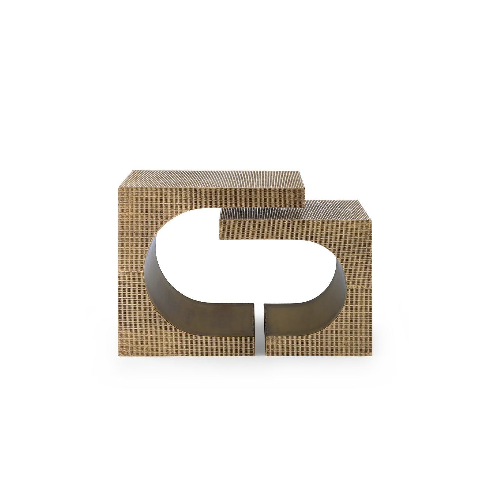 The Dali Side Tables speak to modern moods through timeless design. A perfect example of Villa & House’s expert use of luxe materials and inventive processes, the piece is wrapped in an antique brass cladding. The unexpectedly tactile element enriches the Dali-inspired silhouette, while the smooth interior adds depth and dimension. The Dali Side Tables are a sophisticated pick for minimalist decor schemes, cosmopolitan lofts, or glamorous spaces with gilded accents. The pair can be nested together to create a cool, abstract shaped and sculptural coffee table or used separately in either size.