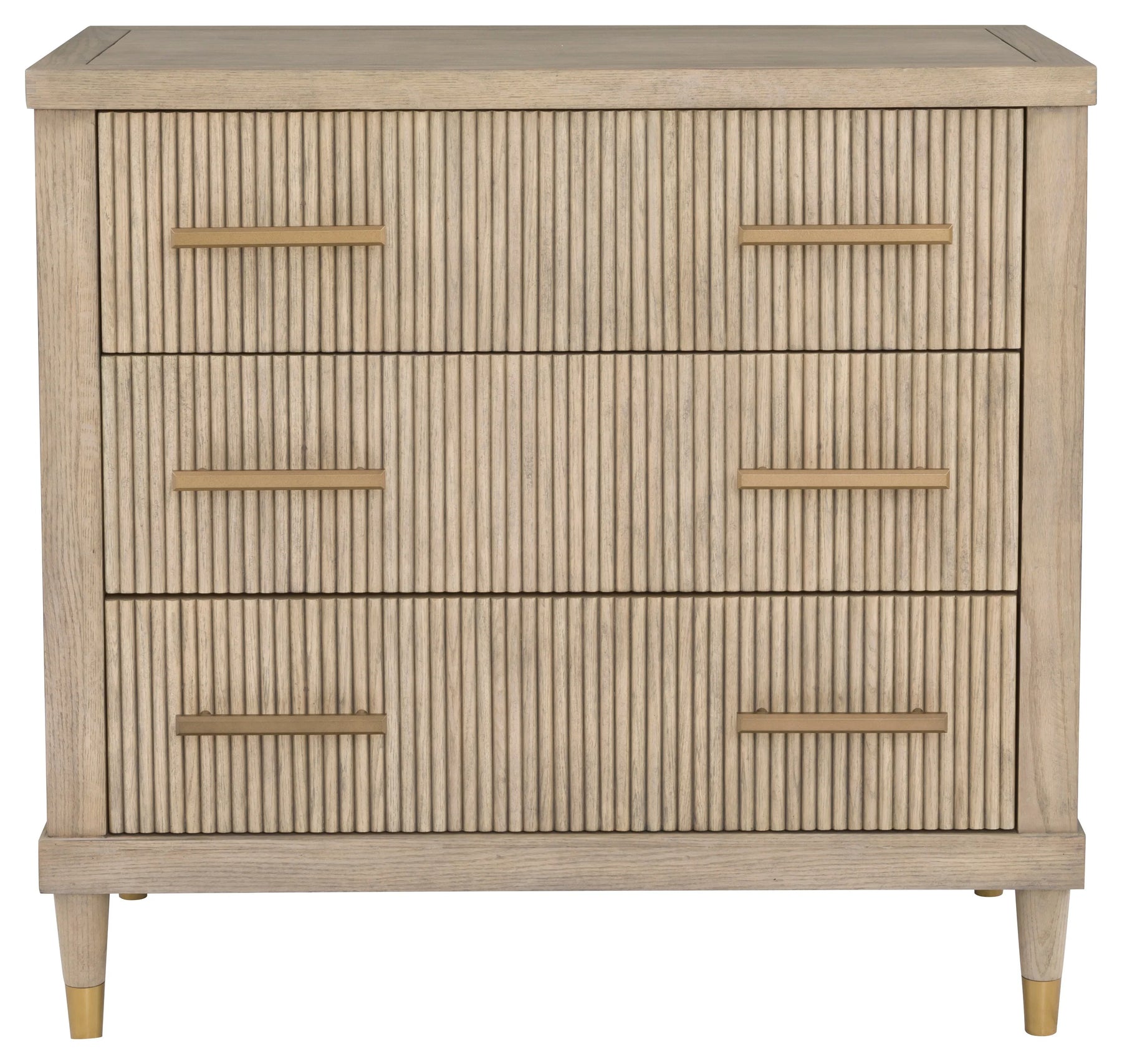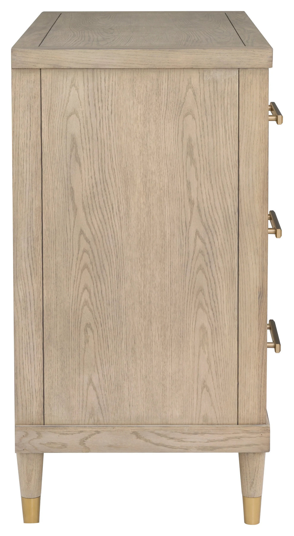 Features Three Drawers Brushed Brass Hardware And Ferrules.