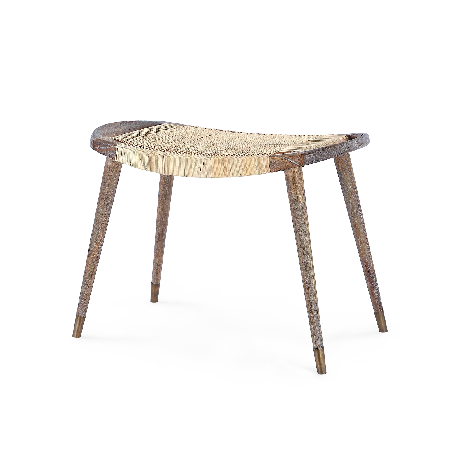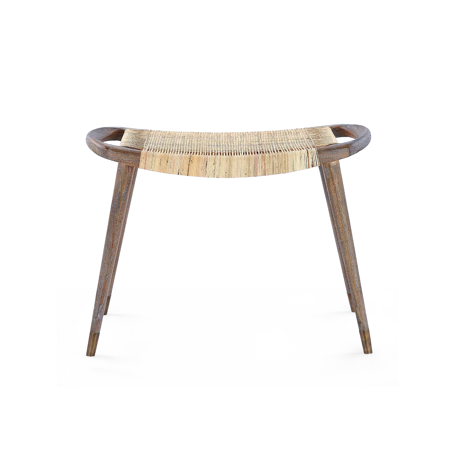 Sustainably-sourced Cape Lilac Mahagony is given fresh new life in the Jerome Stool. Equal parts rustic and modern, the compact stool is full of handcrafted charm. Its seat is made of meticulously hand-woven cane, gently curved for ultimate comfort. Our craftsmen also had convenience in mind when they included two subtle handles in its form, ensuring easy pick-up and portability. The Jerome’s natural wooden frame, here featuring a driftwood finish, also embodies mid-century modern style with its four tapered legs, fashioned at an angle and capped with bronze sabots. Its organic materials and airy form make it breezy, beachy, and cool paired with anything from a vanity to a console table.