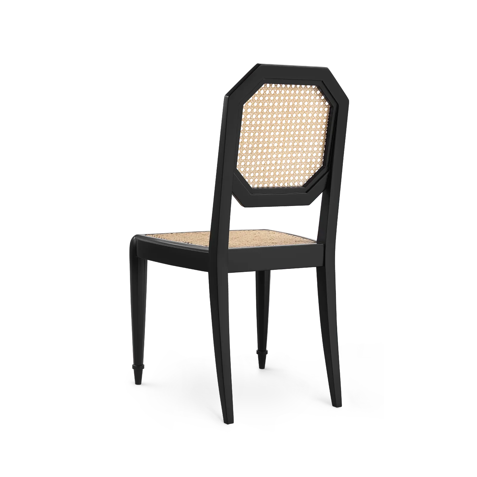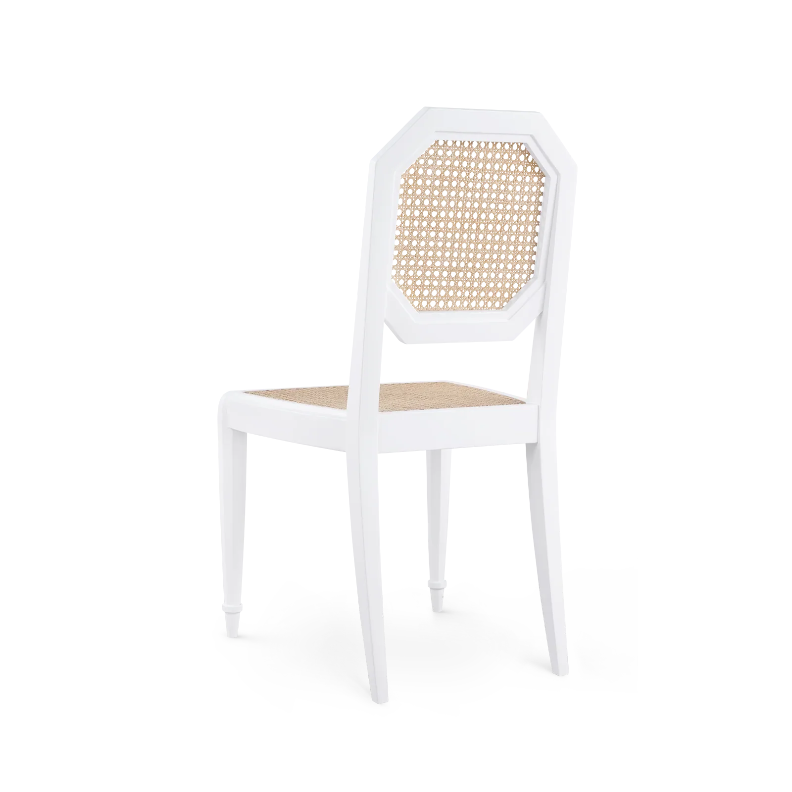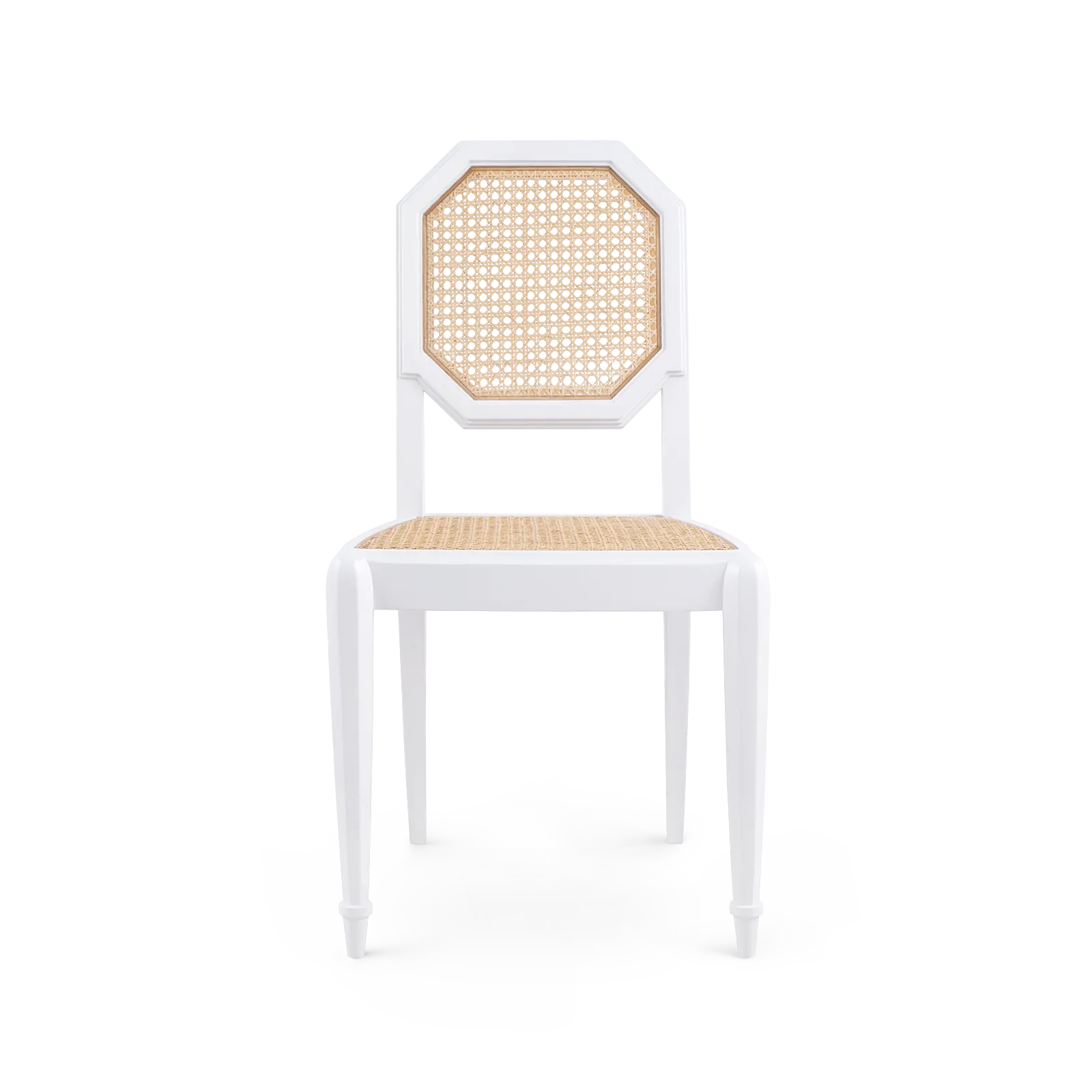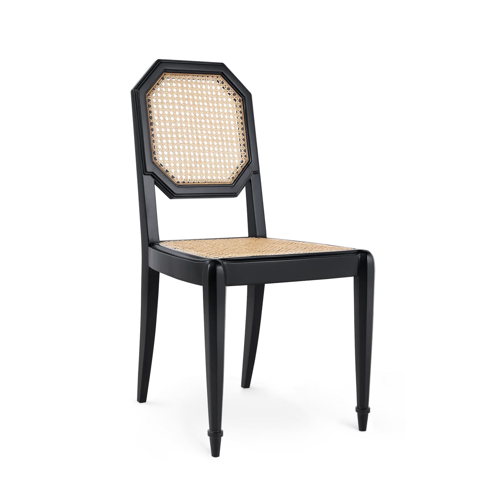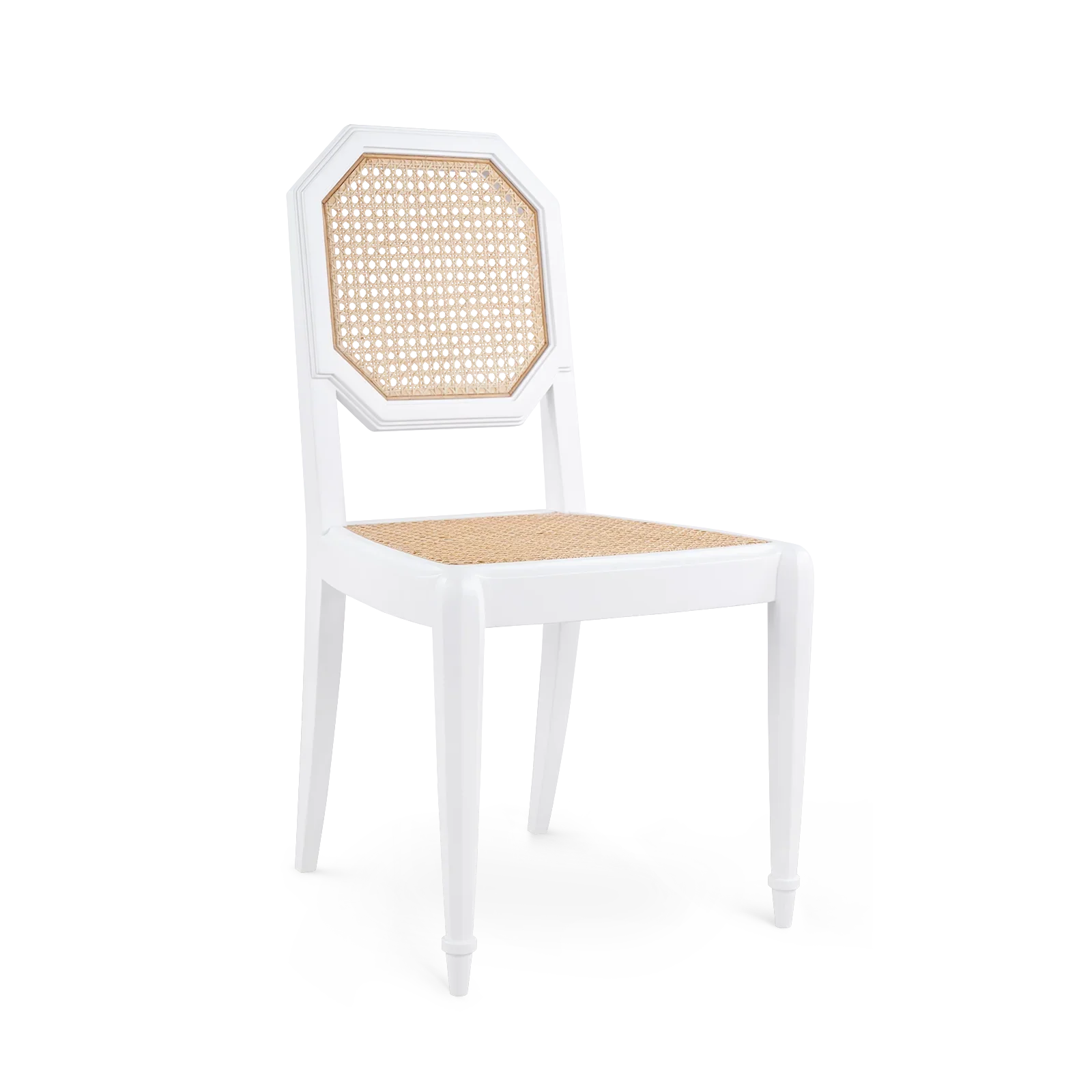 Hand-carved detailing is on full display with our Leila Side Chair. The octagonal seat back is slightly curved for comfort and accented with multi-layered channels. The back and seat are adorned with cane, and each leg is deftly tapered. French-inspired, this elegant and feminine seat is slightly smaller in scale and works perfectly as a vanity or desk seat, yet it would still be a beautiful and practical option to surround a dining room table.
