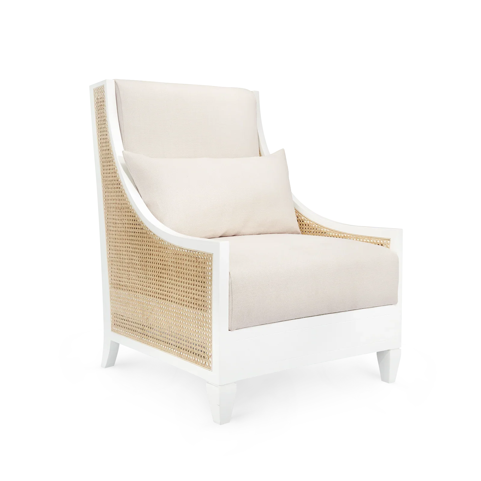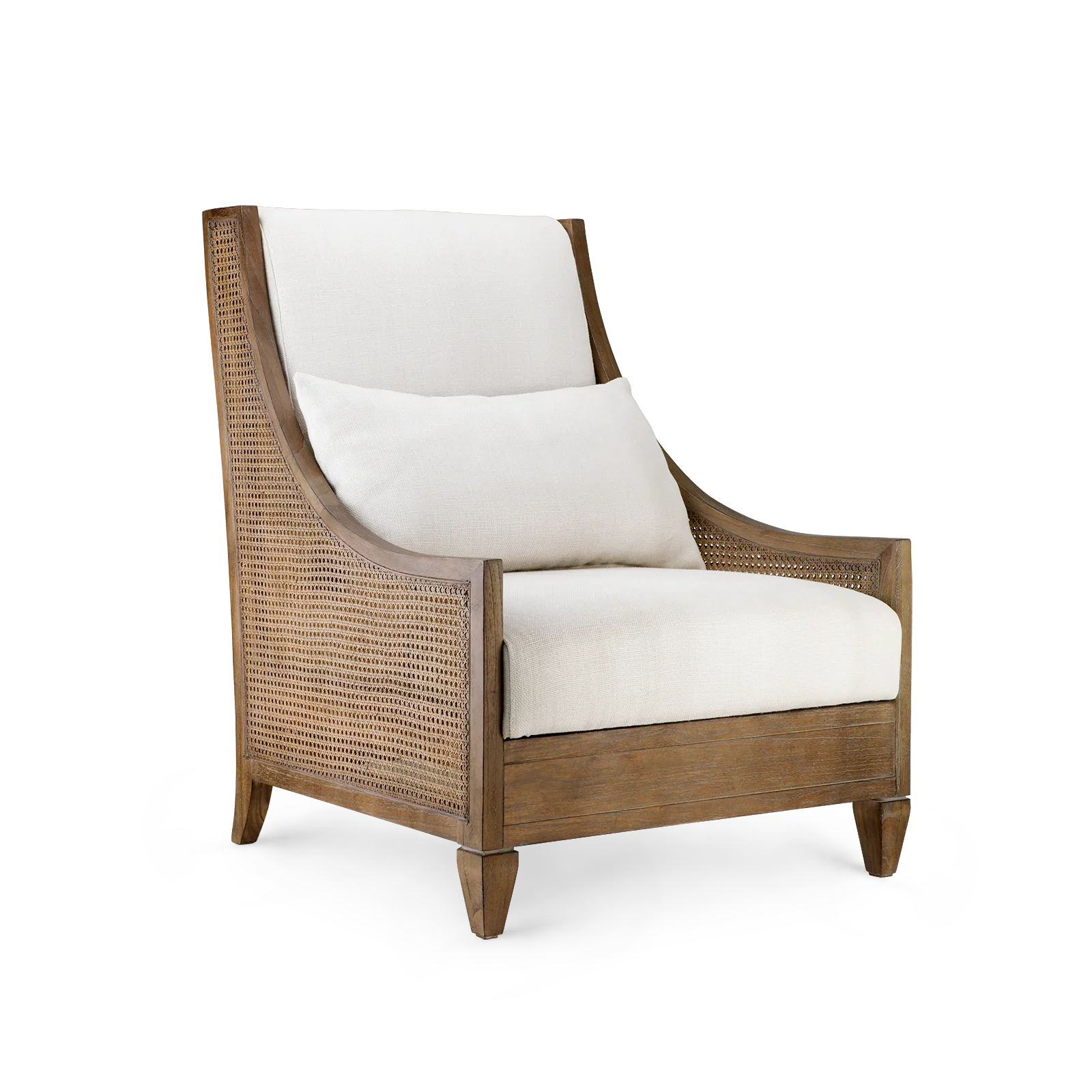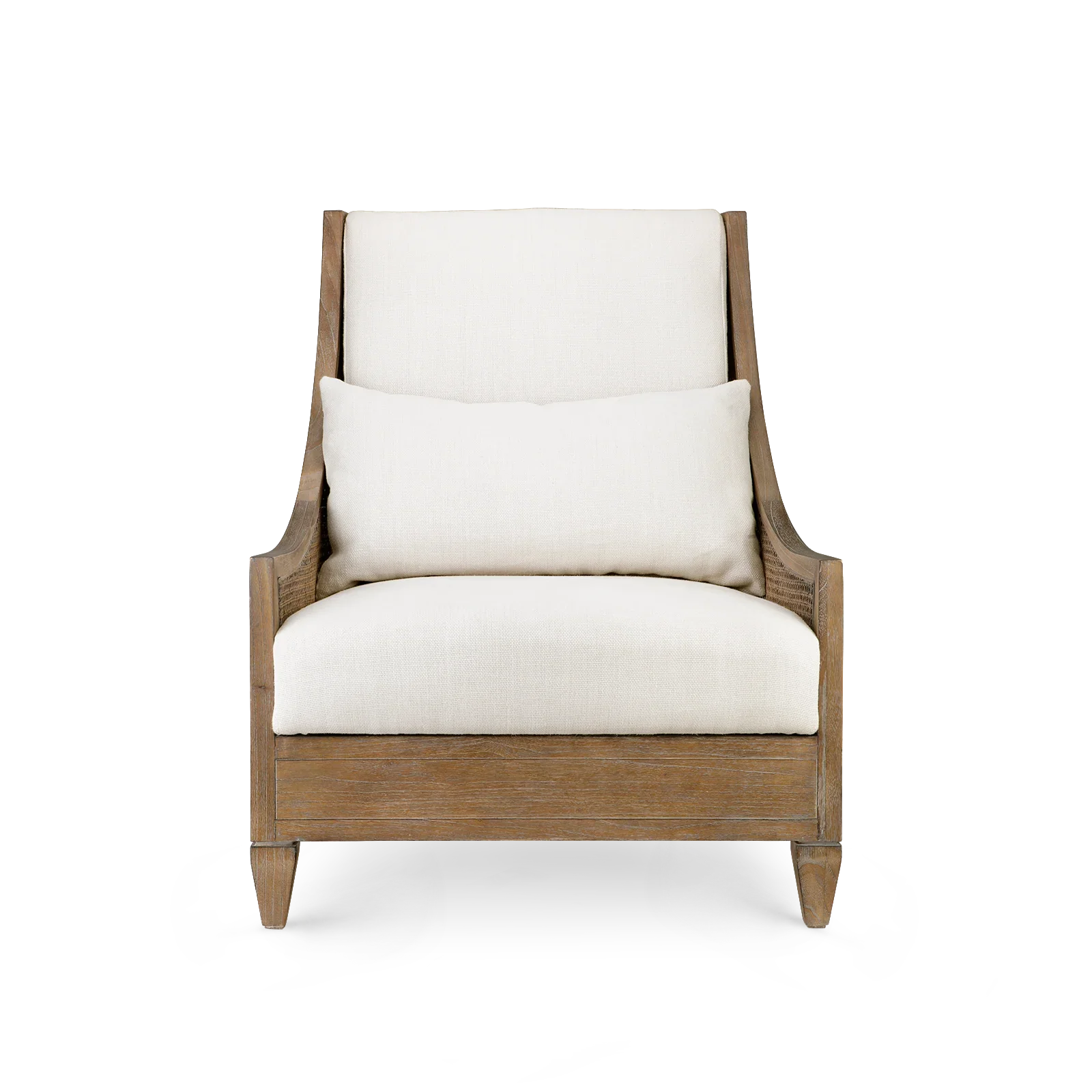 With classic profiles and light, natural materials, our Raleigh Collection embraces old school charm—with a few upscale updates, of course. Bring the vacation vibes home with our Raleigh Club Chair, a modern, resort-inspired evolution of a French favorite. Its robust silhouette recalls the Bergères chair in the Louis XV style, though our masterful craftsmen have reimagined it to achieve a relaxed and refined aura that feels more laid-back. Fashioned from sustainably-sourced frame of Solid Oak with a rustic driftwood finish, the gracefully sloping framework provides arm support with the look of ultimate elegance. Artisanally hand-tied caning has been applied to its back and sides, lending the Raleigh a luxuriously organic look fit for a modern farmhouse or breezy beach home. It’s topped with drop-in linen upholstery for chic comfort and cool neutrality. Whether posed as an accent in a sitting room or set in a pair in an indoor space, the Raleigh provides a plush seat with regal ambitions.
