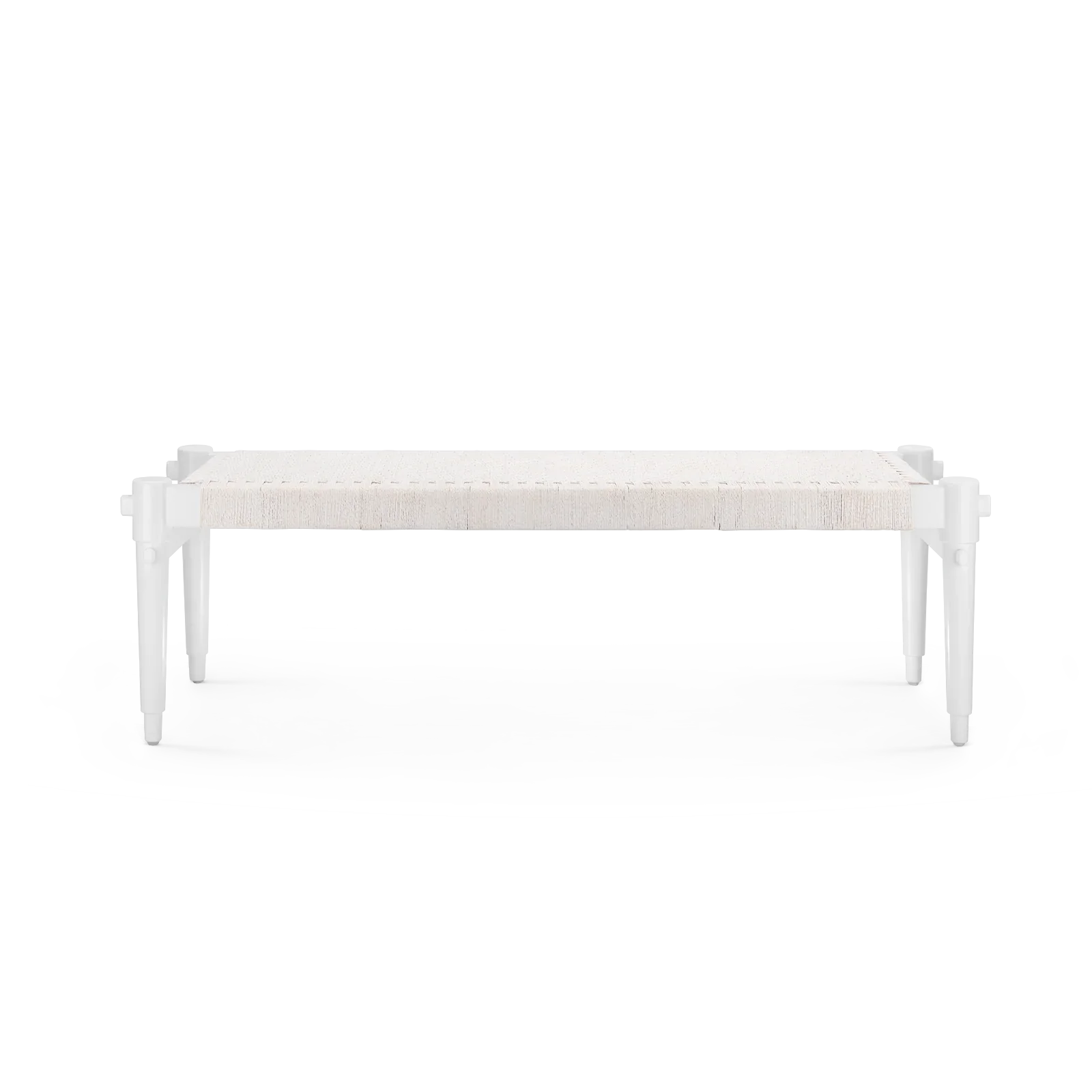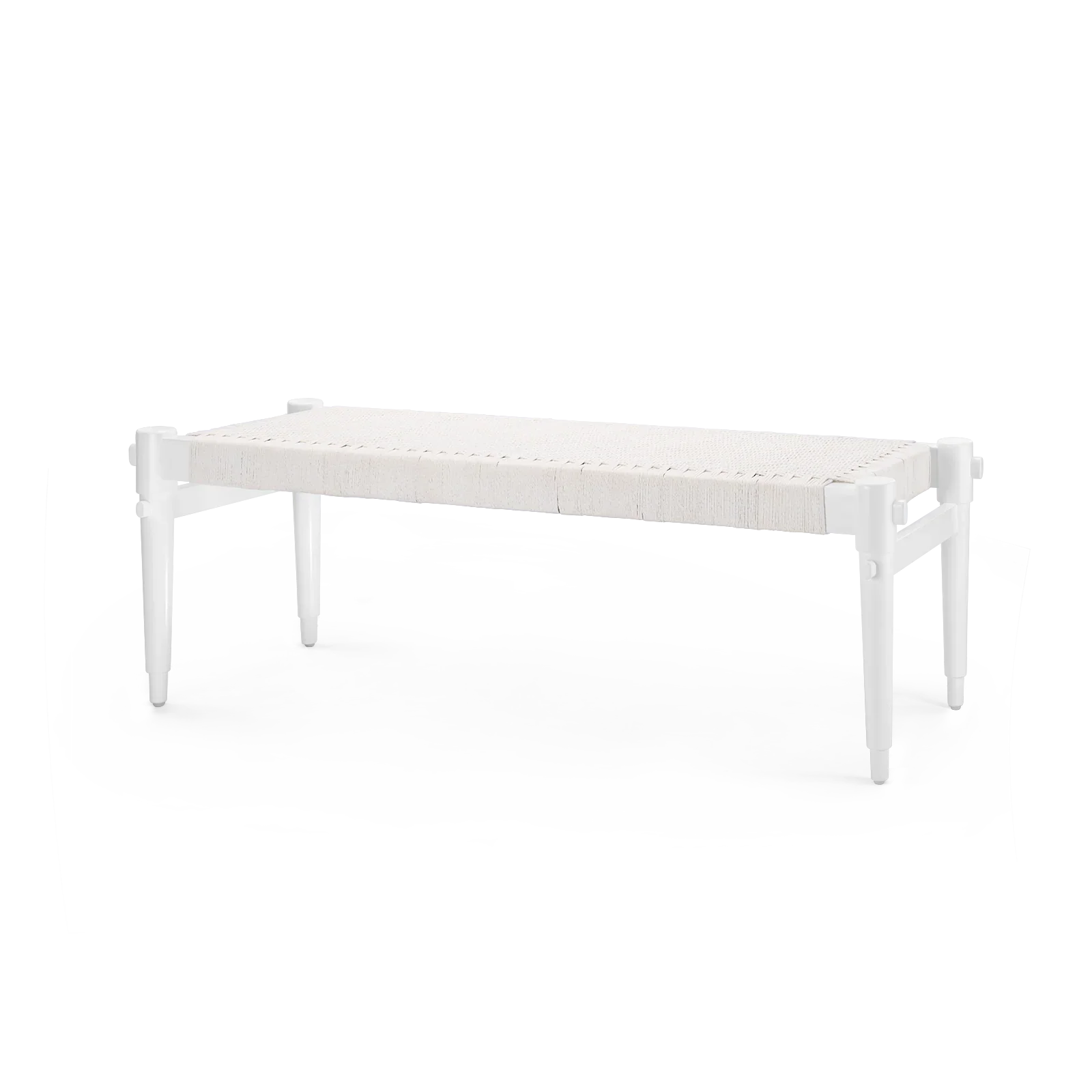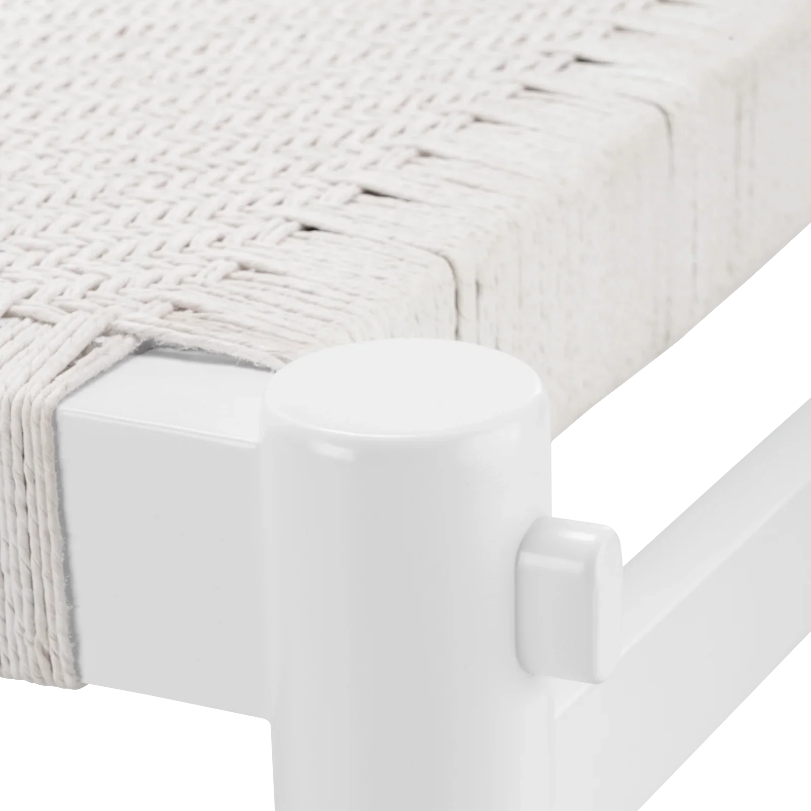 A petite seat that embodies laid-back luxury, the Rope Bench is a functional accent that can be used in an entryway on its own or tucked beneath a console or large vanity. Its fresh white finish and organic materials also make it ideal for indoor-outdoor spaces or sitting rooms with beachy or modern farmhouse themes. Meticulously crafted using old-world techniques, the Rope Bench nevertheless achieves a distinctly modern aesthetic. Its frame of lacquered mahogany speaks to its high-end quality, as its seat of handwoven rope underscores its artisanal craftsmanship. Coated with an all-over white finish, the design complements most any decor scheme. We love a piece that adapts to your needs.