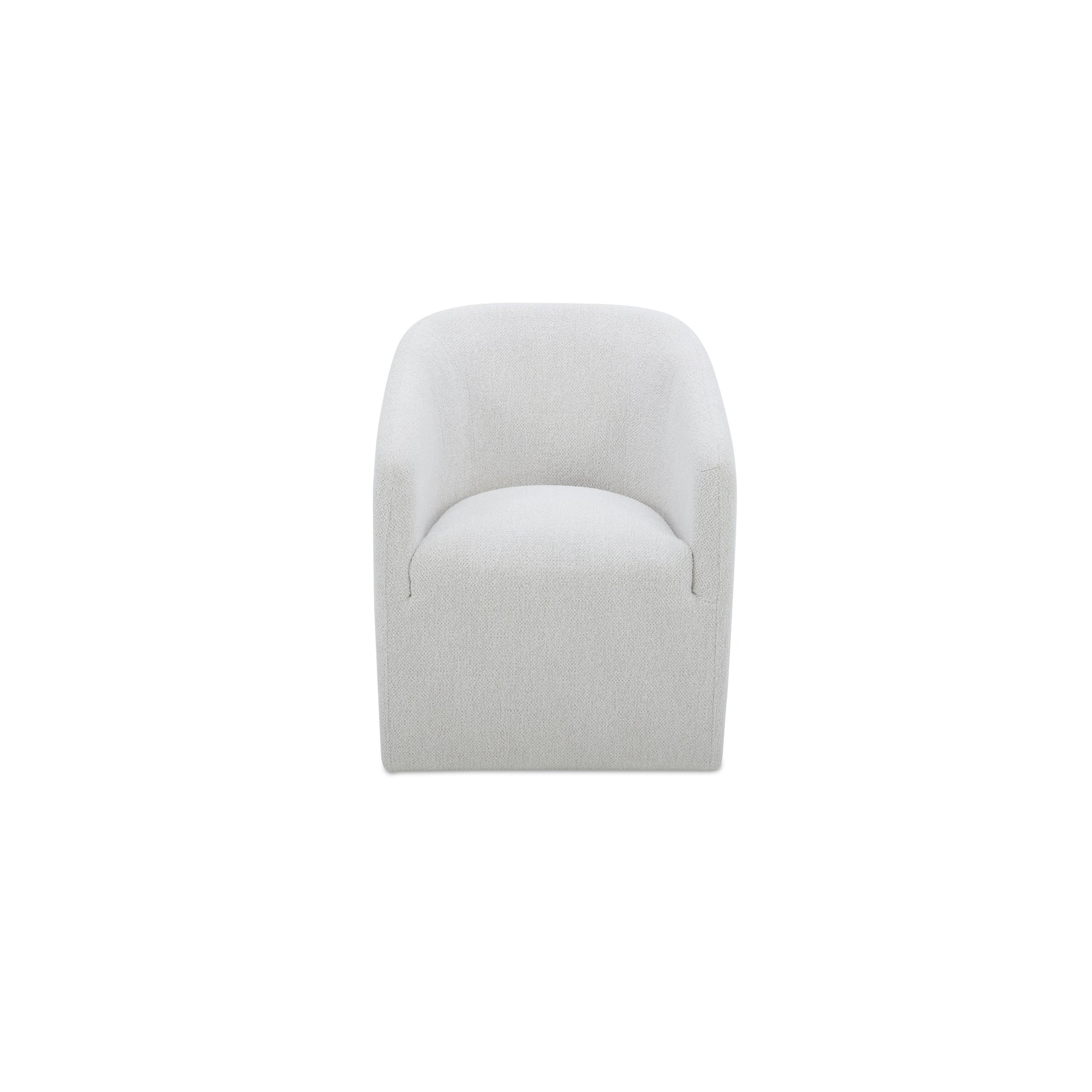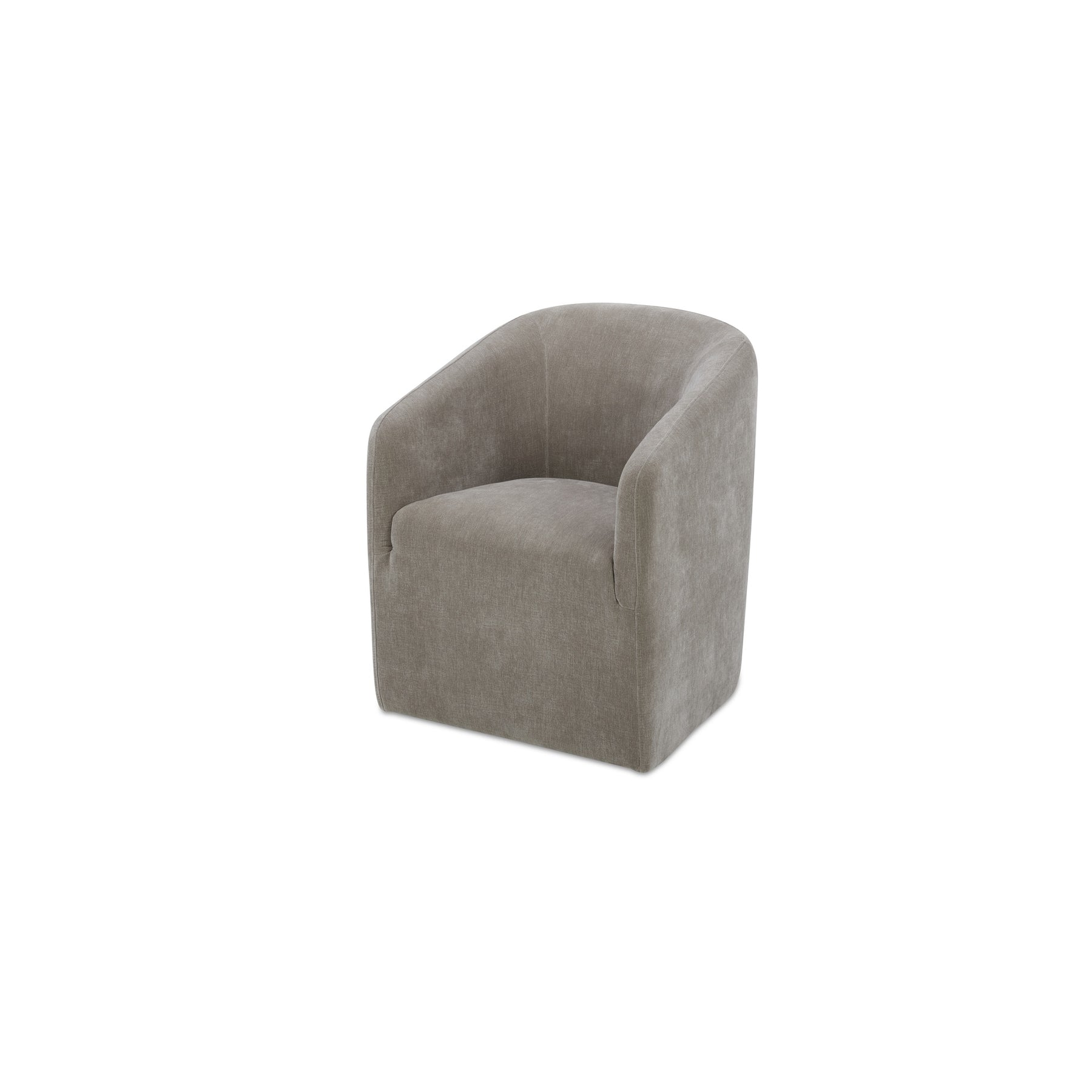 Looks polished and rolls with it. Sandy brings ease to the table. With a curved back, comfy seat, and smooth-rolling casters, it’s built for long meals, quick coffees, and anything in between. Fully wrapped in soft fabric upholstery, the silhouette feels seamless and considered--for diners who like to drift.