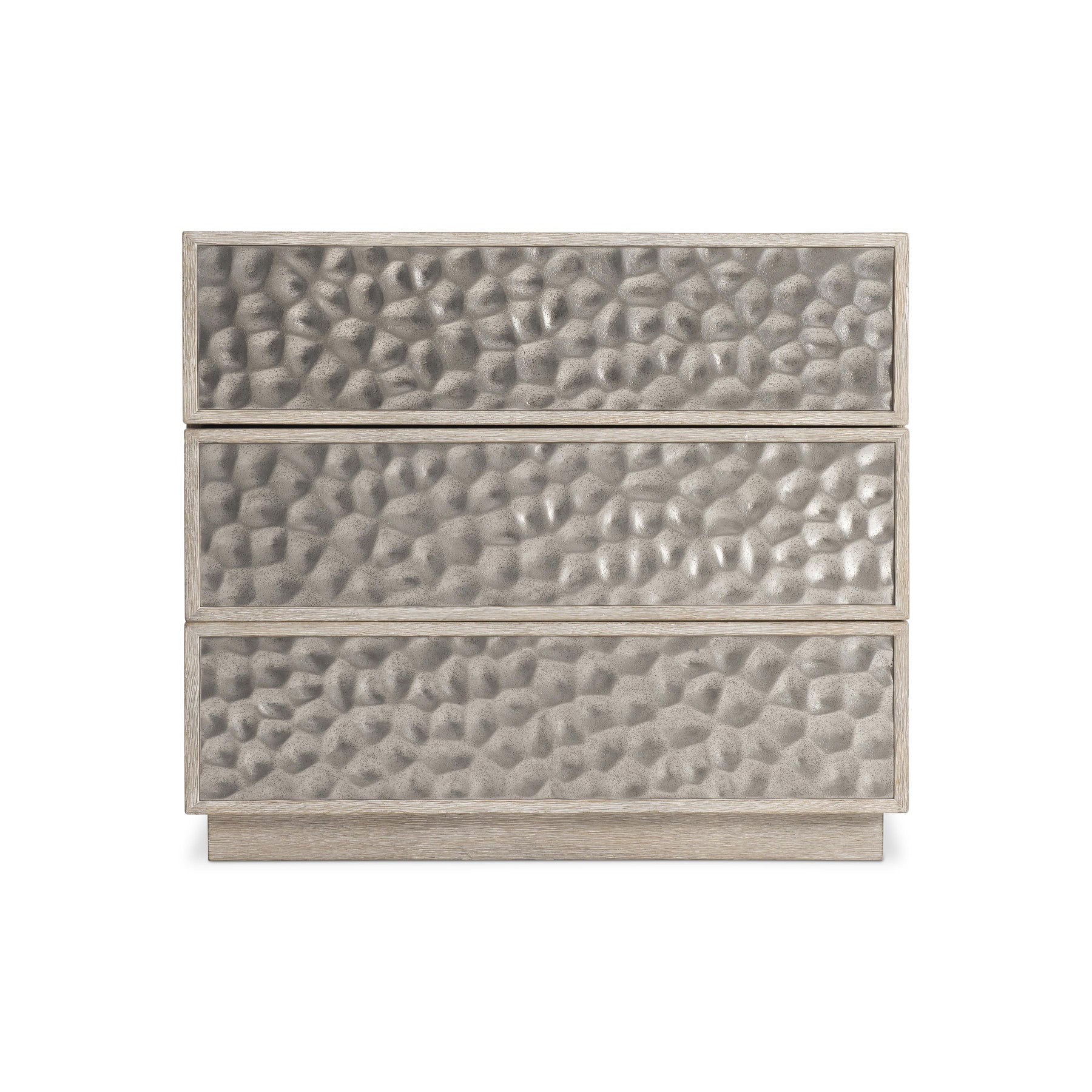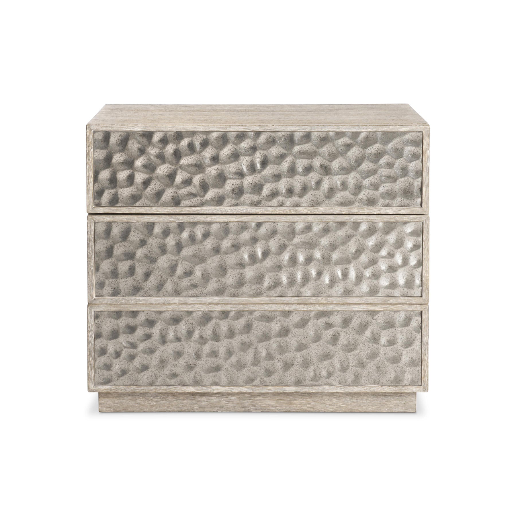 Bernhardt's commitment to honest construction and premium materials is demonstrated in every aspect of this piece. Oak nightstand in trevin finish. three push-to-open drawer with hammered cast aluminum front inlays in graphite finish. plinth base. two-port a, and c usb charging unit. adjustable glides. The cumulative effect of these construction choices is furniture that will maintain its beauty, structural integrity, and functional precision through years of daily use.
