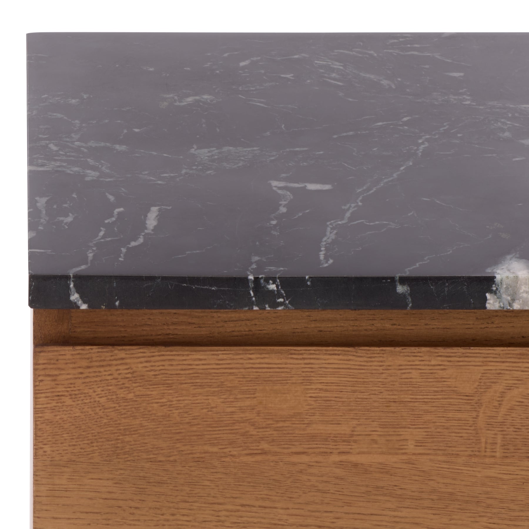 Elevate your bedroom decor with the Lilybelle marble top 2 drawer nightstand, where timeless design meets modern elegance. Featuring a stunning marble surface paired with sleek walnut and black finishes, this piece blends natural beauty with refined craftsmanship. The dual drawers offer ample storage space for your evening essentials, making it both functional and stylish. Crafted from a harmonious mix of marble and wood, it serves as a versatile addition to any bedside. Use its spacious top to display decor or keep your nighttime necessities within reach. The nightstands bold look adds an undeniable touch of sophistication to your living space, making it an ideal choice for those who appreciate style combined with utility. Transform your bedroom into a retreat of charm and character with this exquisite nightstand.