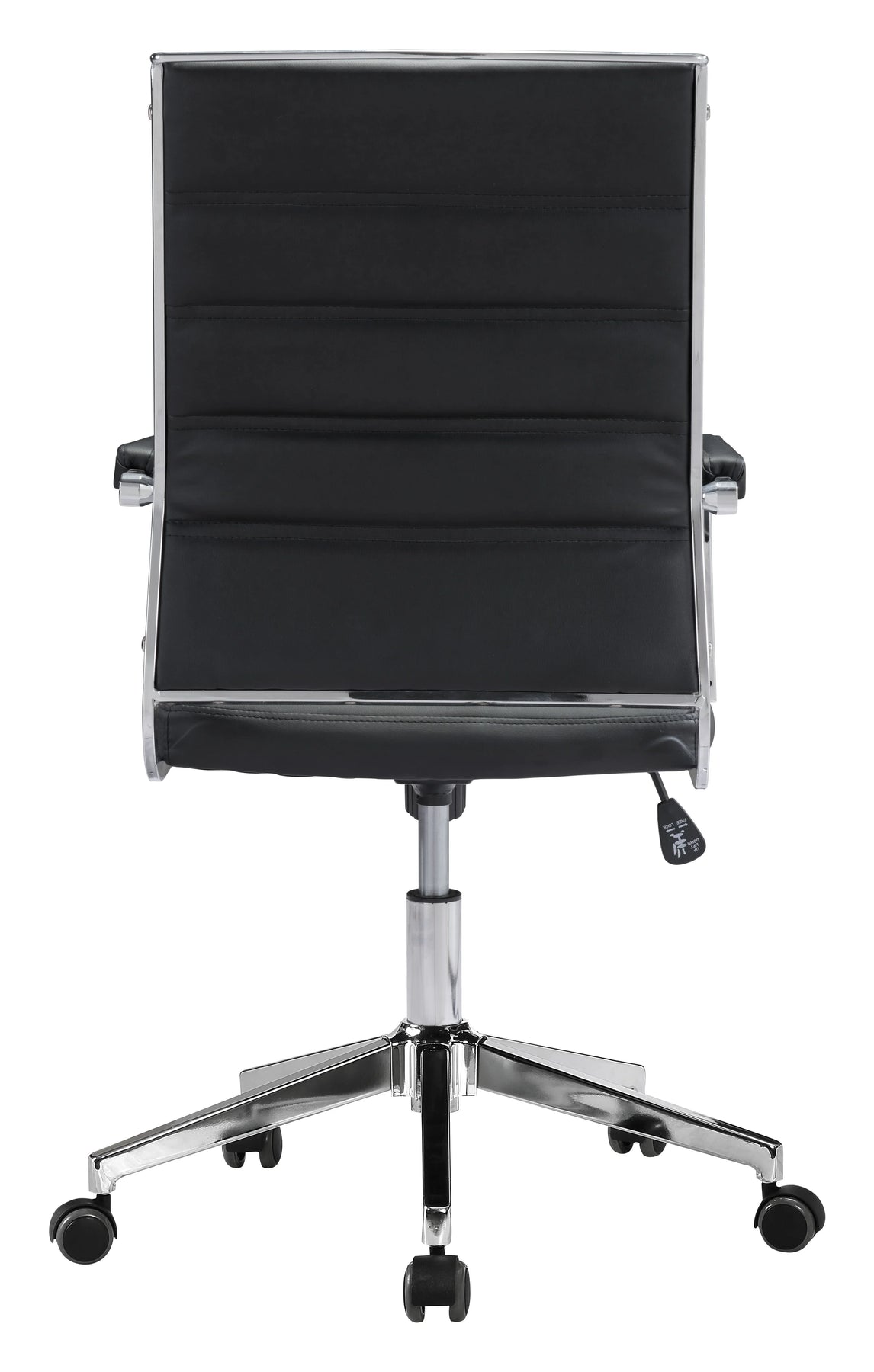 The Liderato Office Chair has mid century modern urban lines and looks great in any space. With a heavy duty vinyl covering and a sturdy steel frame, this chair fits in any dining room, home office, or even as a bedroom accent chair. The frame and base are chrome plated for a sleek modern look.