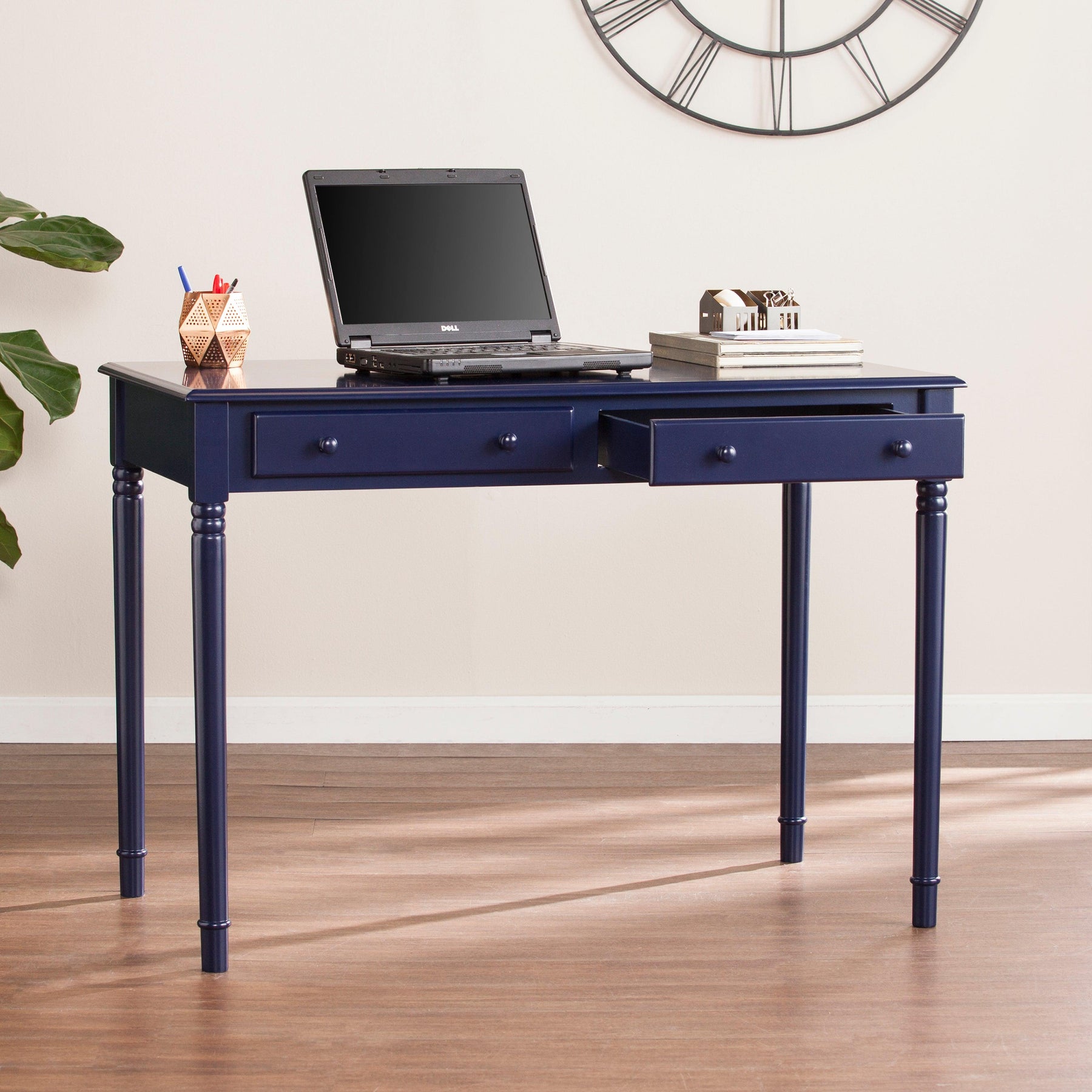 Janice Farmhouse 2-Drawer Writing Desk - Navy