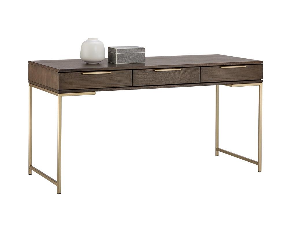 The Rebel Desk brings Sunpan Modern's clean-lined, transitional aesthetic into sharp focus. This commanding piece in a Gold finish merges architectural proportion with material sophistication, embodying the Canadian brand's belief that contemporary furniture should be as refined as the spaces it inhabits. Every curve, angle, and surface has been deliberately designed to deliver visual impact without sacrificing livability.