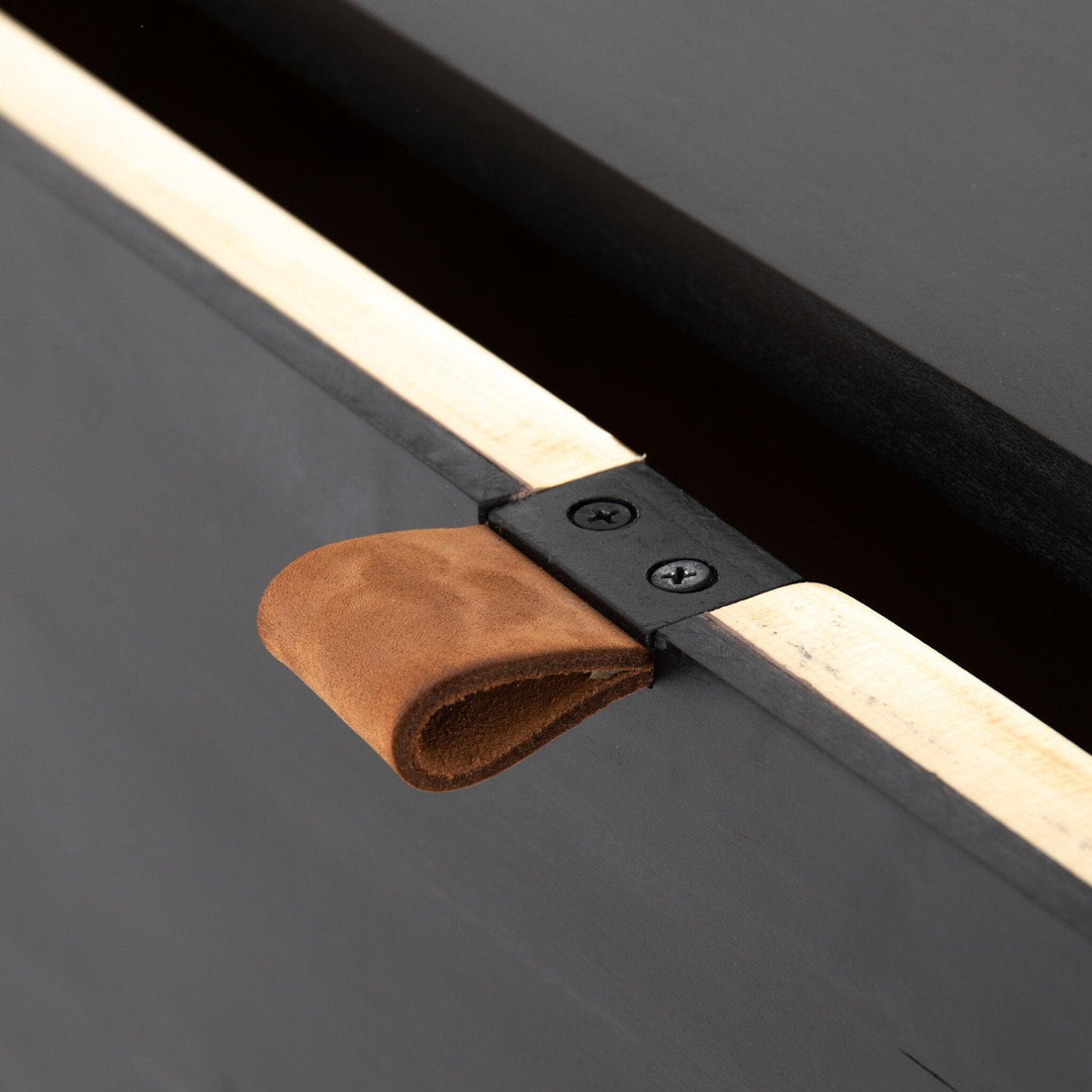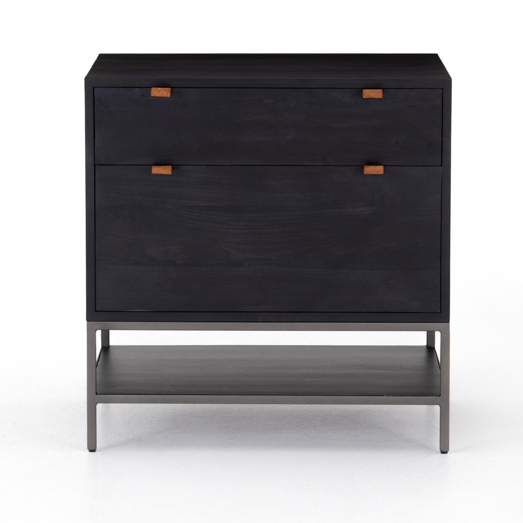 Inspired by clean mid-century design greyish auburn poplar offers generous extra file storage space with a fully finished back plus metal-secured leather pulls for an element of surprise. Great solo or paired with matching desk or credenza.
