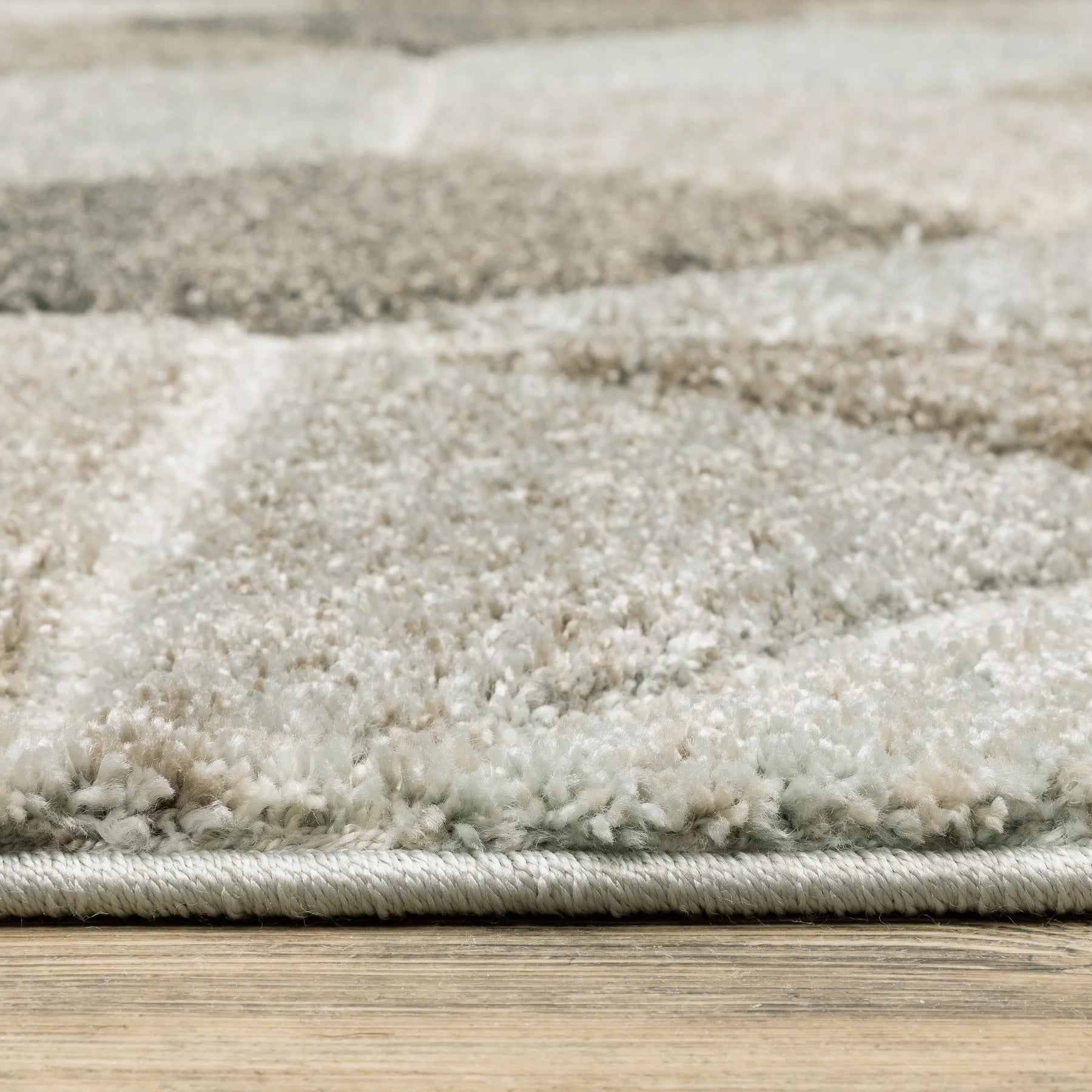 The Cambria collection features warm tonal neutral colors as well as subtle hues of pale blue and mint. It is power-loomed of super soft polypropylene. The dense, high-pile construction is carved, lending visual and tactile appeal to the soft modern designs.