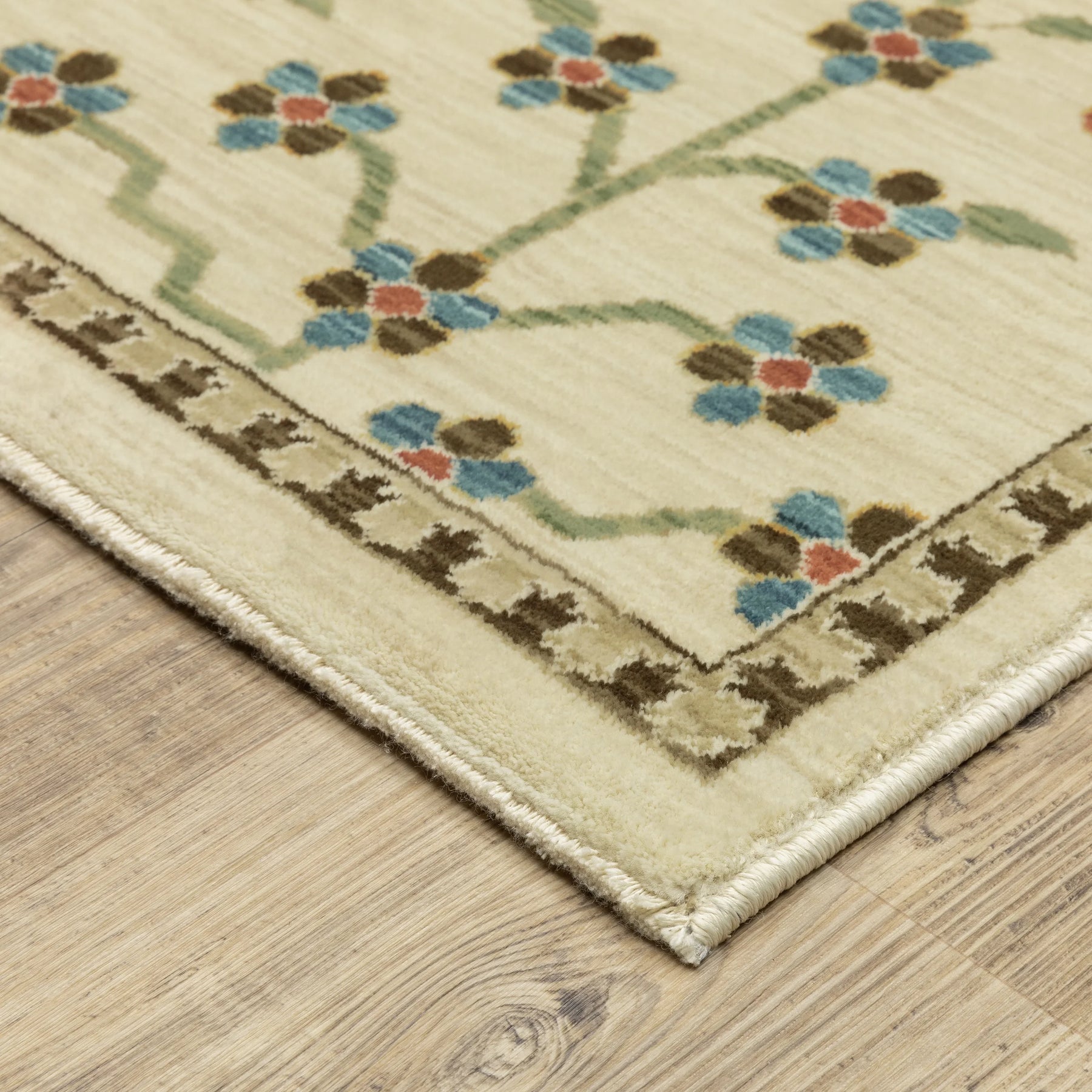 The Francesca collection features softened jewel tones of sapphire and turquoise, muted gold, and cinnabar alongside nature-inspired neutrals and an earthy brown and green. It is power-loomed of space dyed, super soft polypropylene. Francesca showcases updated traditional patterns highlighting open fields, updated borders, and some folk-art flair.