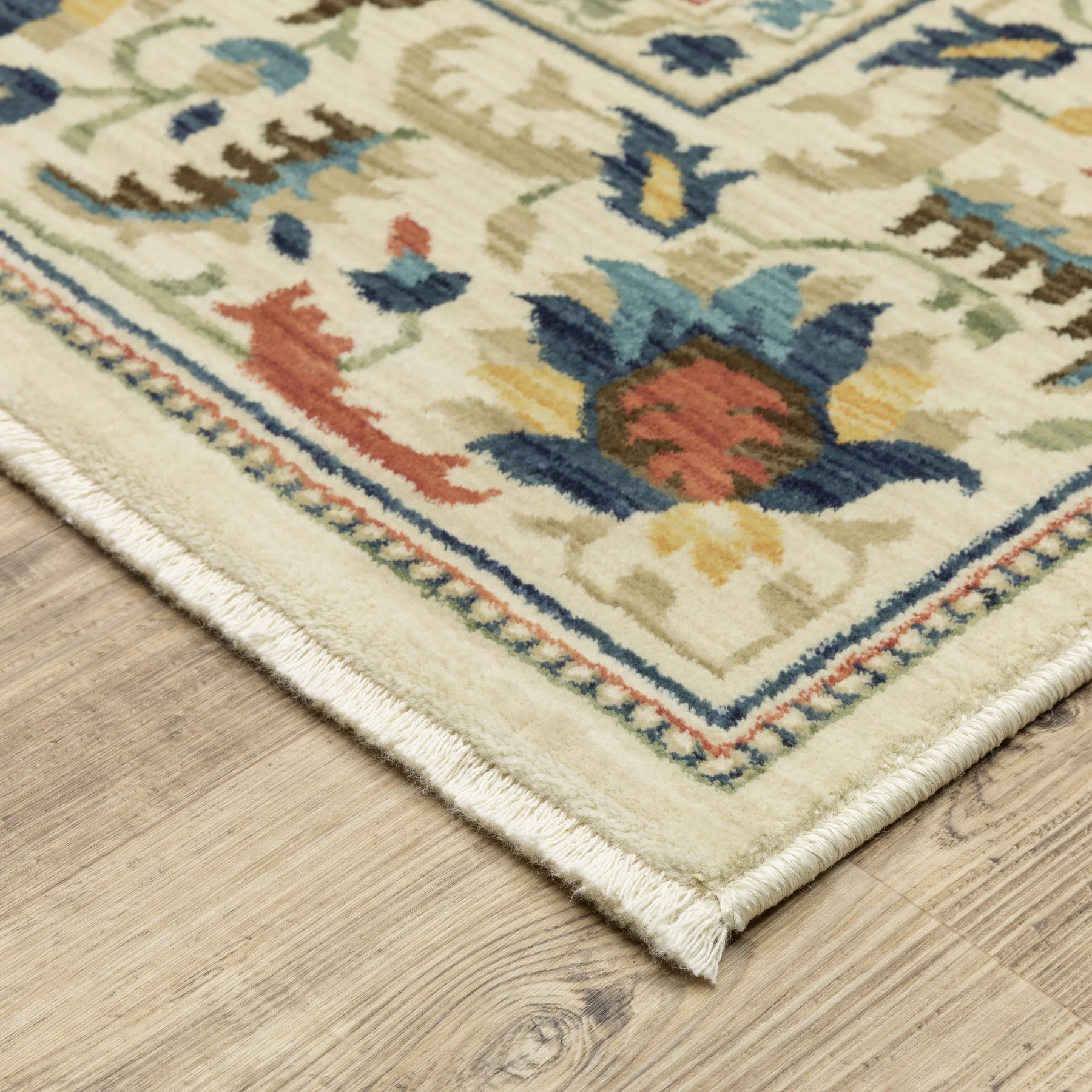 The Francesca collection features softened jewel tones of sapphire and turquoise, muted gold, and cinnabar alongside nature-inspired neutrals and an earthy brown and green. It is power-loomed of space dyed, super soft polypropylene. Francesca showcases updated traditional patterns highlighting open fields, updated borders, and some folk-art flair.