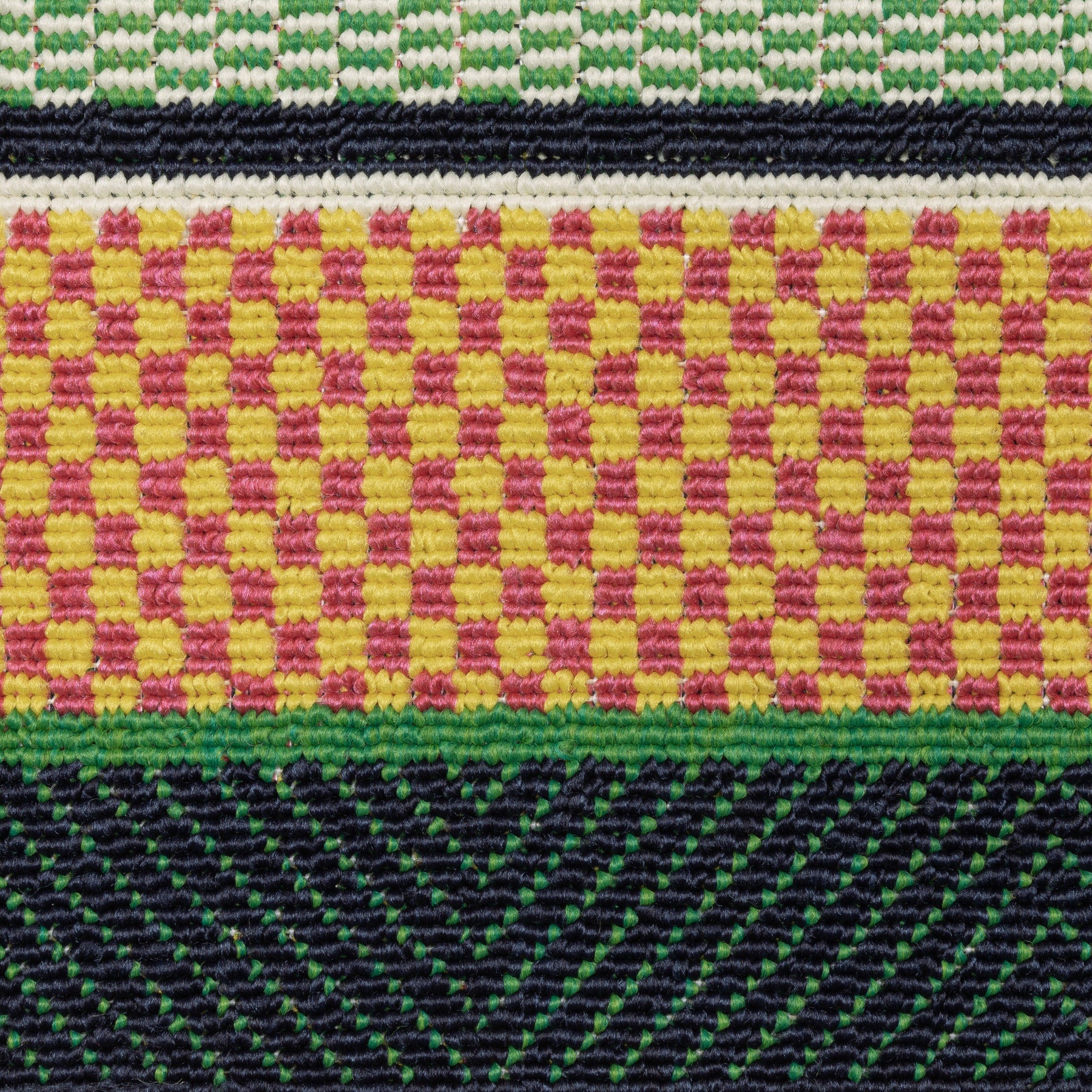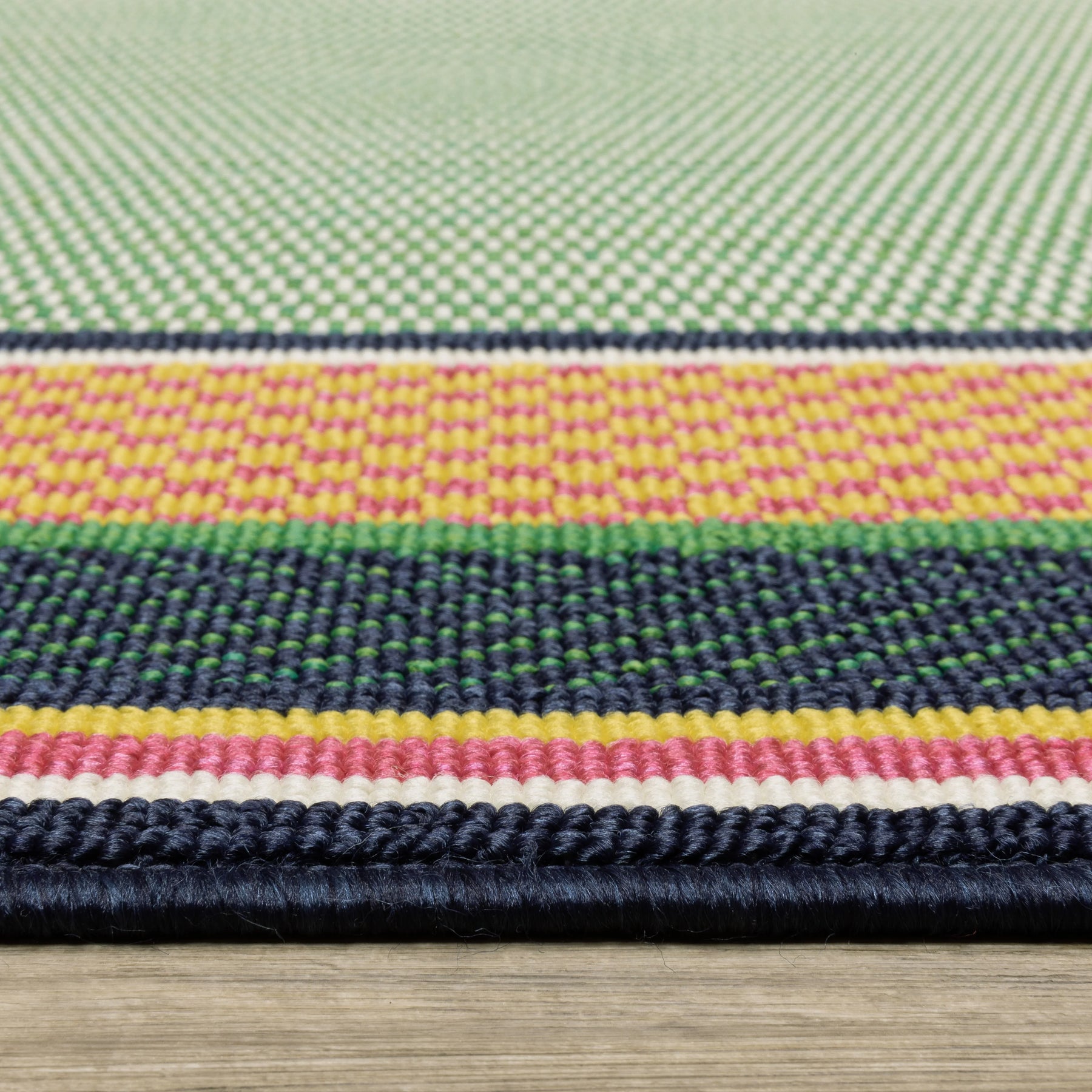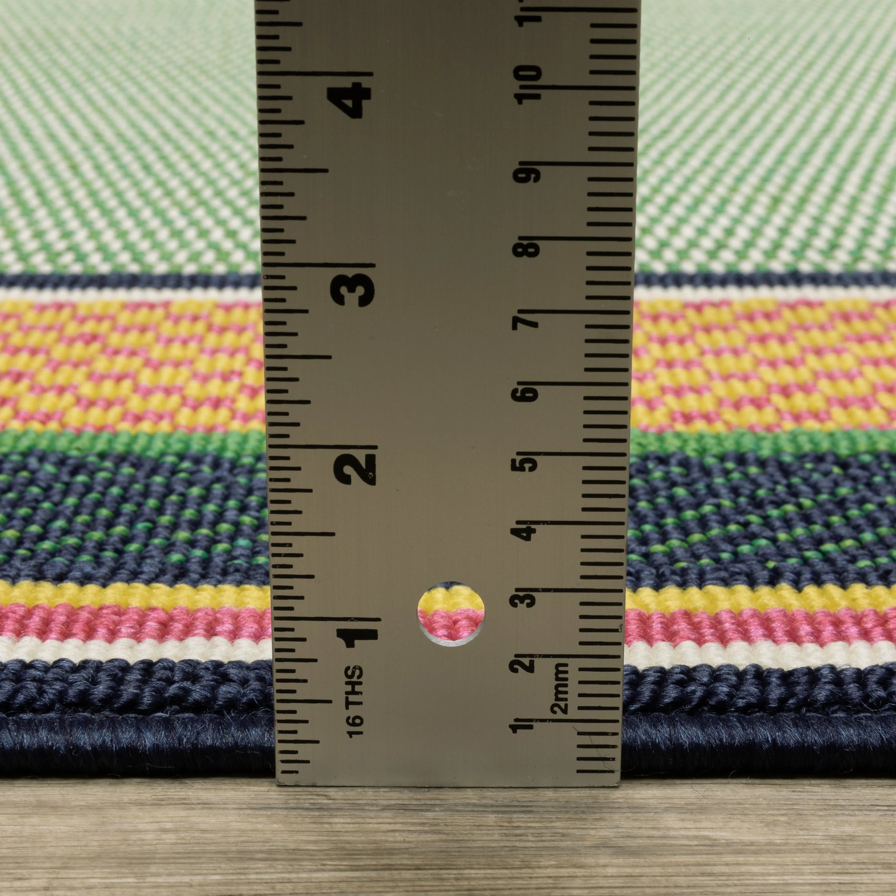 a little preppy and a lot of fun! Featuring iconic motifs in vibrant shades of sunflower yellow and flamingo pink alongside a classic navy and green duo, this collection is sure to bring feelings of sweet summer year-round. Power-loomed of 100% polypropylene, these easy-care rugs are perfect for use inside or outside the home.