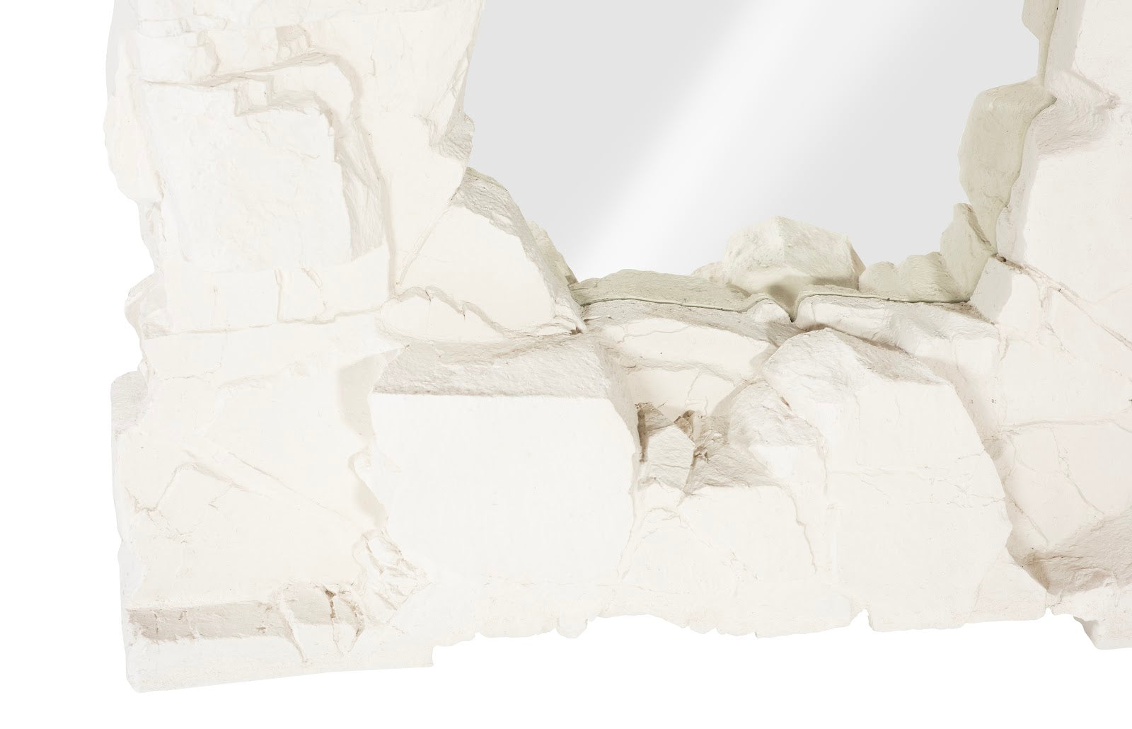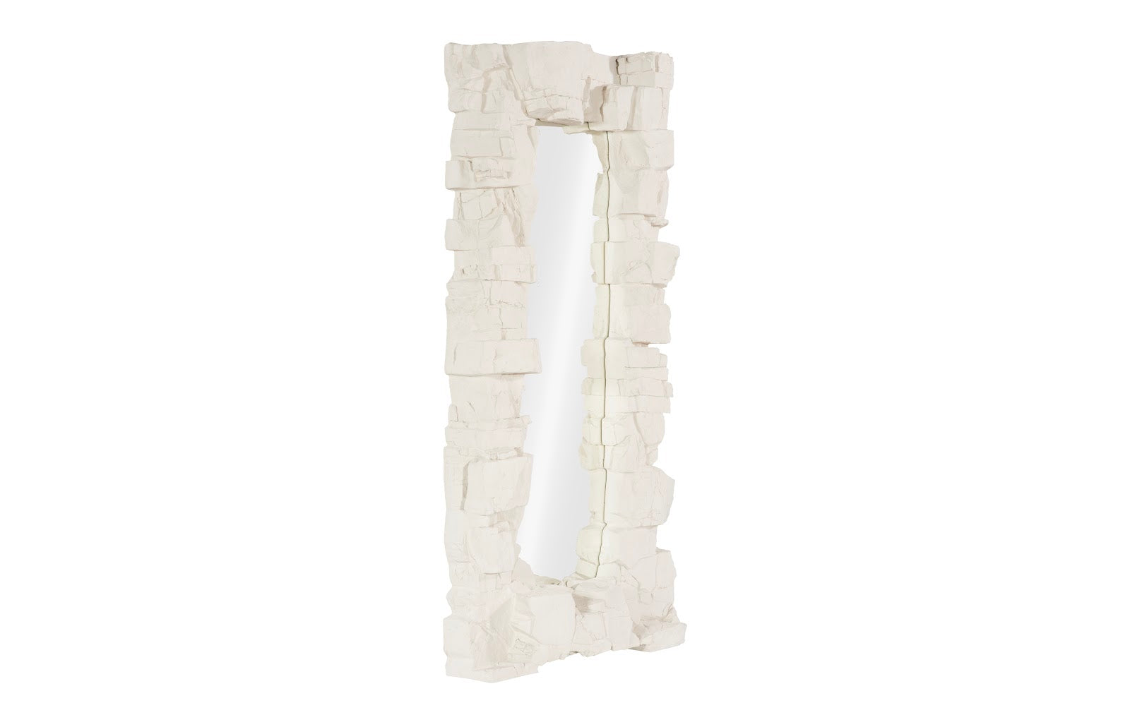 Reflecting more than just your style, the Rocky Ridge Dress Mirror brings the rugged beauty of natural stone into your space. Cast in a blend of resin and crushed stone, its irregular, chiseled edges mimic the raw elegance of quarried rock, all softened by a sleek white stone finish. Bold yet refined, this mirror stands as both a functional piece and a sculptural statement, making every glance a moment of design inspiration.