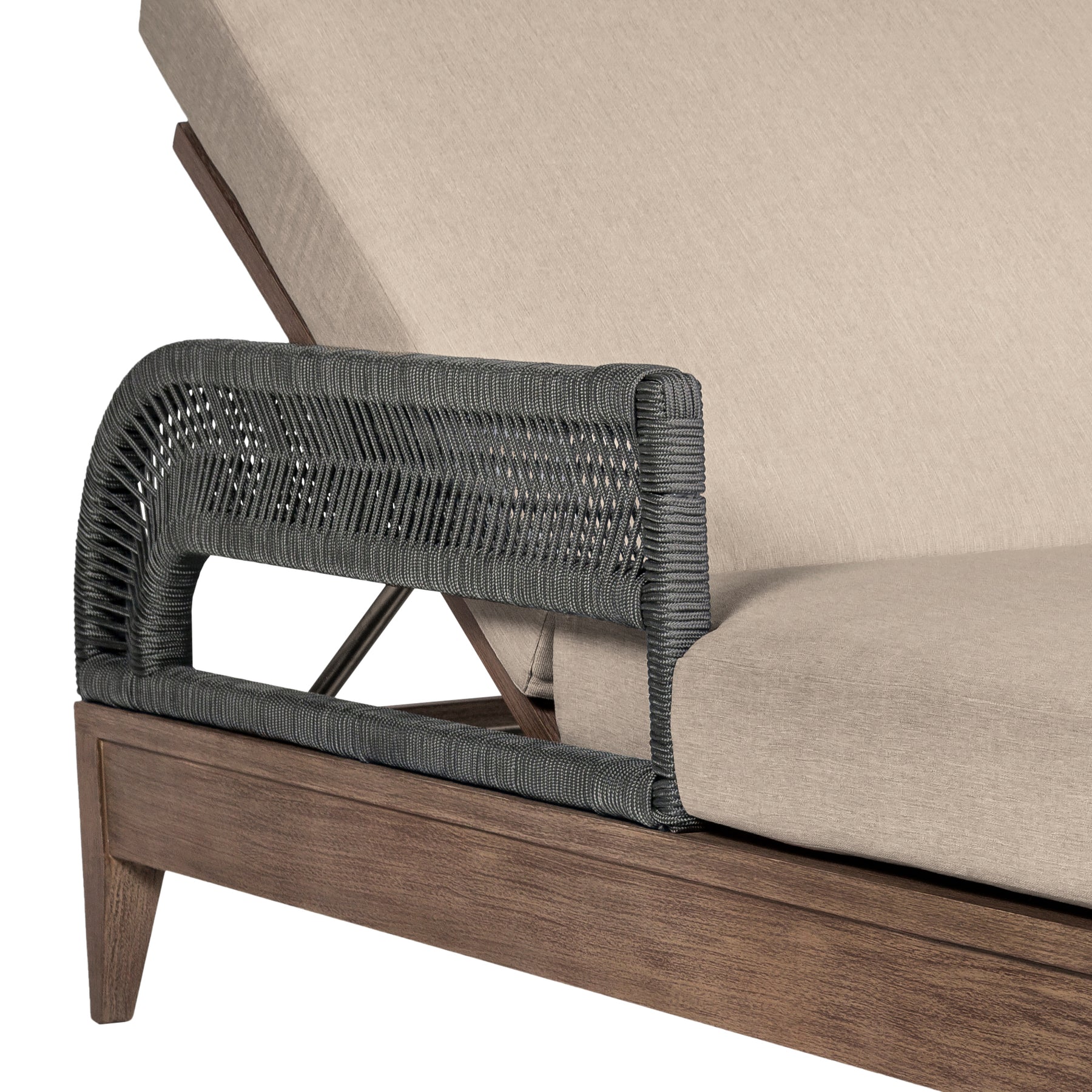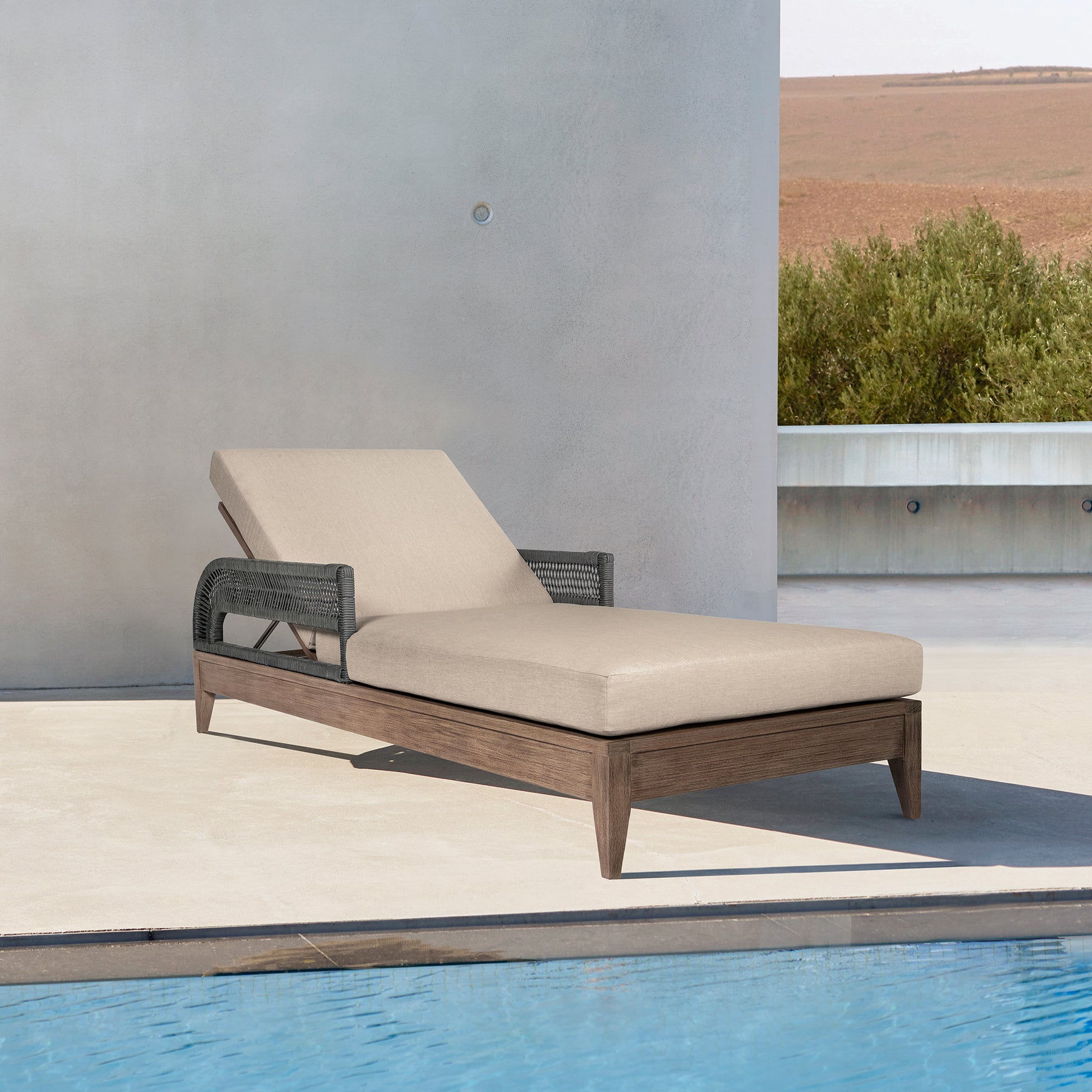 Meet the Orbit Outdoor Patio Chaise Lounge Chair – a masterful fusion of organic allure and contemporary design, meticulously crafted to redefine your outdoor lounging experience. This chaise lounge chair seamlessly blends the rustic charm of weathered Eucalyptus wood with the modern sophistication of gray rope accents and plush Taupe Olefin cushions, creating a stunning piece of outdoor furniture that combines aesthetics with durability. The weathered Eucalyptus wood frame of the Orbit Outdoor Patio Chaise Lounge Chair introduces a touch of timeless elegance to your patio, enhancing your outdoor space with its distinctive character. Each weathered detail tells a story, creating an atmosphere of rustic charm that complements various outdoor settings. Designed to withstand the elements, this chaise lounge chair boasts water-resistant and UV-resistant properties, ensuring it remains resilient and stylish in the face of changing weather conditions. Whether basking in the sun's warmth or enduring a passing rain shower, the Orbit Chaise Lounge Chair stands as a steadfast symbol of modern outdoor luxury. The gray rope accents add a contemporary flair to the design, creating a visually appealing contrast with the weathered Eucalyptus wood. Paired with sumptuous Taupe Olefin cushions, the Orbit Chaise Lounge Chair invites you to unwind in comfort and style. The water-resistant capabilities and easily removable cushion covers make maintenance effortless, allowing you to enjoy your outdoor oasis without compromise. Elevate your outdoor lounging experience with the Orbit Outdoor Patio Chaise Lounge Chair in Weathered Eucalyptus Wood. Its distinctive design not only enriches your patio but also provides a comfortable and stylish seating solution.