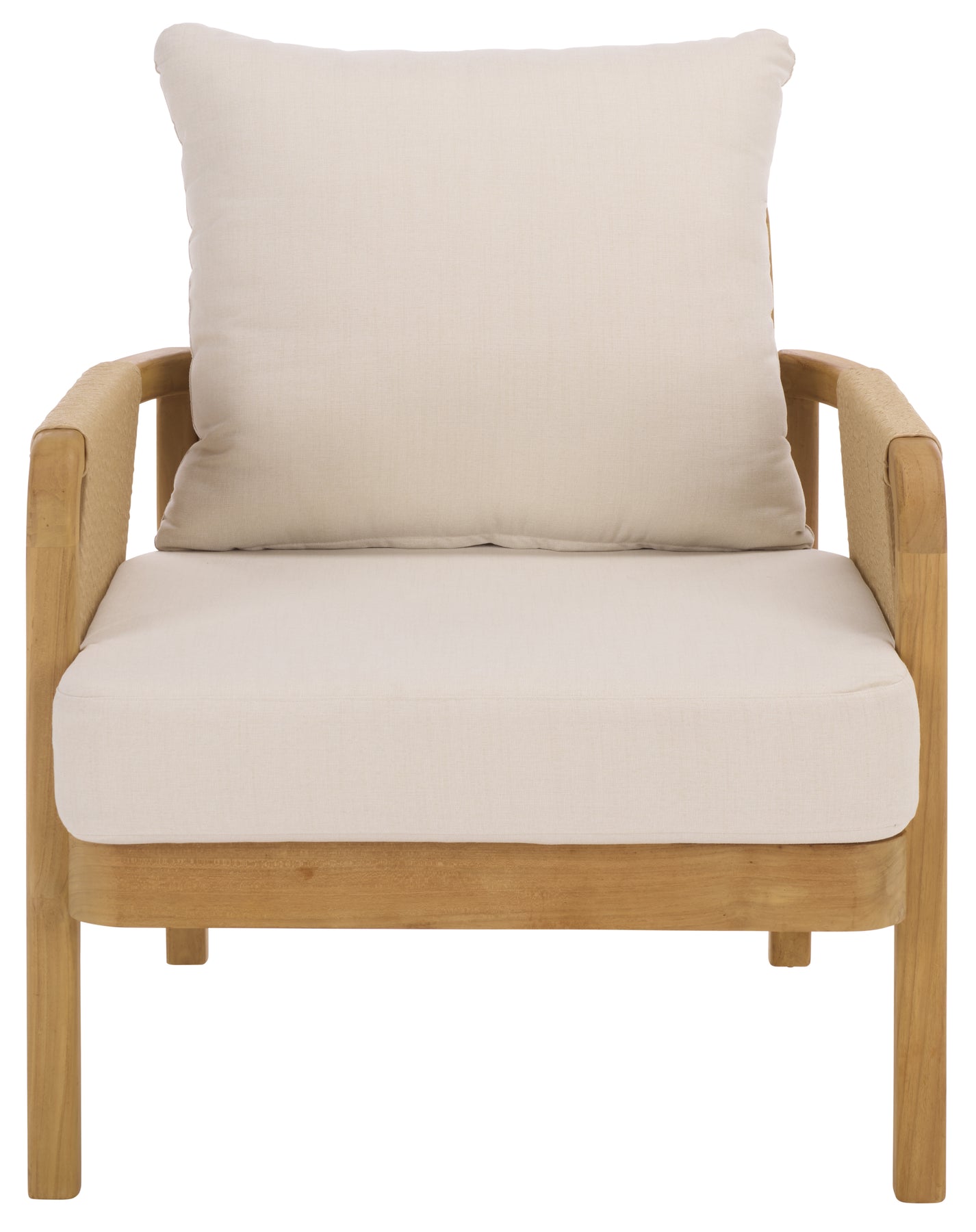 Introducing the Rogers Teak and Hyacinth Patio Chair in natural and beige. This elegant seating option combines the timeless appeal of wood and the unique texture of twisted hyacinth. The natural color palette effortlessly complements any outdoor setting, enhancing the beauty of your garden or patio area. Designed with both style and comfort in mind, the ergonomically curved seat back provides a relaxing sitting experience.