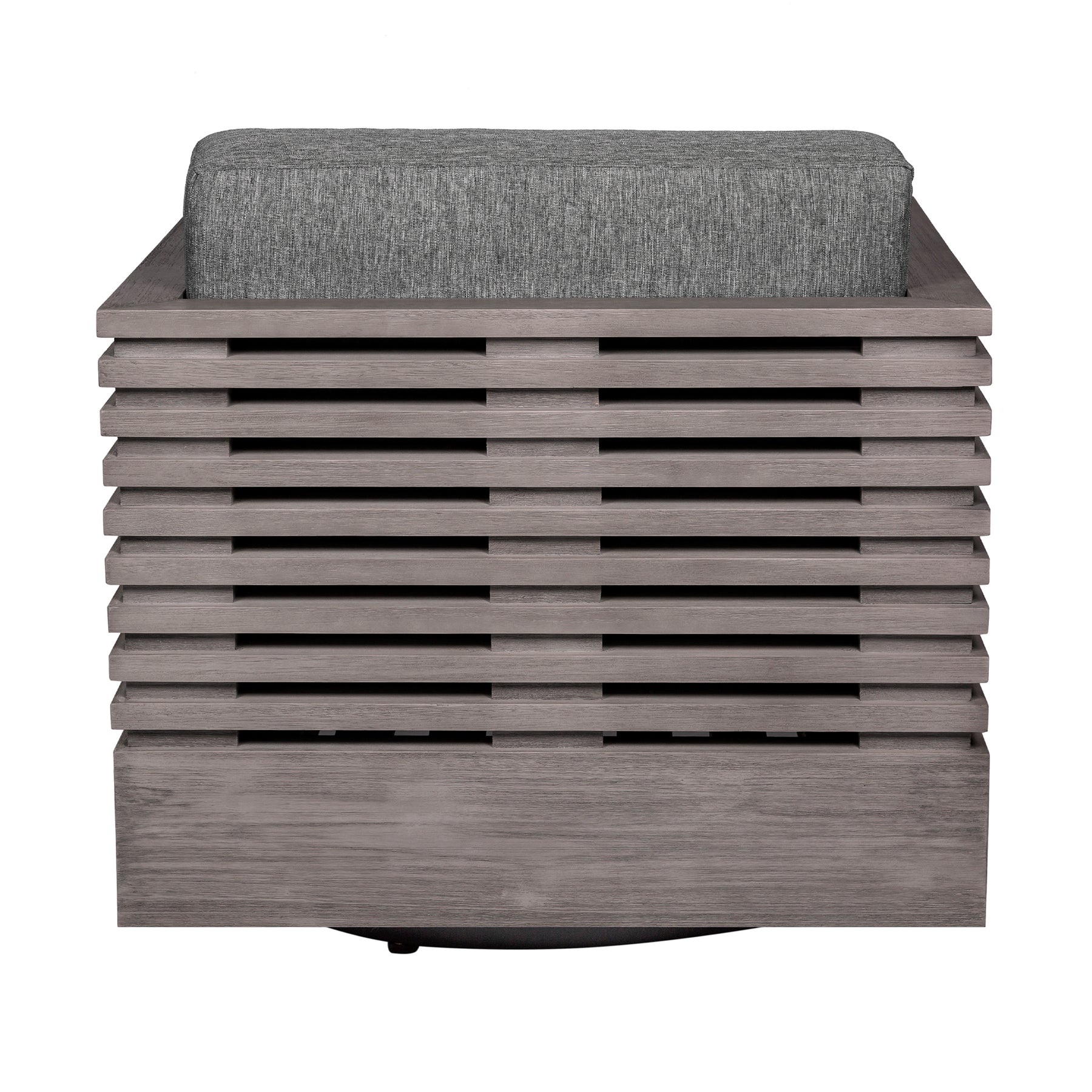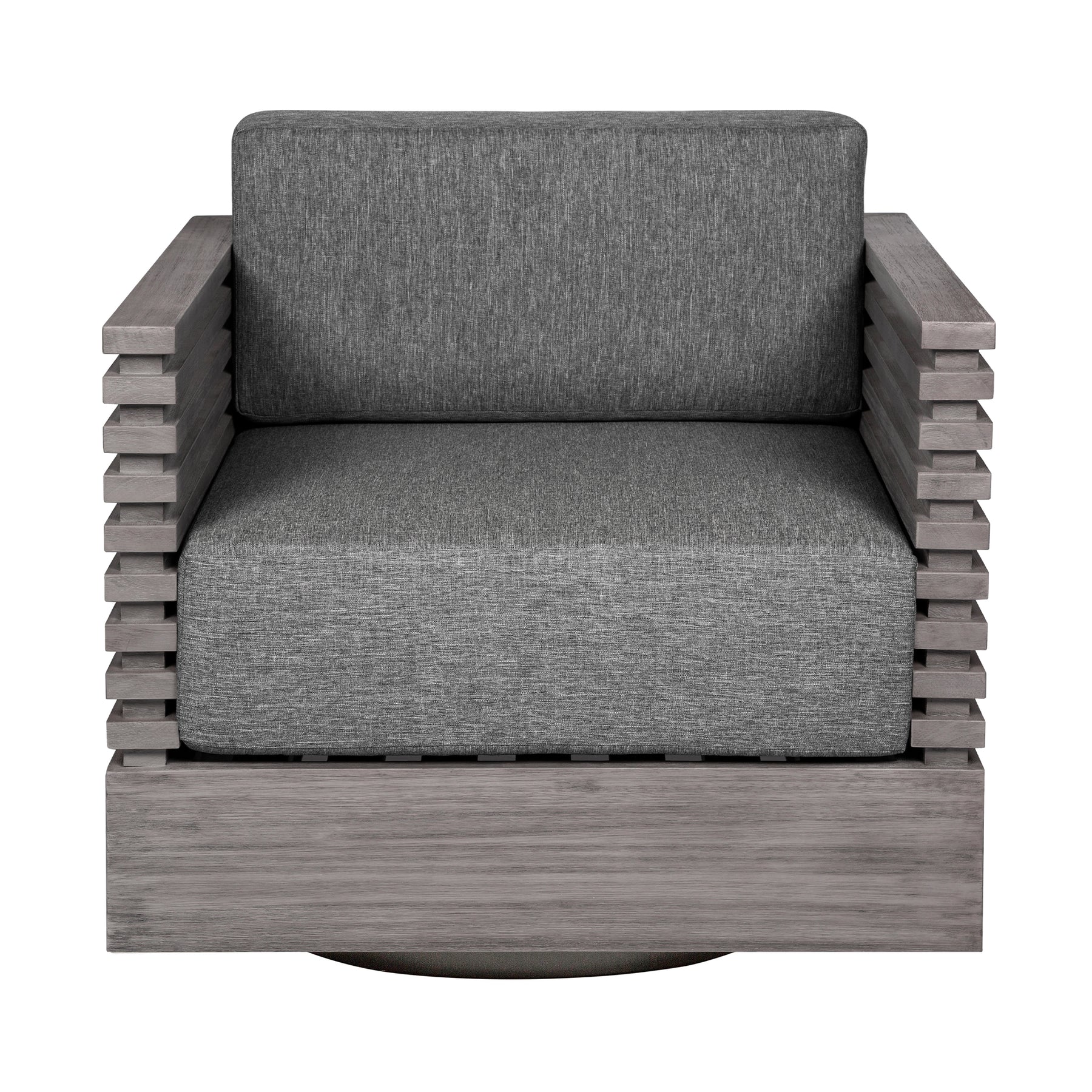 Introducing the Vivid Swivel Outdoor Patio Chair – a perfect marriage of comfort, style, and functionality designed to elevate your outdoor lounging experience. Crafted with meticulous attention to detail, this swivel chair is a testament to the seamless integration of form and function, providing a luxurious addition to your patio or outdoor setting. The chair's frame, constructed from durable Eucalyptus wood, adds a touch of sophistication to your outdoor space. The timeless beauty of Eucalyptus wood ensures not only visual appeal but also long-lasting resilience, making the Vivid Swivel Outdoor Patio Chair a standout piece of outdoor furniture. Designed for those who appreciate both aesthetics and durability, this chair boasts water-resistant and UV-resistant features, allowing it to withstand the elements with grace. Whether positioned under the sun or facing unexpected rain, the Vivid Swivel Outdoor Patio Chair remains a steadfast companion for your outdoor moments. Immerse yourself in relaxation with the plush Olefin cushions that adorn this swivel chair. The gray cushions not only provide a comfortable seat but also add a touch of elegance to the overall design. With water-resistant capabilities and easily removable covers, maintaining the freshness and allure of your outdoor oasis has never been easier. Versatile and inviting, the Vivid Swivel Outdoor Patio Chair effortlessly enhances any outdoor environment, from a tranquil garden retreat to a lively patio setting. The swivel feature adds a dynamic element, allowing you to effortlessly turn and take in your surroundings, making it a perfect choice for those seeking both comfort and engagement in their outdoor space. Invest in outdoor furniture that blends style and functionality seamlessly, and choose the Vivid Swivel Outdoor Patio Chair in Eucalyptus Wood with Olefin Cushions.