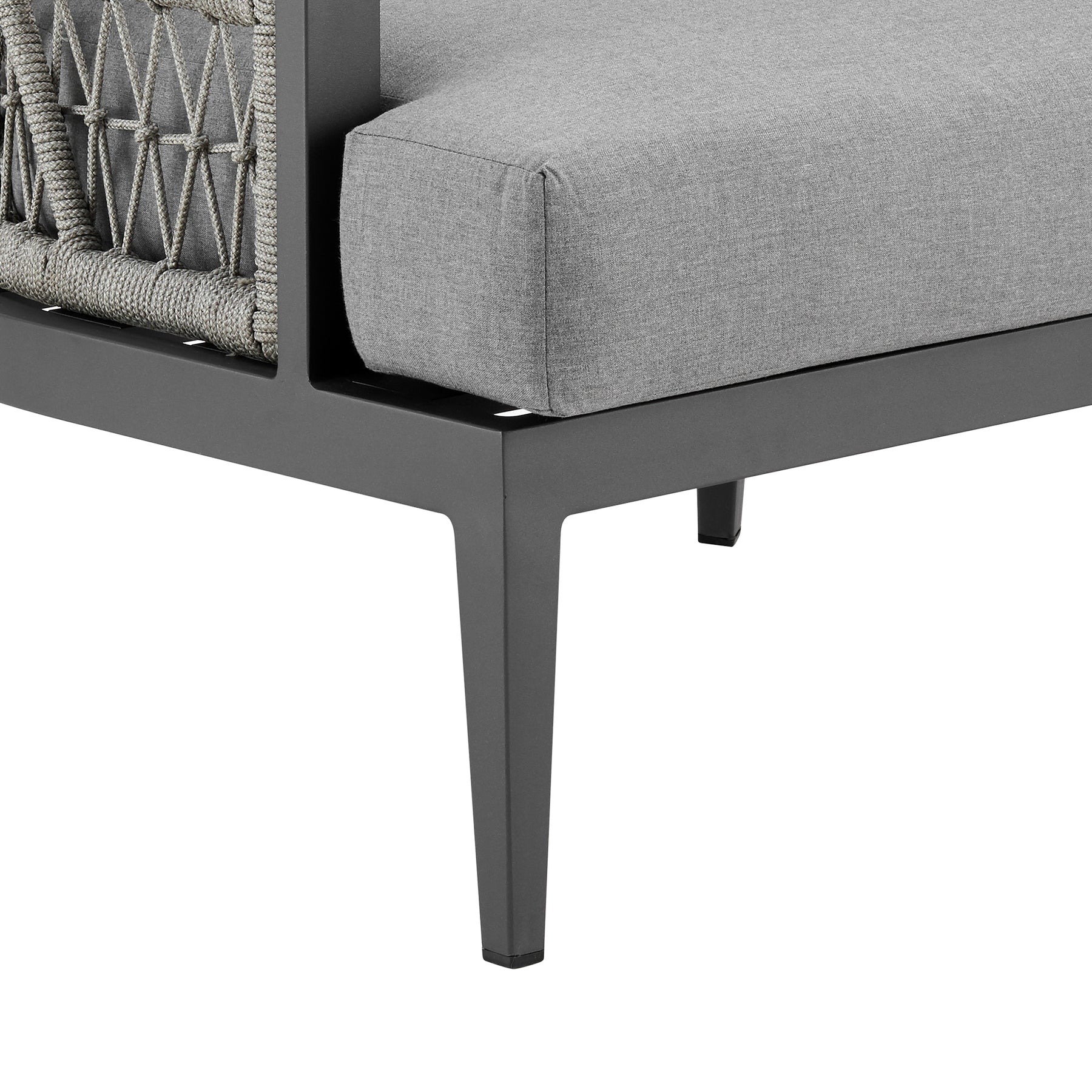 Introducing the Zella Outdoor Patio Armchair – a masterpiece of modern design and outdoor comfort meticulously crafted to enhance your lounging experience. This chic armchair seamlessly combines the sleek allure of aluminum with the inviting texture of light gray rope detailing and the plush comfort of Earl Gray cushions, creating a luxurious and enduring piece of outdoor furniture. Crafted with precision, the Zella Outdoor Patio Armchair features a robust aluminum frame that ensures durability and a contemporary aesthetic. The aluminum frame not only exudes a modern charm but also provides sturdiness, making it a reliable and resilient choice for your outdoor seating needs. Designed for outdoor durability, the Zella Armchair boasts water-resistant and UV-resistant features, making it a steadfast and stylish seating solution for your patio or outdoor lounge area. The solution-dyed acrylic fabric ensures vibrant colors and resistance to fading, offering lasting beauty in the face of changing weather conditions. Whether bathed in sunlight or facing unexpected rain, this armchair remains a reliable centerpiece for your outdoor gatherings. The incorporation of light gray rope detailing adds unique dimension to the design, creating a captivating contrast with the sleek aluminum frame. Paired with Earl Gray cushions, the Zella Armchair invites you to relax in both style and comfort, providing a sumptuous seating option for your outdoor oasis. Whether you're sipping a morning coffee or unwinding with a good book, the Zella Armchair offers an inviting seat in the heart of your outdoor sanctuary. Elevate your outdoor lounging experience with the Zella Outdoor Patio Armchair in Aluminum. Its distinctive design not only enriches your patio but also provides a durable and stylish addition to your outdoor furniture ensemble. Invest in quality outdoor furniture that seamlessly blends modern aesthetics with functional design, and choose the Zella Armchair – where contemporary elegance meets the demands of modern outdoor living. Transform your outdoor space with the Zella Armchair, where form and comfort converge for an unparalleled seating experience.
