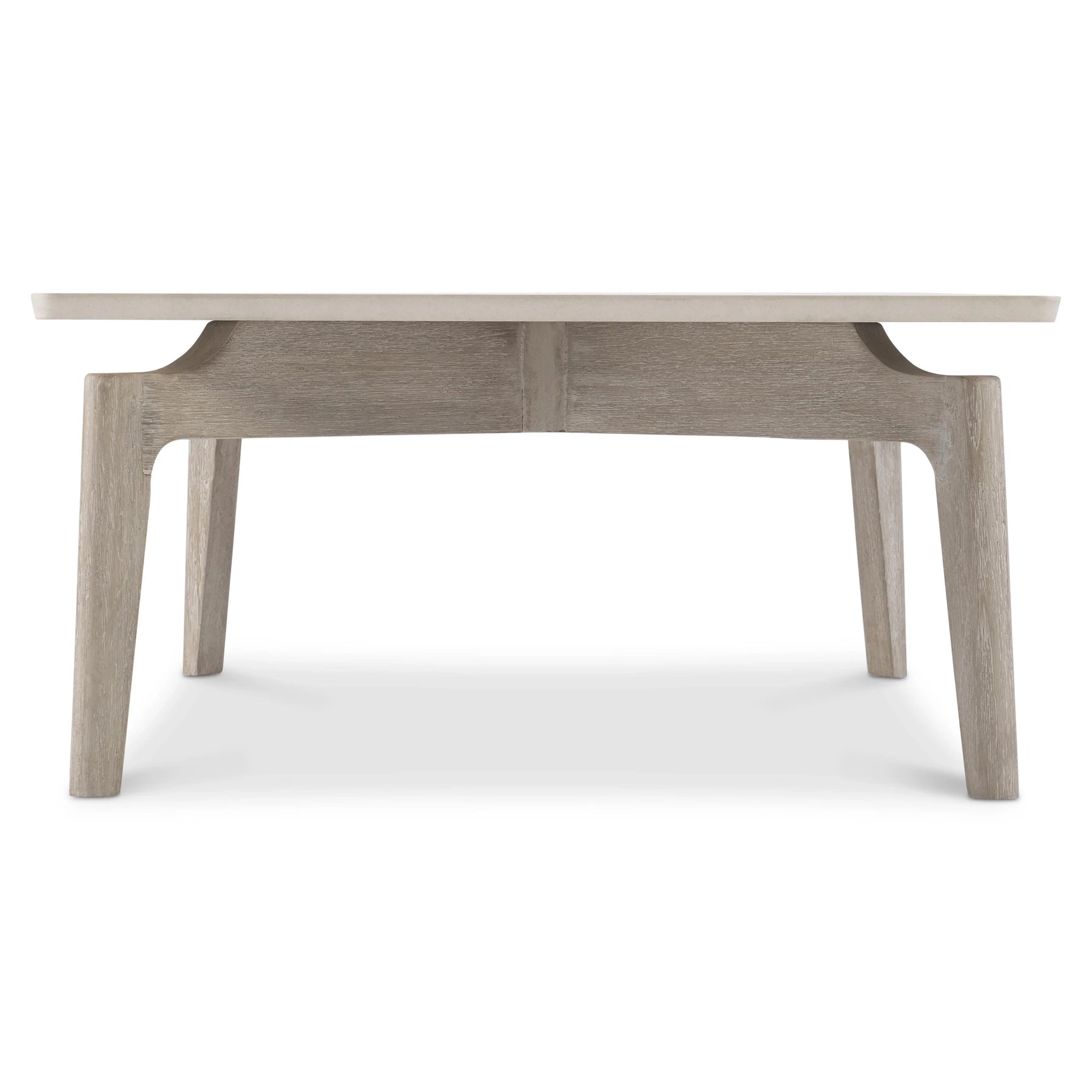 Featuring a honed Vesta stone top in Warm Shale finish — a material that combines natural beauty with the density and UV resistance required for sustained outdoor use — the Aurora rests on a teak base in Sea Oat finish, a pairing that echoes the great outdoor furniture traditions of natural stone and hardwood without sacrificing the performance requirements of a genuinely outdoor piece. The construction reflects Bernhardt's commitment to premium material selection across every product in their outdoor collection.