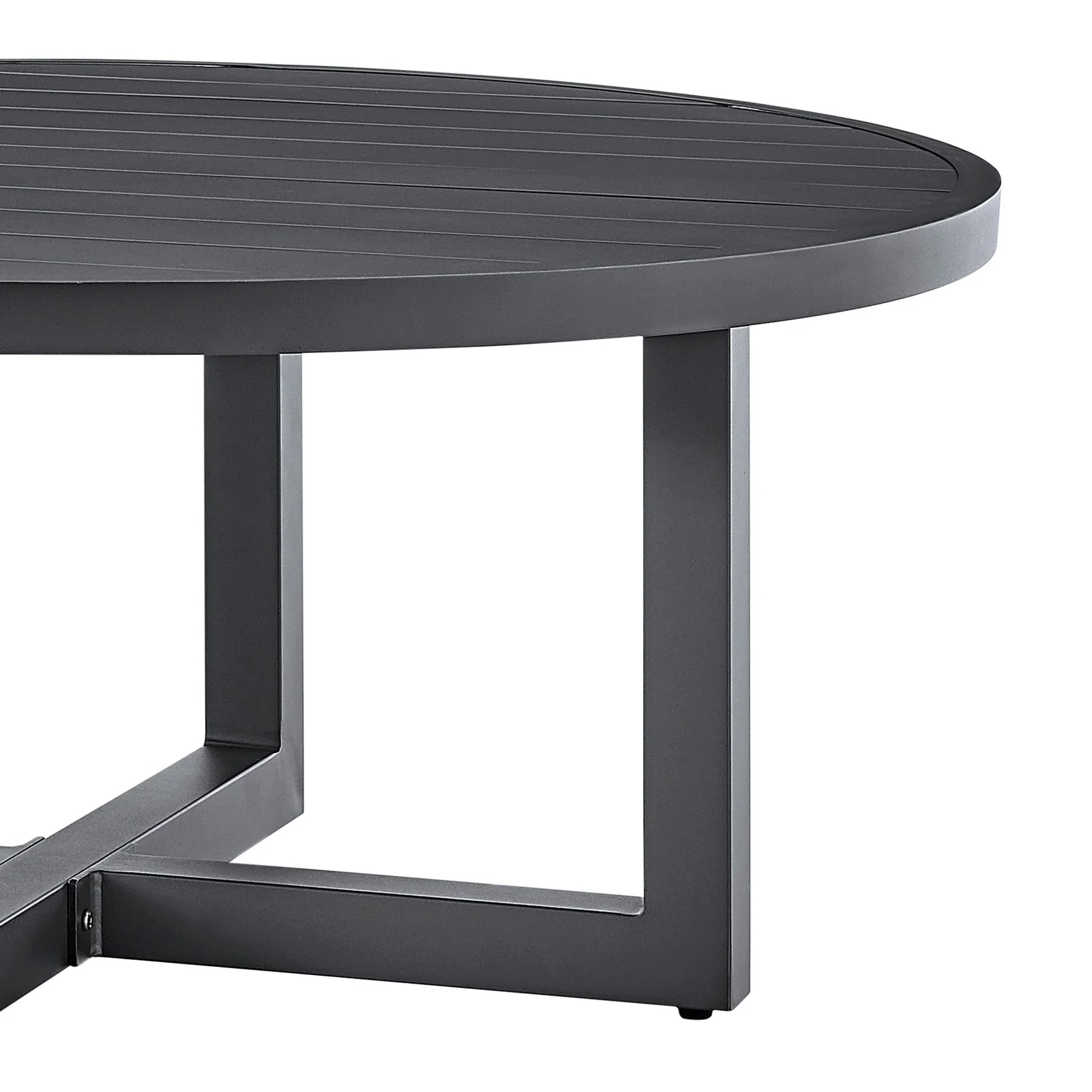 The Menorca round coffee table is a great addition to any backyard, patio space, pool side, or screened in porch. This outdoor coffee table measures 42 inches in diameter and 18 inches tall it’s unique cross leg base creates a sturdy and solid foundation. The size makes it ideal for parties as there’s enough surface space for many guests to set down a drink or plate. The slatted tabletop design creates a drain effect that allows for the outdoor elements to easily pass through. The aluminum construction is durable and stylish. Some outdoor furniture made of wood, iron, or steel, can be difficult to move around because of its weight. If you are looking for something light, then aluminum makes for a great option! If you need to redecorate your outdoor living space, or if you are moving to a different location, then you will have no problems in terms of moving your aluminum patio furniture. Minimal maintenance is required for this coffee table. Often, using a typical garden hose to rinse off the patio furniture will do. For more stubborn residue, a little warm water and soap will usually suffice. Aluminum furniture cannot rust. This is especially beneficial in areas where moisture is present, making it a premium choice among residents of coastal cities or regions with high humidity. The Menorca outdoor coffee table is available in a black or gray aluminum finish.