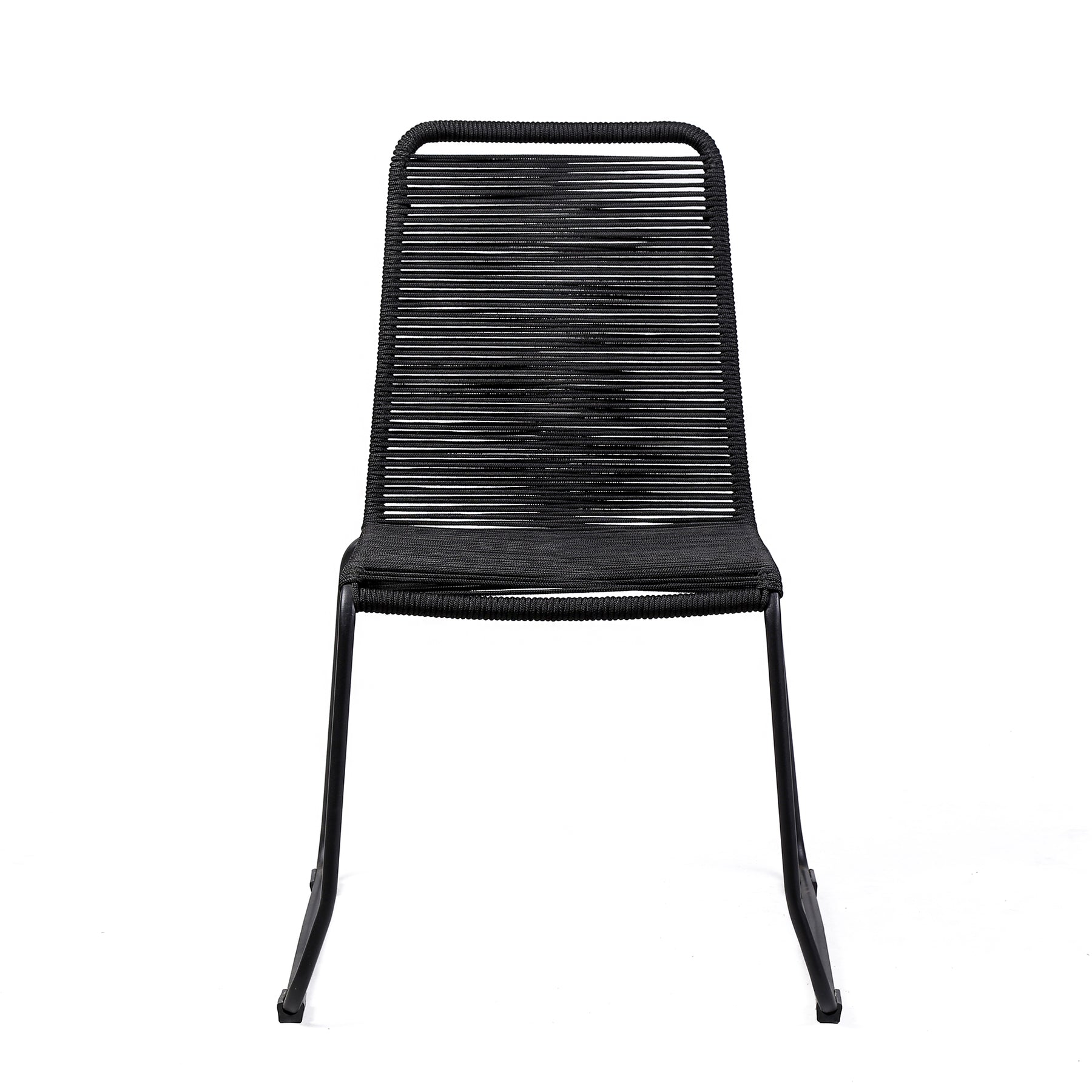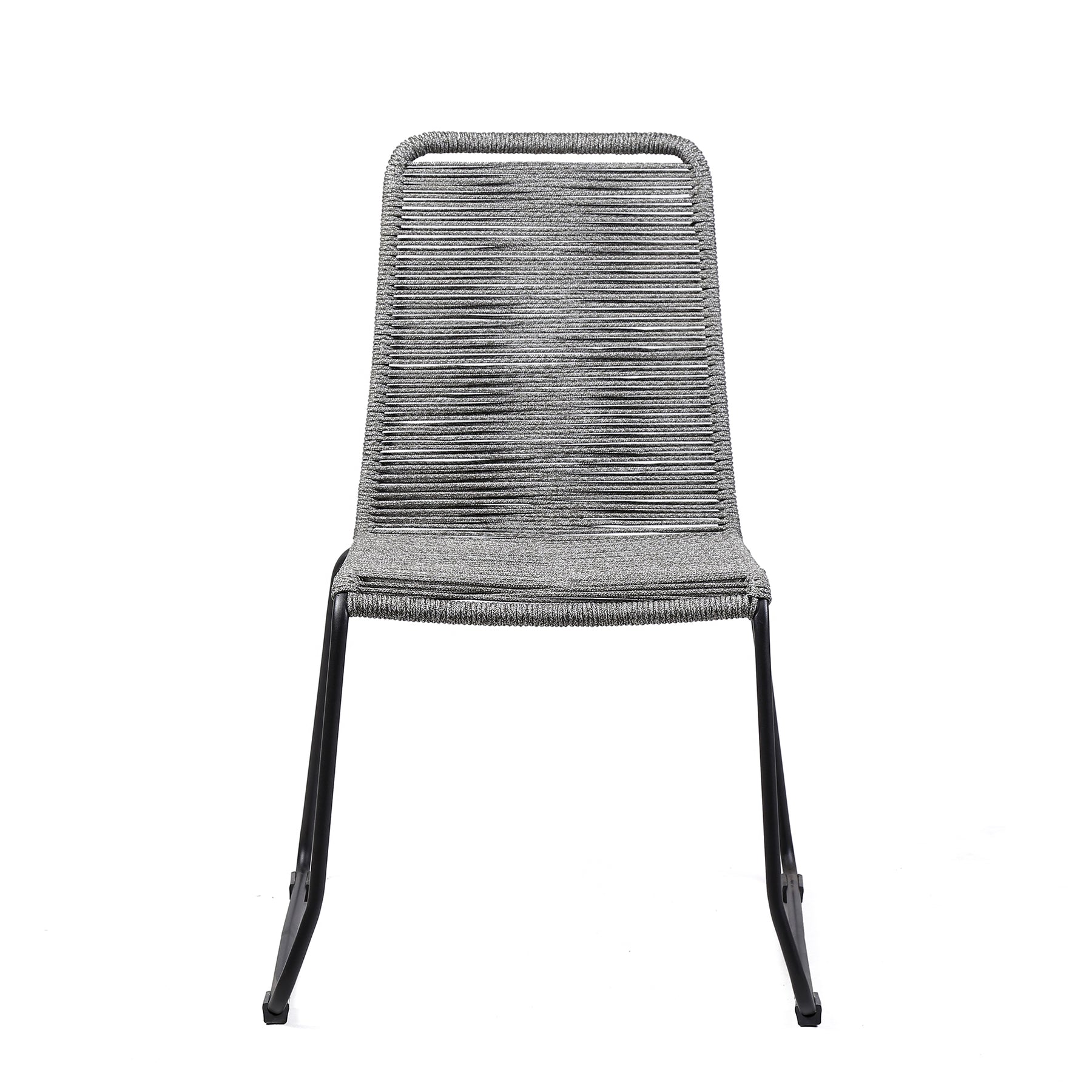 The Armen Living Shasta Outdoor Patio Dining Chair Set is an exceptional fit for your outdoor seating needs. Lightweight and durable, the Shasta's black powder coated finish steel frame allows for ease of rearrangement without compromising on quality or aesthetics. The Shasta's UV-resistant, water-resistant rope fishbone weave seat and back provide an ideal amount of comfort and support. This simple chair is suitable for both indoor and outdoor settings, and the Shasta features sturdy sled legs tipped with included floor protectors to prevent slipping and scratching. The Shasta comes in your choice of black, gray, brick red, tangerine orange, or wasabi complimented by a beautiful modern black steel frame. These outdoor dining chairs come in a but ship fully assembled in a single box.
