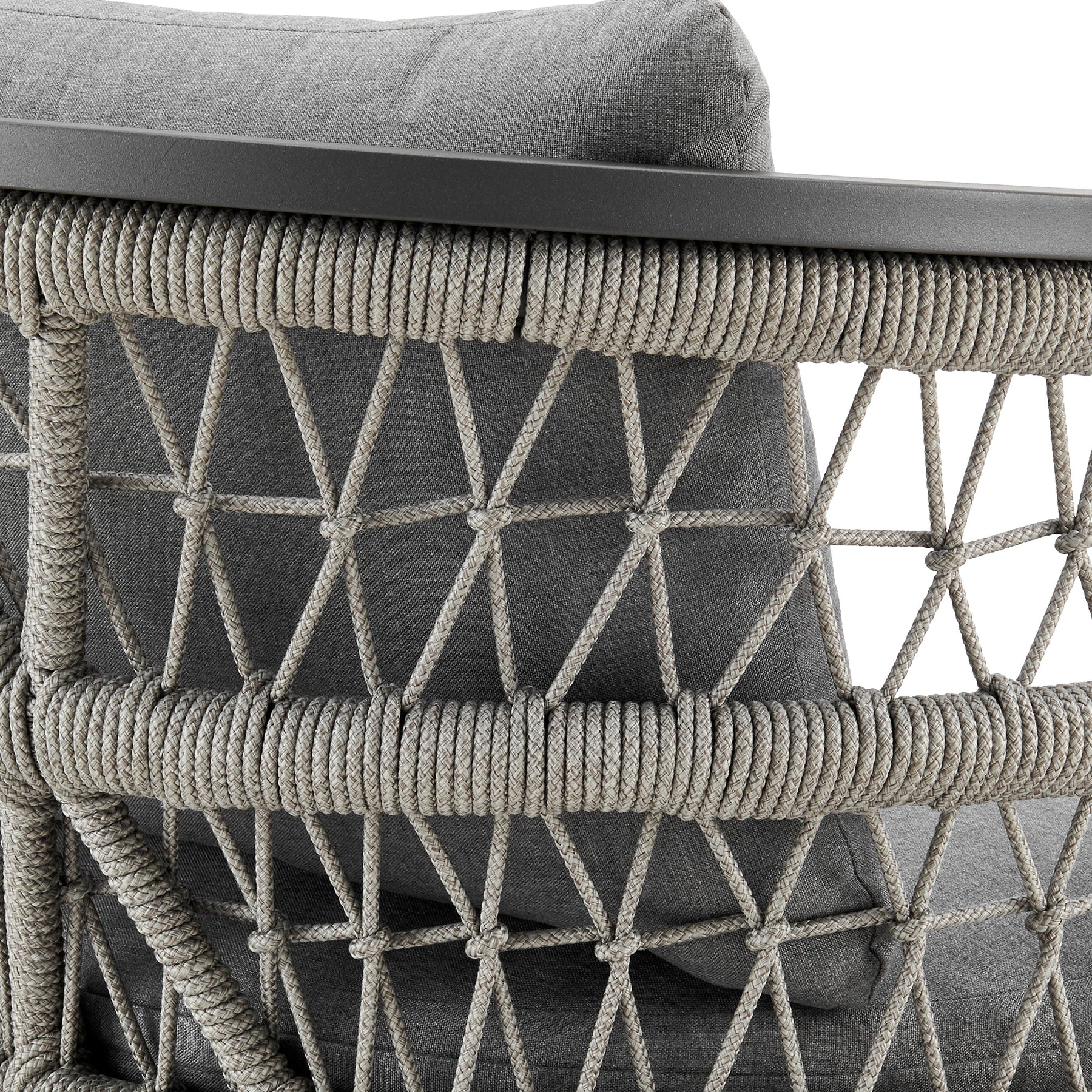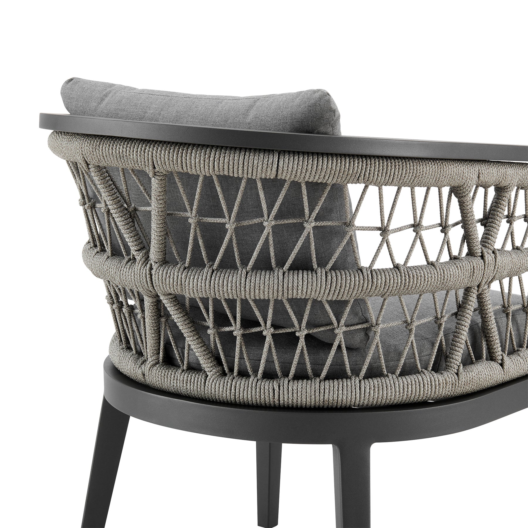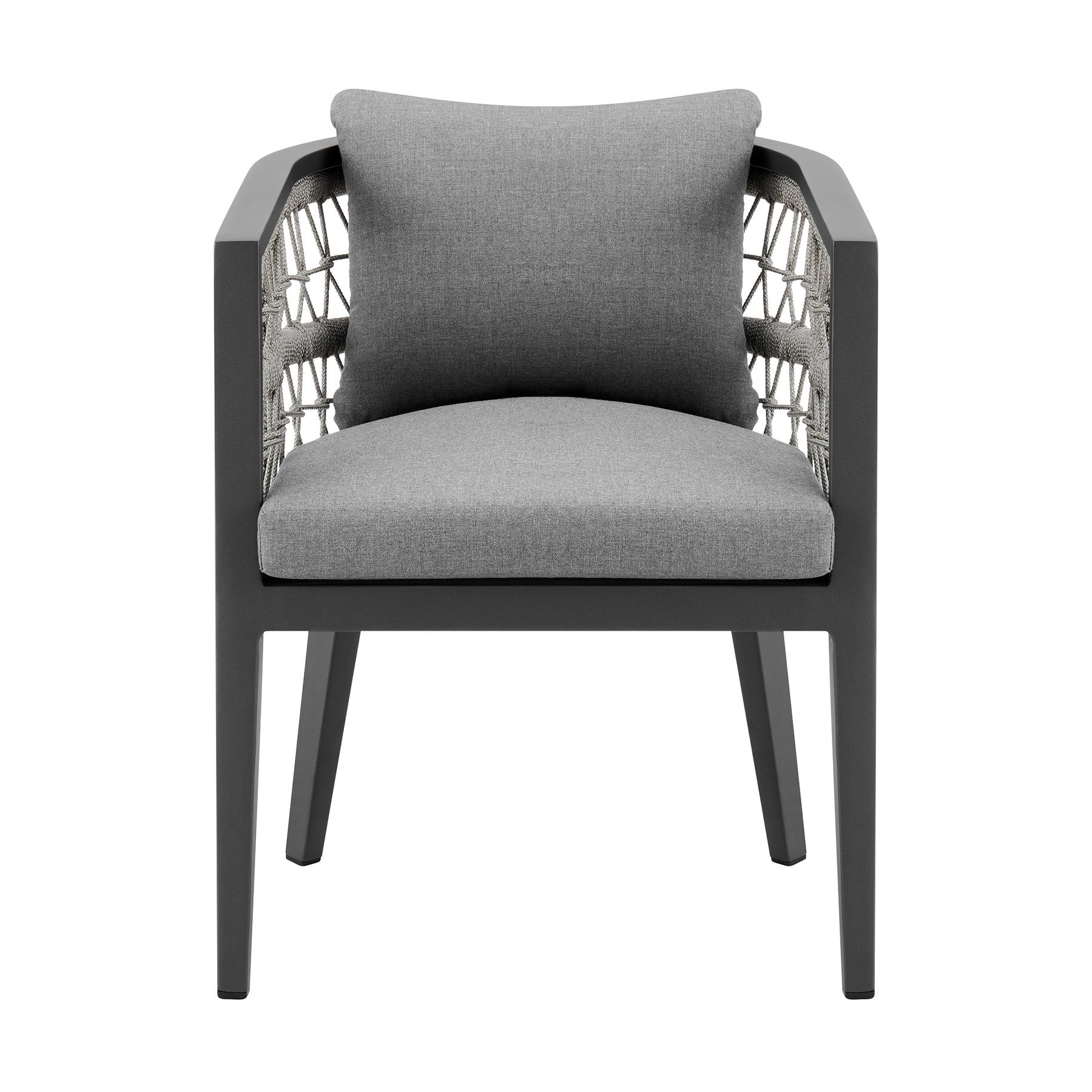 Introducing the Zella Outdoor Patio Dining Chair – a harmonious blend of modern design and outdoor comfort meticulously crafted to enhance your al fresco dining experience. This dining chair seamlessly marries the sleek allure of aluminum with the inviting texture of light gray rope detailing and the plush comfort of Earl Gray cushions made from solution-dyed acrylic fabric, creating a sophisticated and enduring piece of outdoor furniture. Crafted with precision, the Zella Outdoor Patio Dining Chair features a robust aluminum frame, ensuring both durability and a contemporary aesthetic that effortlessly complements various outdoor settings. The aluminum frame not only contributes to the chair's sleek charm but also provides sturdiness, making it a reliable and resilient choice for your outdoor dining needs. Designed for outdoor durability, the Zella Dining Chair boasts water-resistant and UV-resistant features, making it a steadfast and stylish seating solution for your patio or outdoor dining area. Whether bathed in sunlight or facing unexpected rain, these chairs remain reliable and eye-catching additions to your outdoor gatherings. The incorporation of light gray rope detailing adds unique dimension to the design, creating a captivating contrast with the smooth aluminum frame. Paired with Earl Gray cushions made of solution-dyed acrylic fabric, the Zella Dining Chair invites you to dine in both style and comfort. The solution-dyed acrylic fabric ensures vibrant colors and resistance to fading, offering lasting beauty in the face of changing weather conditions. Whether you're hosting a lively dinner party or enjoying a quiet family meal, the Zella Outdoor Patio Dining Chair provides an inviting and luxurious seating option for your outdoor dining space.