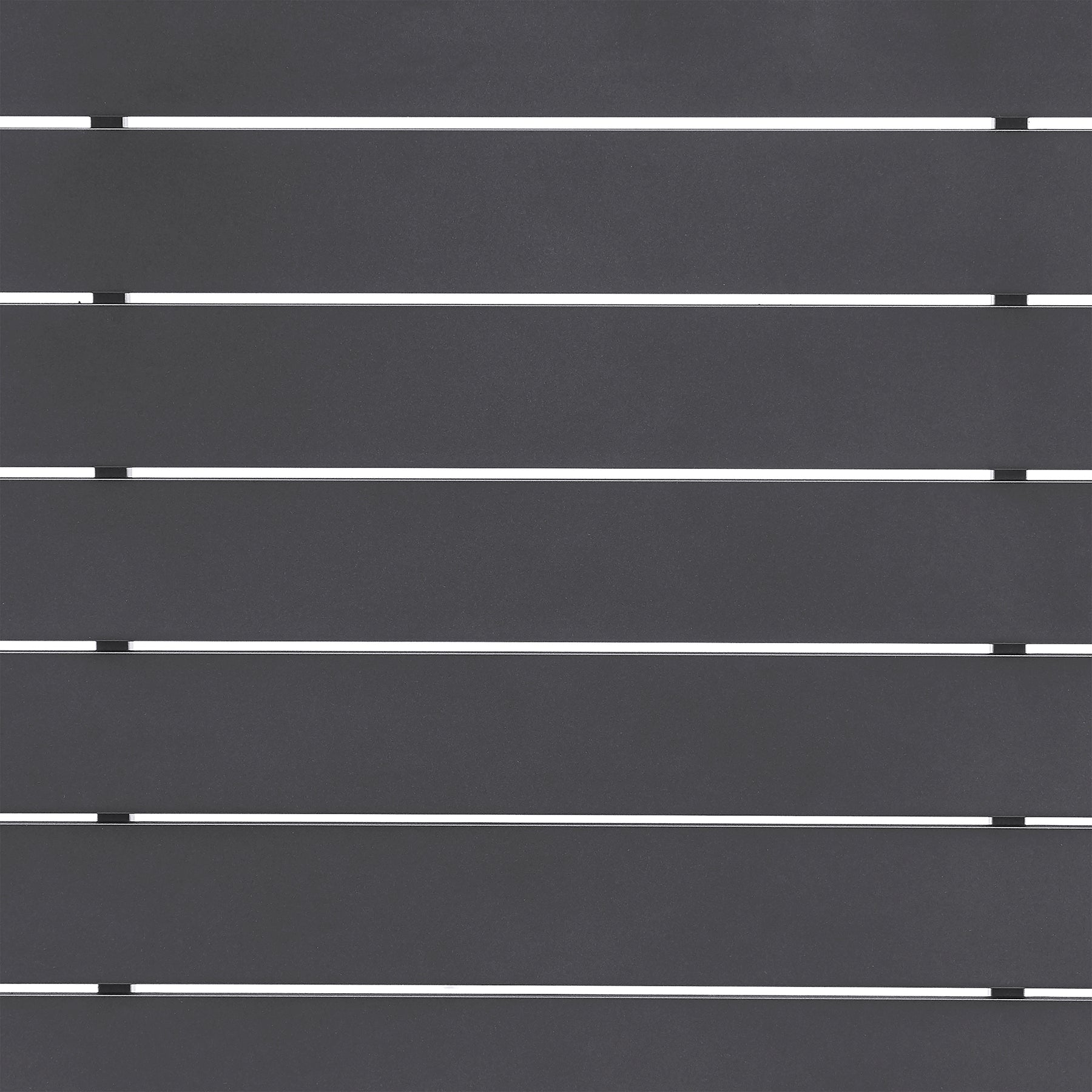 Transform your backyard space into the perfect entertainment destination with the Argiope Outdoor Patio 5-Piece Bar Set from Armen Living. This bar height dining set comes with 1 rectangular pub table and 4 metal barstools. The Argiope 5-Piece Bar Height Dining set supports up to 308lbs per seat, features a 30-inch seat height, and is available in a dark gray finish with dark gray upholstery. Aluminum is a light material, and this set is easily portable which makes it a durable outdoor furniture piece! Enjoy the view whether you’re in your back yard, patio, screened in porch, garden or poolside! The dark gray cushions not only feature high density foam that will allow for many hours of comfortable seating; the cushions also feature a zipper closure that allows for easy removal and cleaning! The chic aluminum outdoor bar stool frame and table feature a multi-layer powder coating for effective protection from the UV, rust, weather, everyday wear, and tear. The slat style tabletop helps elements to easily pass through which adds to its durability, making it the ideal outdoor patio furniture set. The Argiope stools with backs feature a beautiful wrap around style arm design that seamlessly ties the back and arms to the seat and legs, creating a harmonious aesthetic.