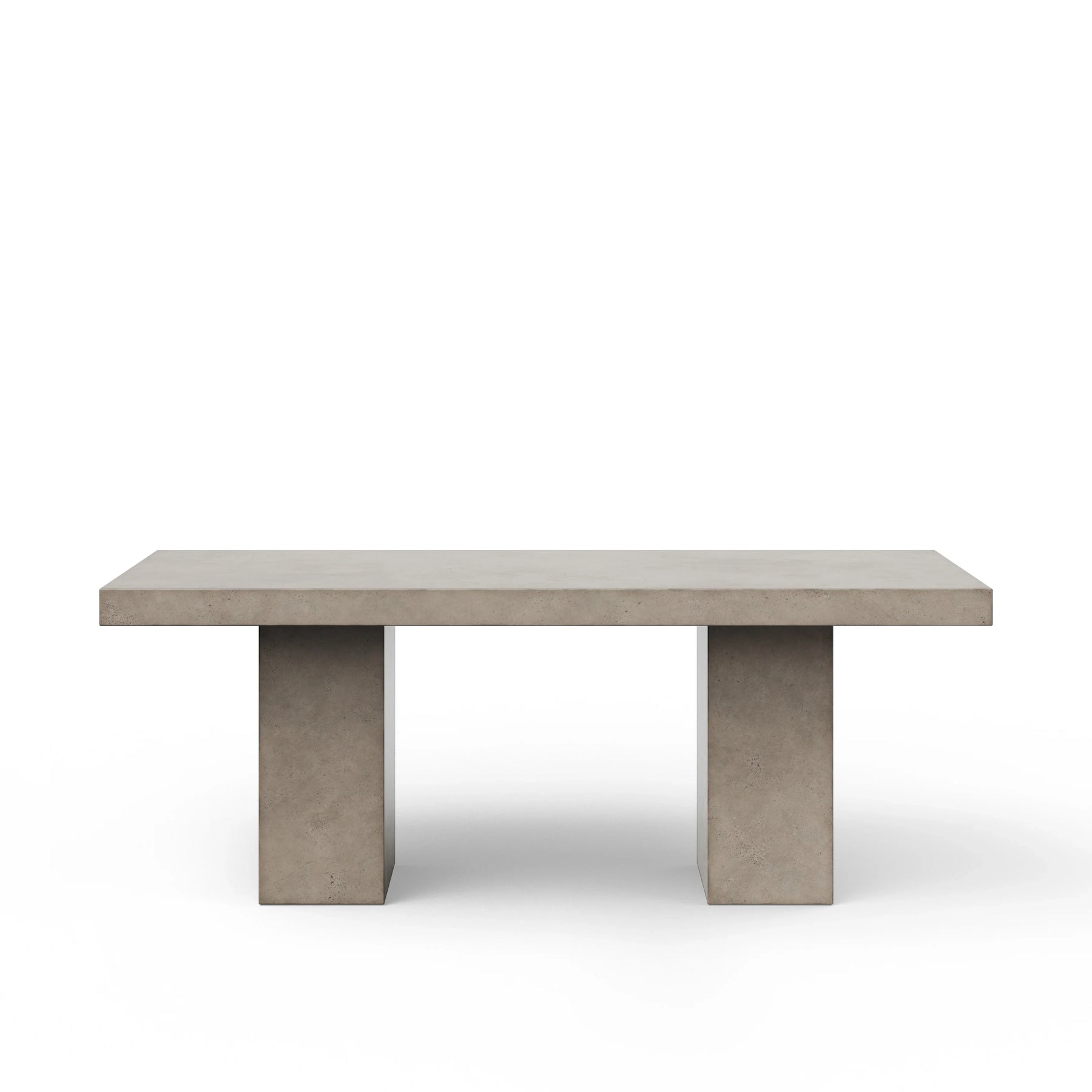 Handcrafted in Vietnam by skilled artisans using natural materials, the Elcor Counter Height Table is a modern concrete dining table that showcases a rectangular top supported by two robust pedestal legs. Its unique patina reflects natural markings and varied tones, ensuring every piece has its own distinctive character. Made from durable fiber-reinforced concrete, this industrial-style counter height table offers a perfect blend of durability and sophisticated design. Ideal for modern kitchens, dining rooms, or covered outdoor spaces, the Elcor Table brings texture, strength, and artisan craftsmanship to any setting. Small hairline cracks and natural imperfections highlight its raw beauty and one-of-a-kind appeal.