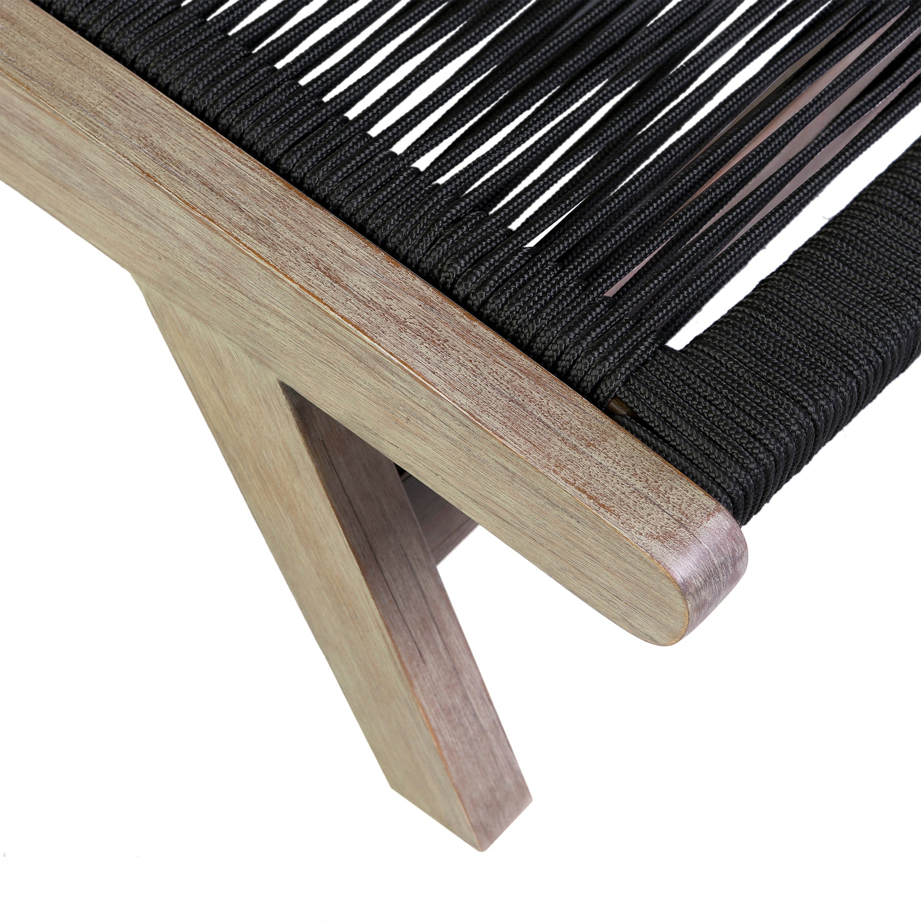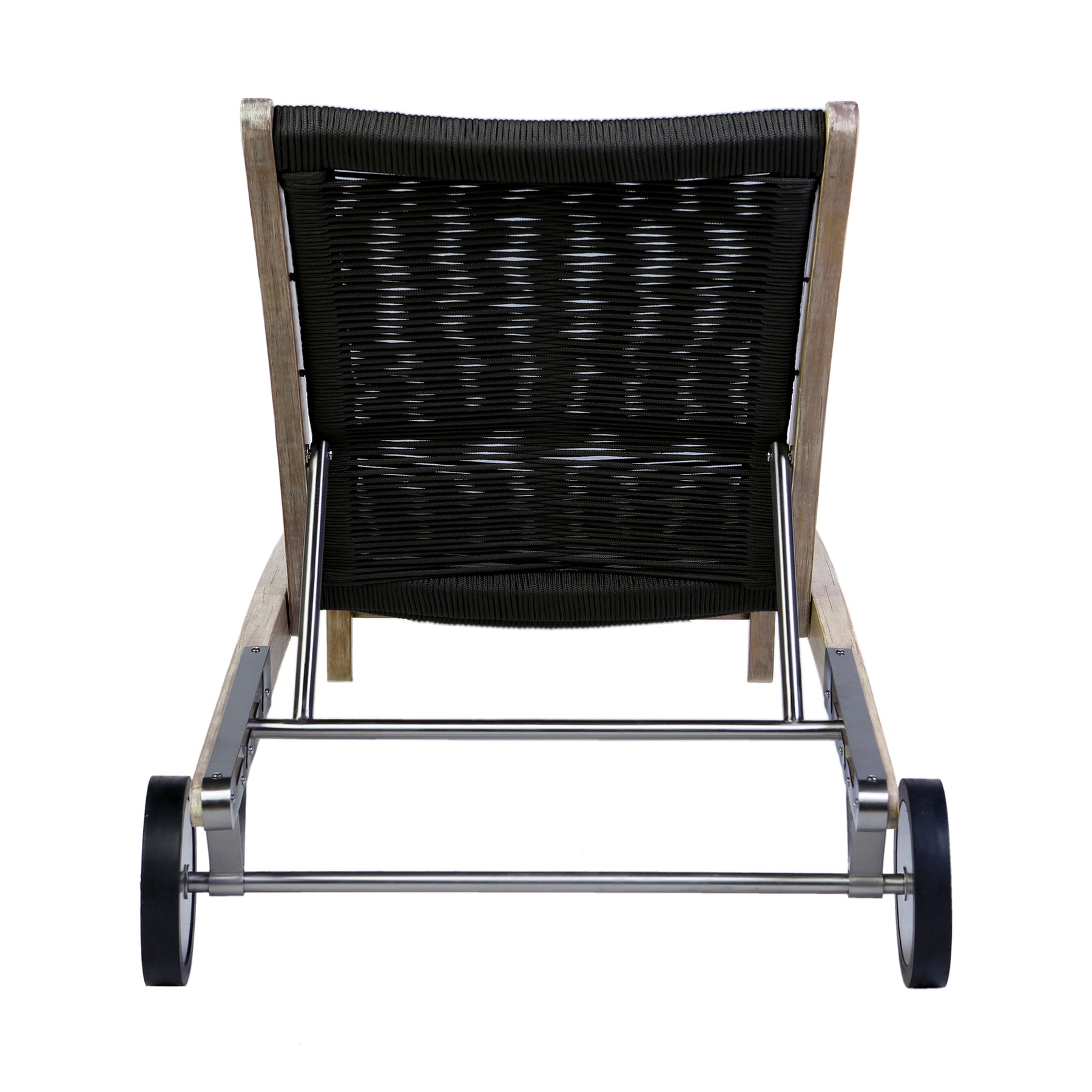 Uplift the lounging factor of your outdoor space with our Chateau adjustable chaise lounge in Eucalyptus wood and rope. Functional and stylish, our chaise combines the rustic charm of rope with the grace and warmth of Eucalyptus wood. The wooden frame takes a sweeping curve to serve as a low-slung chaise, ready to relax and lounge. With 5 adjustable positions, the Chateau chaise lounge keeps you in the perfect position to enjoy the weather, lounge, read, or take a mid-day nap. Eucalyptus wood is resistant to rotting and decay. The high oil content makes it stand up easily to moisture, it is comfortable to sit on, and it is a sustainable wood. The reclined back and the elongated seat are weaved with rope to contour your body and provide a comfortable retreat. Our patio chaise can be raised or lowered to an ideal position. It also includes wheels to easily follow the sun and shade. Offering convenience and durability, our outdoor chaise can be the perfect complement to your backyard, patio, pool area, or balcony. The Chateau adjustable chaise lounge chair is available in your choice of gray or charcoal rope and features a beautiful natural finish on the eucalyptus frame.