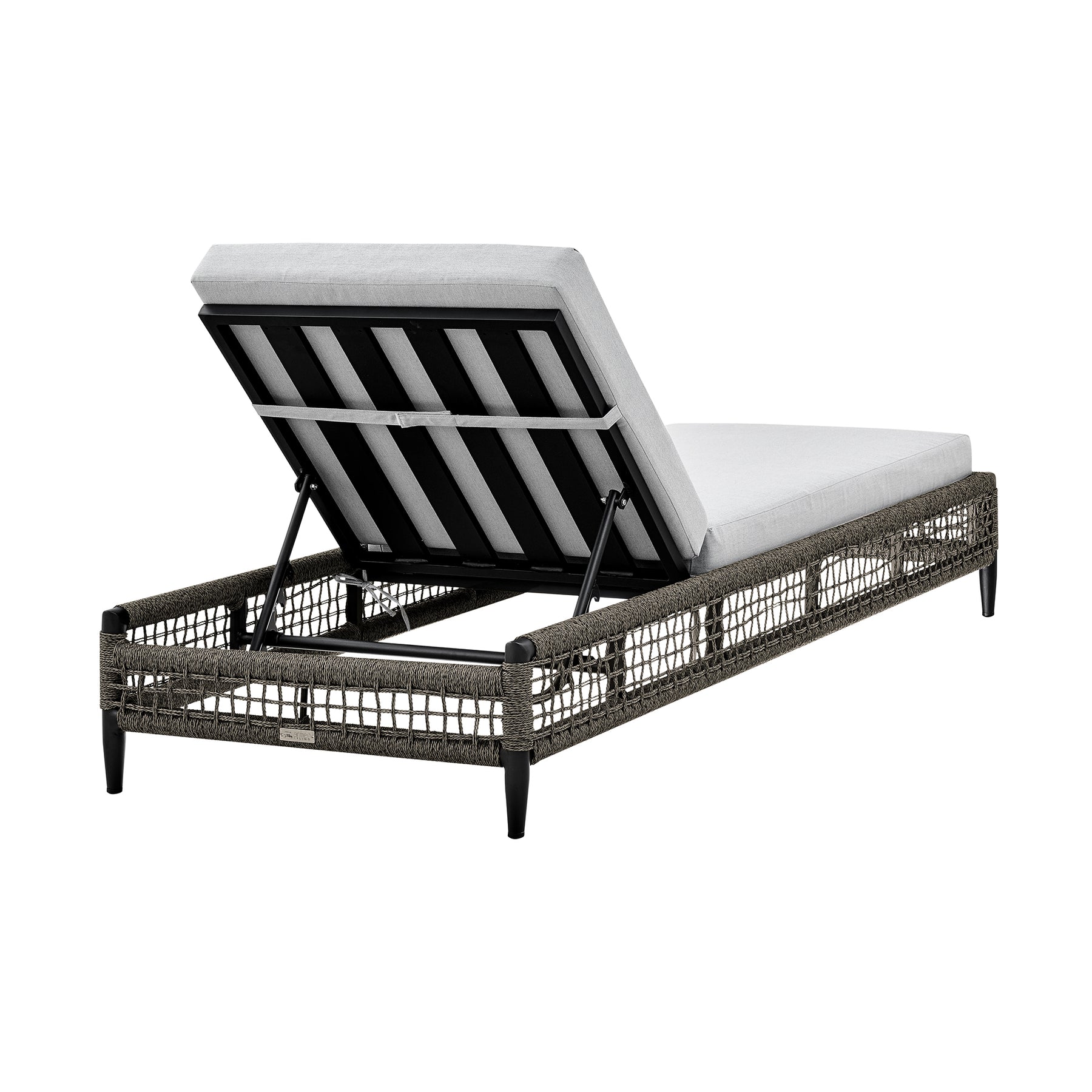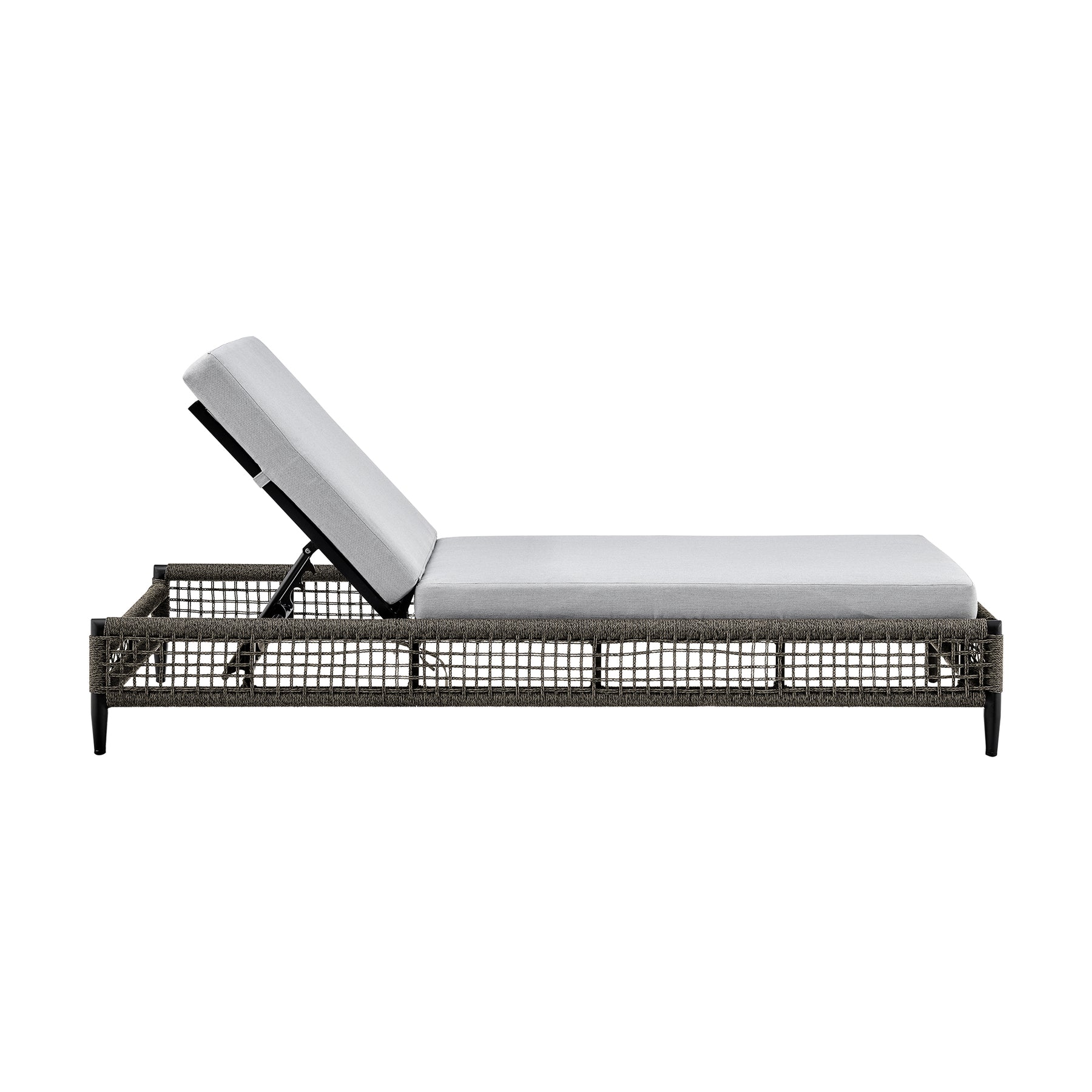 Step up the lounging factor of any outdoor space with the Felicia Outdoor Chaise Lounge Chair from Armen Living. Sleek and elegant, this chaise can serve as a comfy and inviting addition to your backyard patio. The rope that’s wrapped around the base of the chaise is treated to be protected from water, UV, oil, and fading. The chaise features 5 different reclining positions for ultimate convenience and a generously cushioned seat for a comfortable stay. The aluminum frame is lightweight and makes this chaise outdoor chair with cushions easily portable so that you’re able to follow the sun or shade for an enjoyable outdoor experience. The Felicia Chaise Lounge Chair is a perfect piece of outdoor furniture, it supports up to 330lbs and has a seat height of 15 inches. The lightweight aluminum frame features a multi-layer powder coating for further effective protection from the elements and everyday wear and tear, making this an ideal outdoor furniture piece. The light gray cushions not only feature high-density foam that will allow for many hours of comfortable seating; the cushions also feature a zipper closure that allows for easy removal and cleaning! This piece of outdoor patio furniture can vouch for a chic and modern appeal to compliment any space whether it’s next to your pool, on a rooftop patio, or in your backyard near your garden.