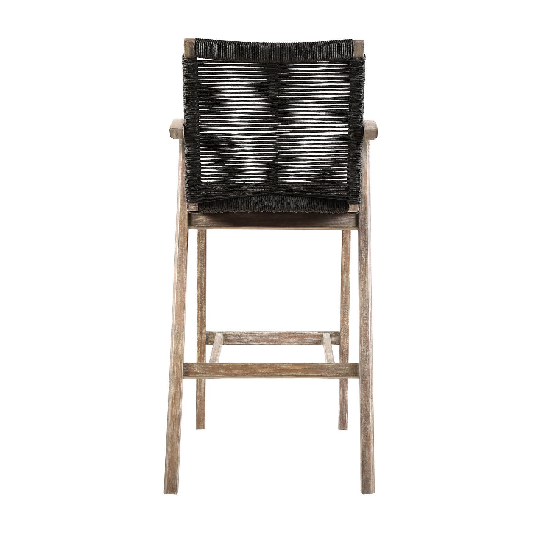 The Armen Living Nabila Eucalyptus and Rope Outdoor Patio bar and counter stools celebrate the outdoors with a design you will not see anywhere else. Enjoy time around the table with loved ones indoor or out! The Nabila Outdoor Patio bar and counter stools are available in your choice of gray rope with an Earth (dark) finish or charcoal rope with teak (light) finish. Its solid eucalyptus frame naturally repels moisture and is cleverly shaped to imbue a floating armrest aesthetic. Wrapped in resilient regatta rope cording, the seat and back provide a remarkable level of comfort while still allowing the elements to pass through.