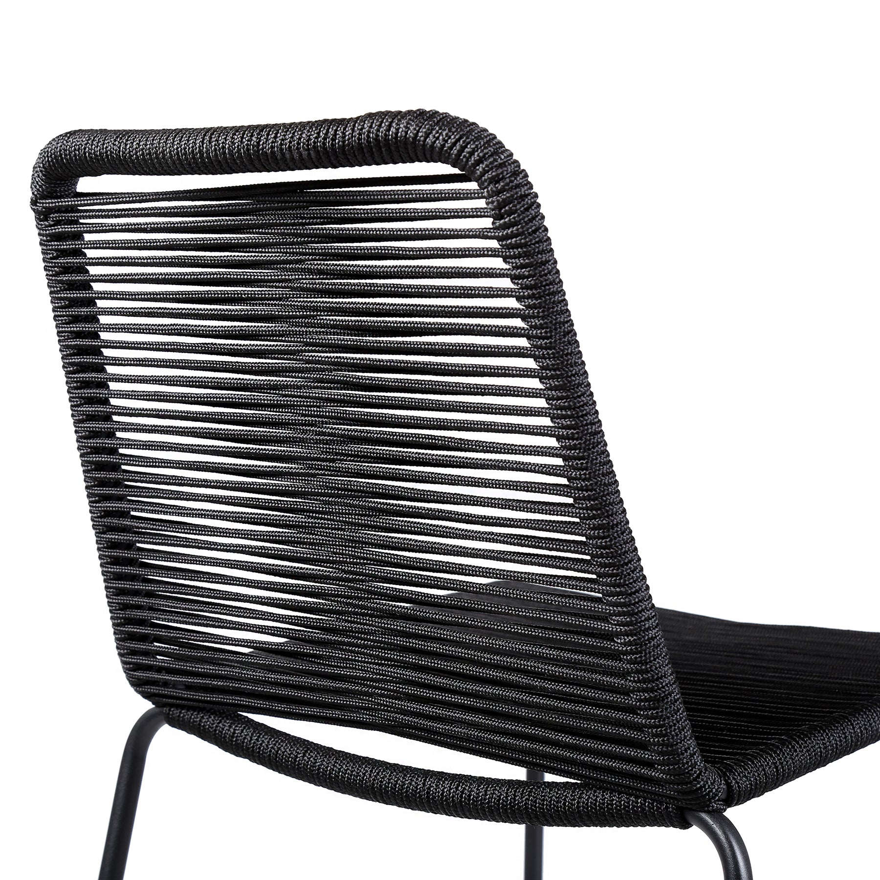 The Armen Living Shasta Outdoor Patio Bar Stools - are a terrific choice for any contemporary patio bar and seating arrangement. This beautiful black powder coated barstool features a durable steel frame, allowing for easy arrangement without compromising on dependability. This stool is perfect for any backyard porch, patio deck, outdoor balcony, or for an outdoor counter/bar area. The tall, roomy, and ergonomic design of the Shasta bar stool creates a wonderful experience that will keep you relaxed and comfortable for as long as you are seated. Lightweight and durable, the Shasta's black powder coated finish steel frame allows for ease of rearrangement without compromising on quality or aesthetics. Wrapped in UV-resistant and water-resistant regatta rope cording, the seat and back provide a remarkable level of comfort while still allowing the elements to pass through - also enhancing your seating experience with a softness that rivals most fabrics. The Shasta fishbone weaved seat and back provides a a stylish design perfect for any weather. Each stool is made with the best craftsmanship, with this stool standing on top of durable steel legs in a black finish for a modern look. This simple chair is suitable for both indoor and outdoor settings, and this barstool features sturdy sled legs tipped with included floor protectors to prevent slipping and scratching. The Shasta is the perfect outdoor comfort product. The Shasta is available in your choice of black, gray, brick red, tangerine orange, and wasabi with 26” or 30” height variations, all with a beautiful and modern black steel frame.