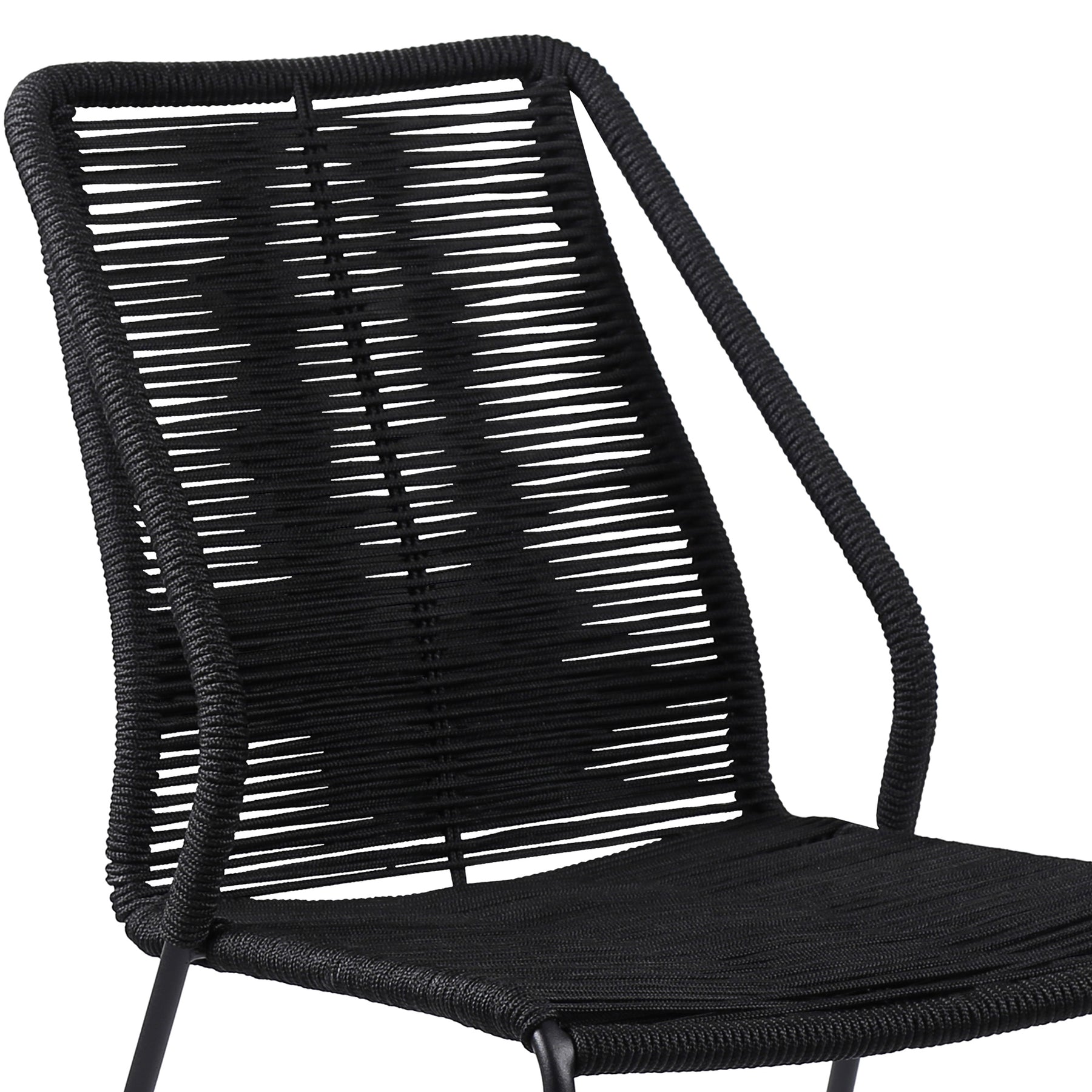 The Sydney and Clip 3 Piece Outdoor Patio Dining Set elevates your outdoor space with a touch of modern flair. The mixed materials work well together and create a fun and cohesive dining set for your front porch, back yard, pool side space, or patio. Constructed from eucalyptus wood and a gray super stone top, the 36-inch round dining table is a modern addition that easily fits into any space. This patio dining table features sleek tapered wood legs that allow for ample leg room. One of the best reasons to choose Eucalyptus wood for your outdoor furniture or four-seasons porch is that it is exceptionally resistant to decay and rot. It naturally resists the influence of moisture because of the high oil content it naturally contains. That means it can get damp without you worrying about whether damage will occur. It can withstand several different outdoor elements while lasting for many years if it receives proper care. Defined by functional simplicity and timeless beauty, the dining table delivers a harmony of natural textures to complement any outdoor space. The stone top features a 5-layer composite with 2 layers of cement fiberboard surrounding the aluminum honeycomb core. This beautiful tabletop is durable and robust - capable of withstanding inclement weather and everyday wear and tear. The intricately woven rope featured on the durable metal frame of the Clip dining chairs form to offer you extreme comfort and relaxation. These outdoor chairs are wrapped in resilient regatta rope cording, providing supple support while still allowing for element passthrough - also enhancing your seating experience with a softness that rivals most fabrics. Each chair is made with the best craftsmanship, with these chairs standing on top of durable metal legs in a black finish for a modern look. For use indoors and out, the soft UV coated nylon cords are hand dyed resulting in subtle tonal variations. The Sydney and Clip dining set is available in a black eucalyptus finish on the table with gray 36 inch round gray stone top, the clip dining chairs feature a black metal base with your choice of gray, black, blue, or brick red rope.