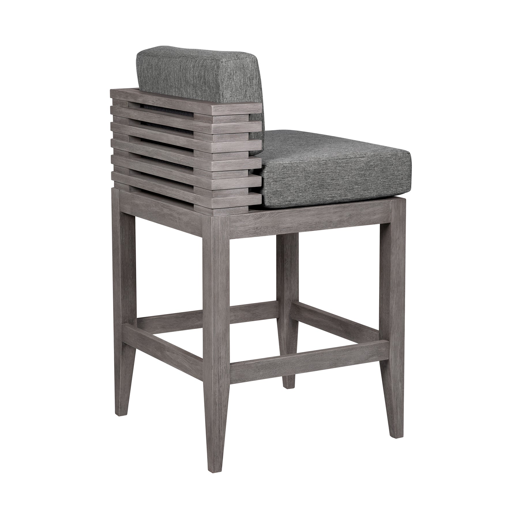 Introducing the Vivid Outdoor Patio Bar or Counter Stool – a harmonious blend of sophistication and resilience crafted to elevate your outdoor entertaining experience. Meticulously designed with an emphasis on both style and durability, this stool becomes the focal point of your patio or outdoor bar area, seamlessly combining the enduring charm of Eucalyptus wood with the practicality of water-resistant and UV-resistant features. Crafted from durable Eucalyptus wood, the Vivid Outdoor Patio Bar or Counter Stool not only exudes timeless elegance but also promises lasting durability. The versatile design makes it a perfect match for both bar and counter heights, adapting effortlessly to your outdoor space's specific needs. Designed for those who appreciate the outdoors, this stool boasts water-Eucalyptus and UV-resistant frame and upholstery, ensuring it withstands the elements with grace. Whether soaking up the sun or facing unexpected rain, the Vivid Bar or Counter Stool remains a steadfast companion for your outdoor entertaining. Sink into the plush Olefin cushions, available in a neutral tone, providing a comfortable and inviting seat for your guests. With water-resistant capabilities and easily removable covers, maintaining the freshness and allure of your outdoor entertaining space has never been easier. Create a welcoming atmosphere in your outdoor bar or counter area with the Vivid Outdoor Patio Bar or Counter Stool in Eucalyptus Wood. Its sleek and versatile design complements various outdoor settings, making it an ideal choice for those seeking a perfect balance of style and functionality. The Vivid Barstool collection is available in your choice of gray or taupe Olefin fabric in 26 inch and 30 inch seat heights.