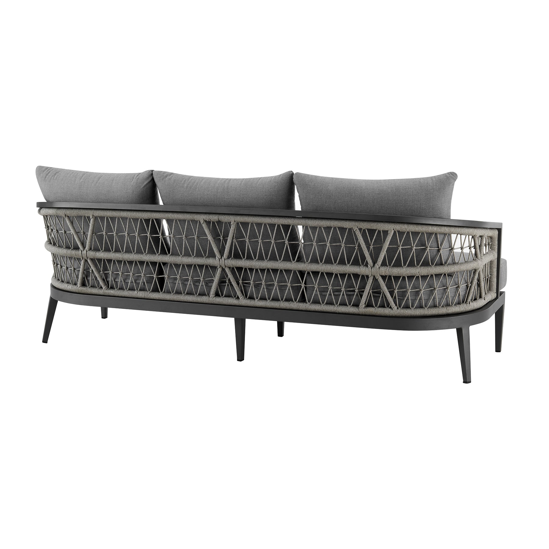 Introducing the Zella Outdoor Patio 4 Piece Conversation Set in Aluminum with Light Gray Rope and Cushions - a symphony of modern design and outdoor luxury meticulously crafted to redefine your lounging experience. The collection seamlessly blends sleek aluminum with inviting light gray rope detailing and plush Earl Gray cushions, creating a sophisticated and enduring ensemble. The Zella Outdoor Patio Armchair, a masterpiece in itself, features a robust aluminum frame, ensuring durability and a contemporary aesthetic. Water-resistant and UV-resistant, it stands as a steadfast and stylish seating solution for your patio. The incorporation of light gray rope detailing adds a unique visual dimension, creating a captivating contrast with the sleek aluminum frame. Paired with Earl Gray cushions, it invites you to relax in both style and comfort, transforming your outdoor space into a sanctuary. Joining the ensemble is the Zella Outdoor Patio Sofa, a fusion of contemporary design and outdoor luxury. With a sturdy aluminum frame, water-resistant and UV-resistant features, and the added charm of light gray rope detailing, this sofa remains a reliable centerpiece for your outdoor gatherings. Paired with Earl Gray cushions, it offers an inviting and luxurious seating option, perfect for hosting outdoor gatherings or seeking a tranquil retreat. Completing the set is the Zella Rectangular Coffee Table, a contemporary masterpiece that marries sleek aluminum with a refined charcoal finish and light gray rope detailing. Designed for outdoor durability, it stands as a steadfast and stylish addition to your patio, offering a functional and inviting surface for your outdoor living needs. Invest in the Zella Outdoor Patio Furniture Collection, where contemporary elegance meets the demands of modern outdoor living.