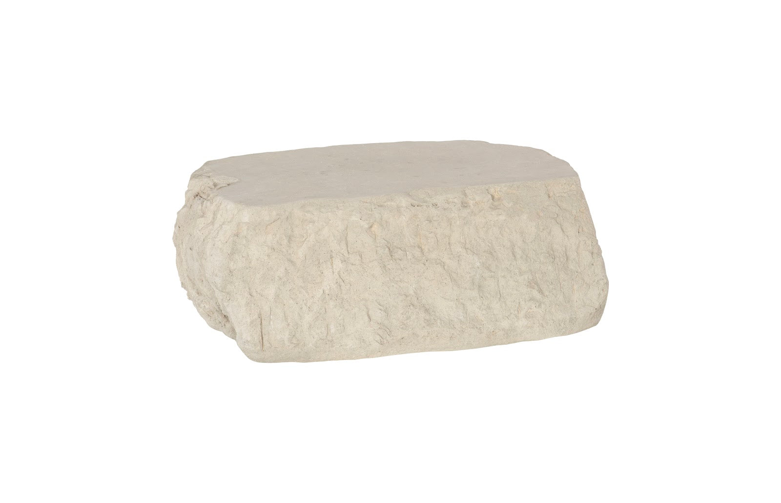 The Large Quarry Coffee Table offers the perfect blend of organic shape and modern materials. Our Roman Stone finish is created with a resin and crushed stone composite which lends an authenticity of a natural boulder without the weight. Its rocky shape and uneven edges add a touch of rustic charm, while the composite ensures its durability and lightweight. Whether used as a statement piece or simply for functionality, the Quarry Coffee Table is sure to make a bold impact in any home.