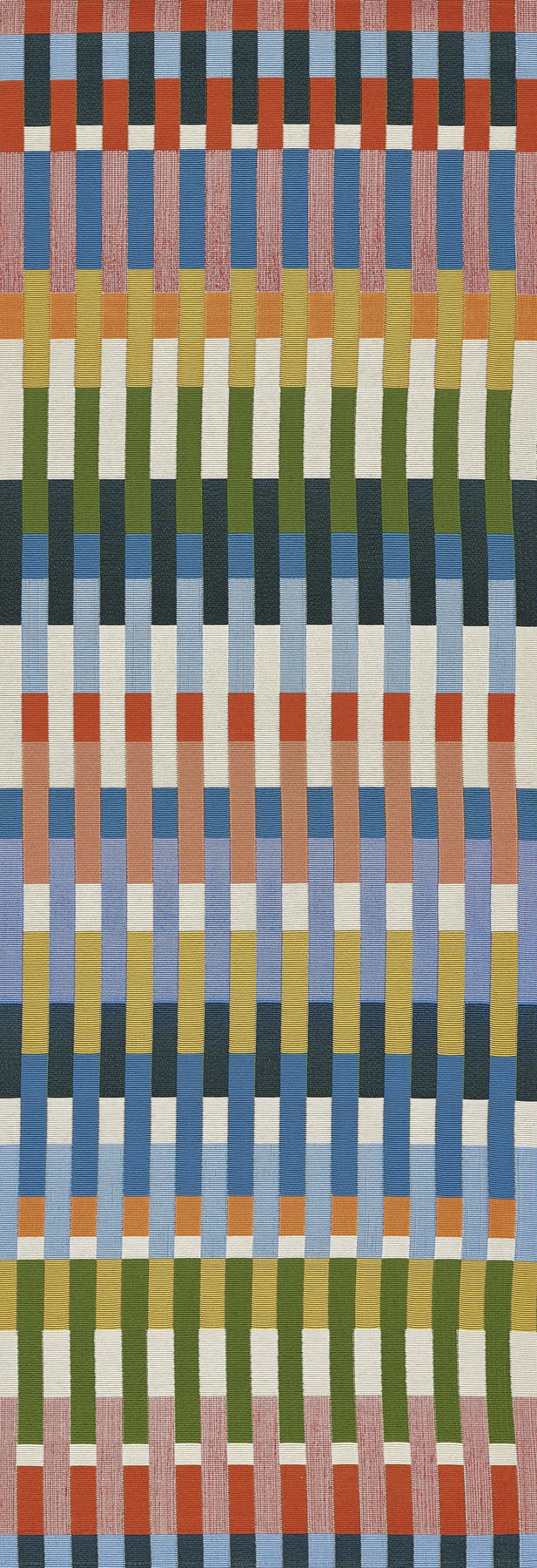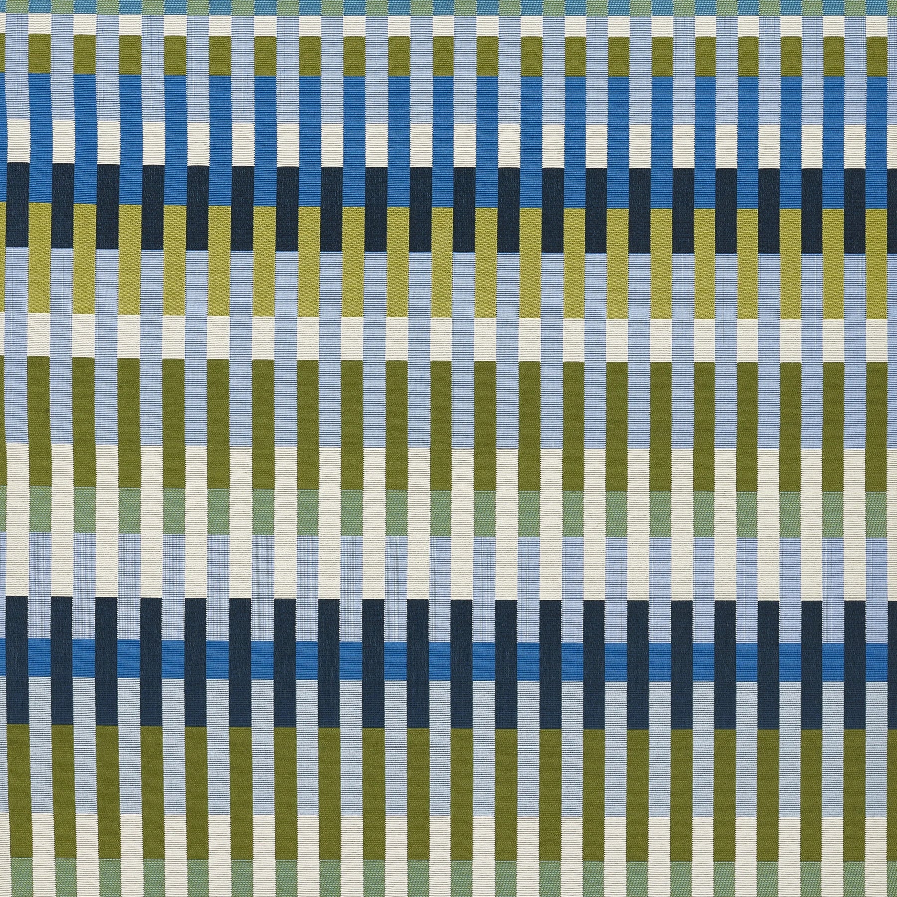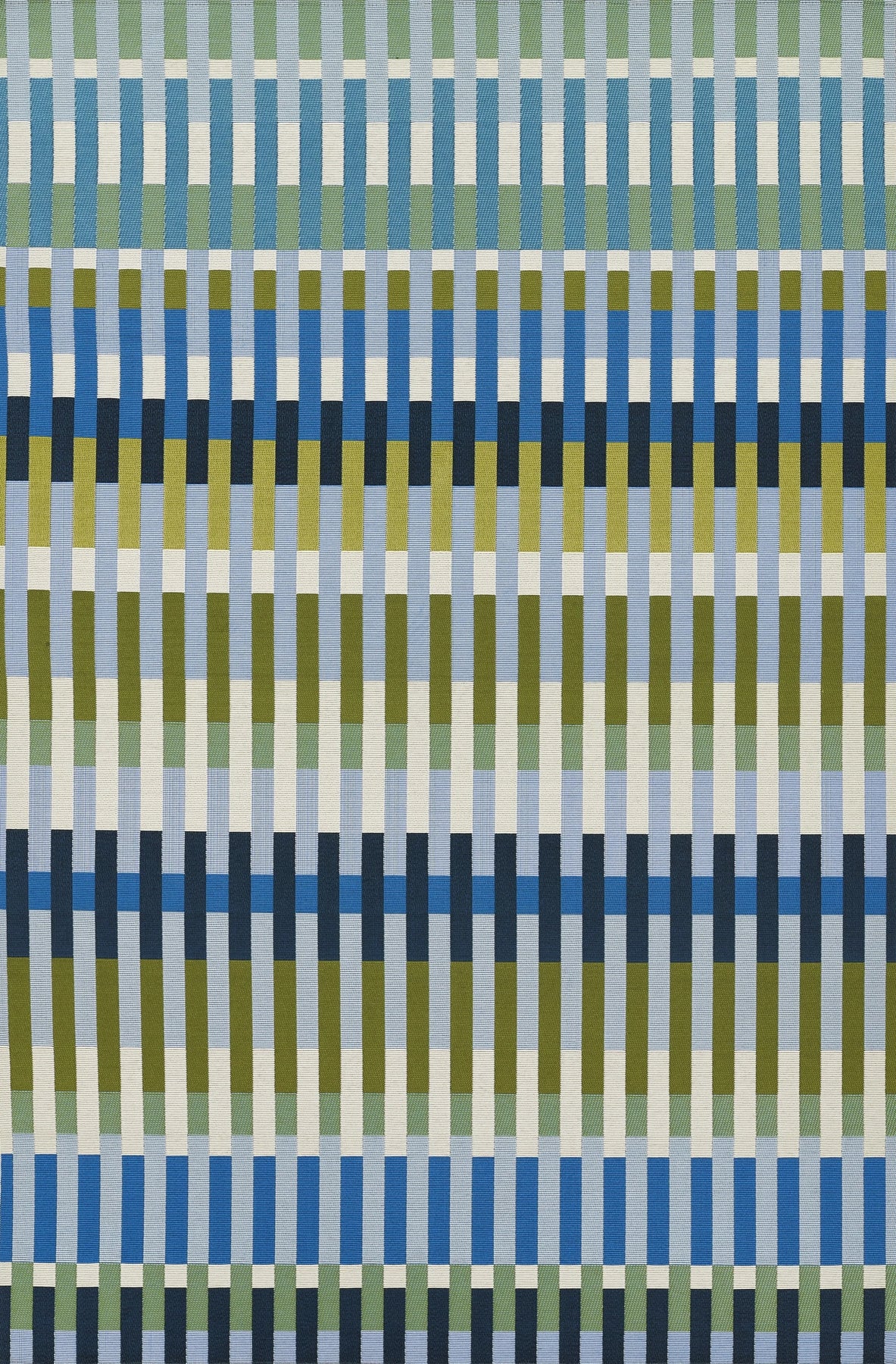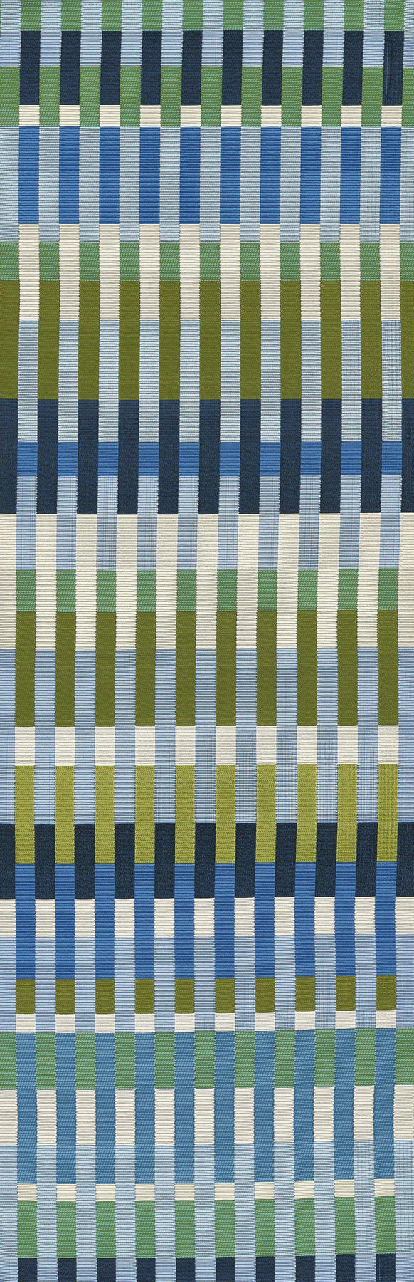 This statement rug features a striking geometric pattern with alternating shades of blue and green, with abstract lines and geometric stripes. The block-style design creates a sense of movement and depth, making it a bold and eye catching addition to your space. Its earthy and cool-toned color palette brings a calming yet vibrant feel, making it suitable for both modern and coastal-inspired interiors.