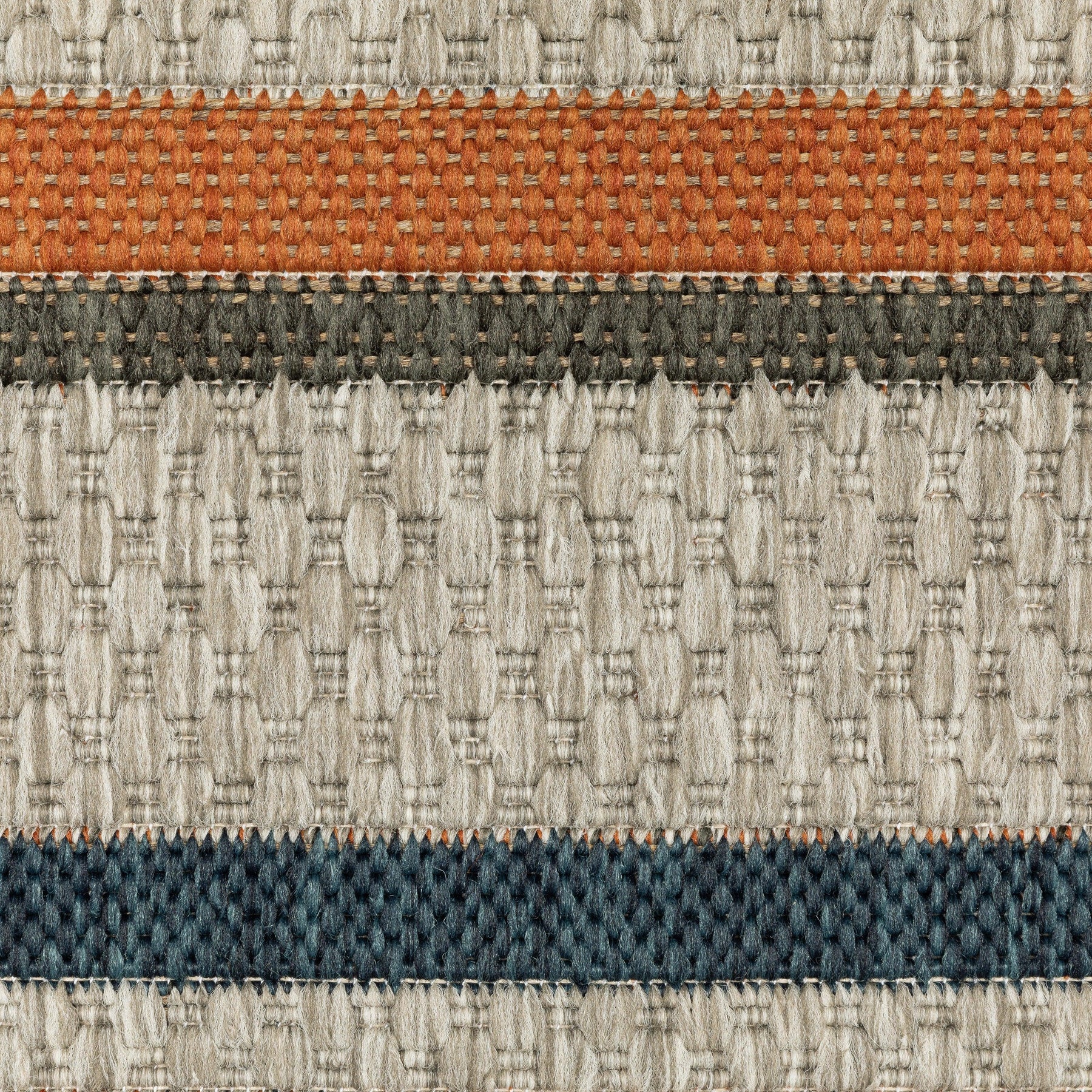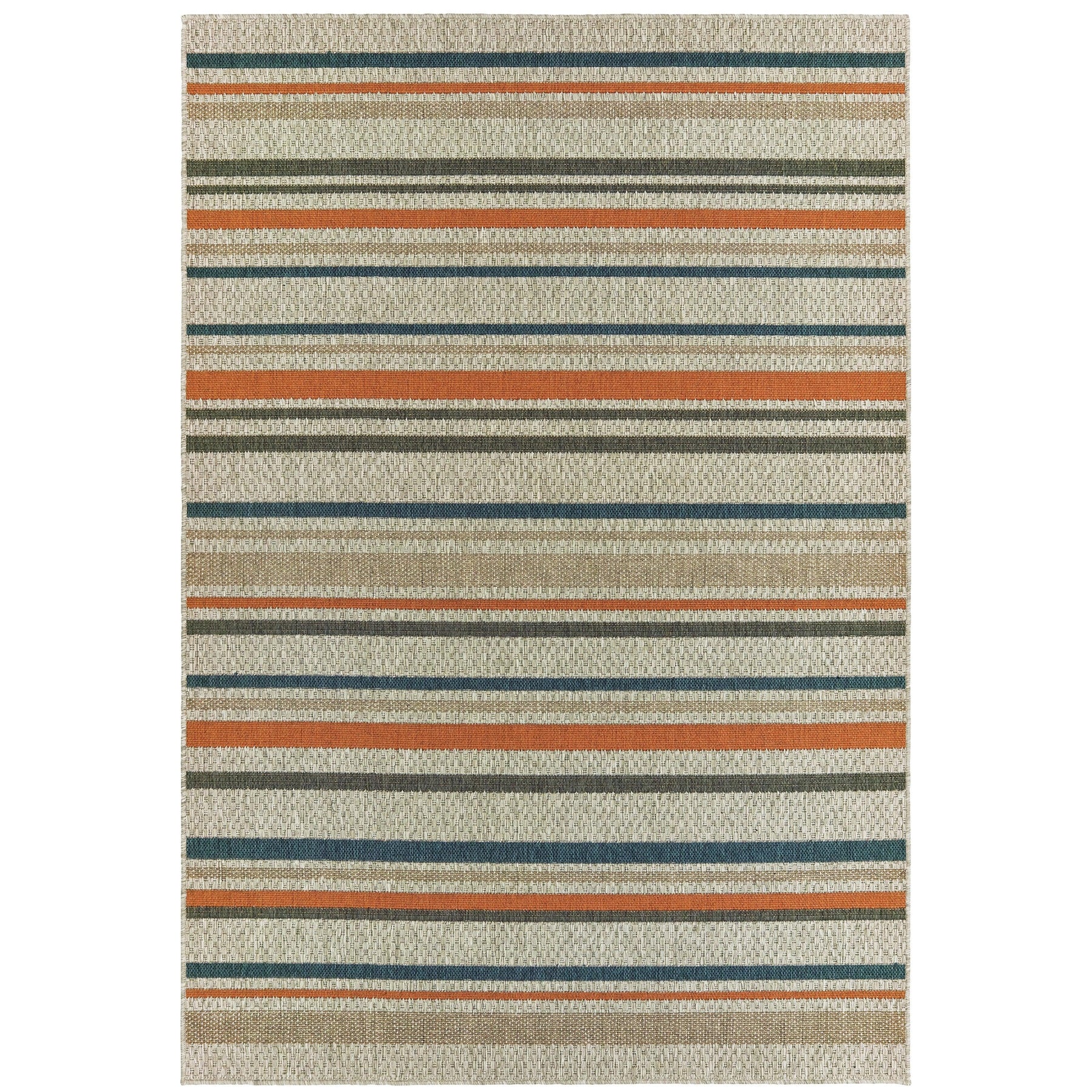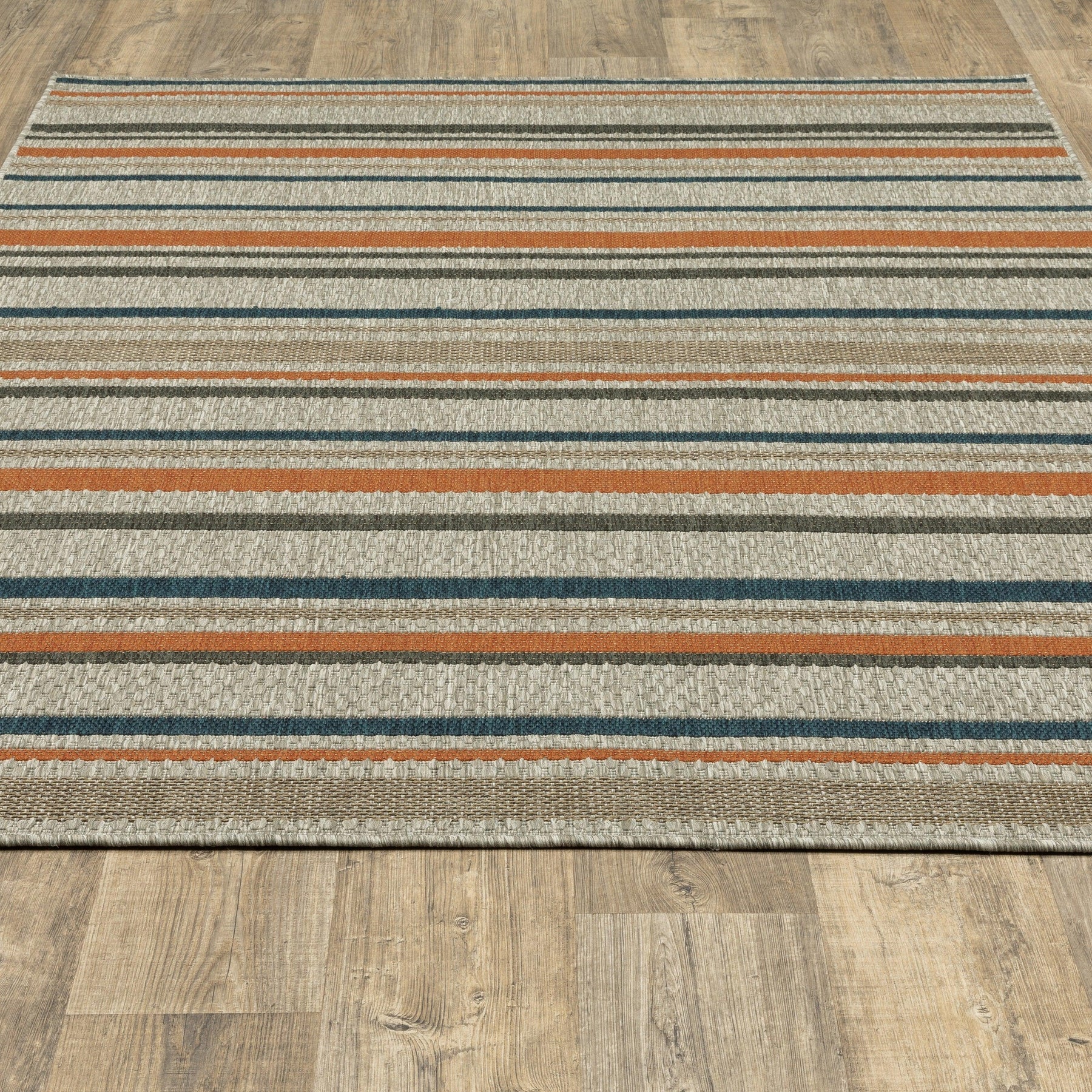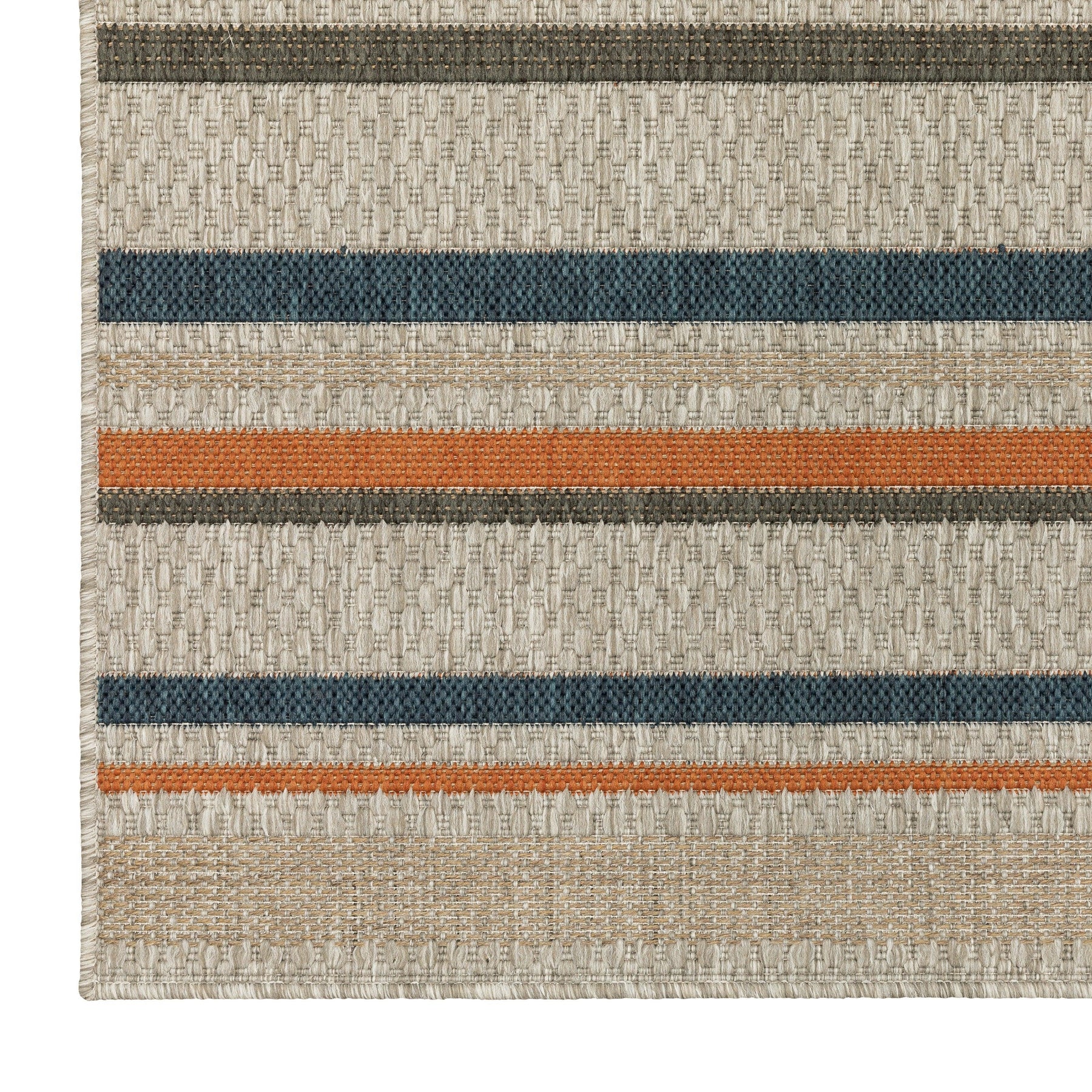 The Latitude collection showcases sophisticated designs ranging from traditional tile and medallion patterns to simple modern borders and geometrics. Multi-colored yarns in neutral grays, accented by tones of deep navy and vibrant persimmon, add texture and a pop of color underfoot. Machine-woven of 100% polypropylene, Latitude is easy to care for and can be used both indoors and out.