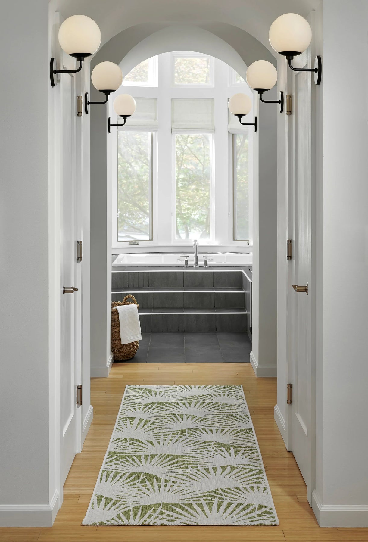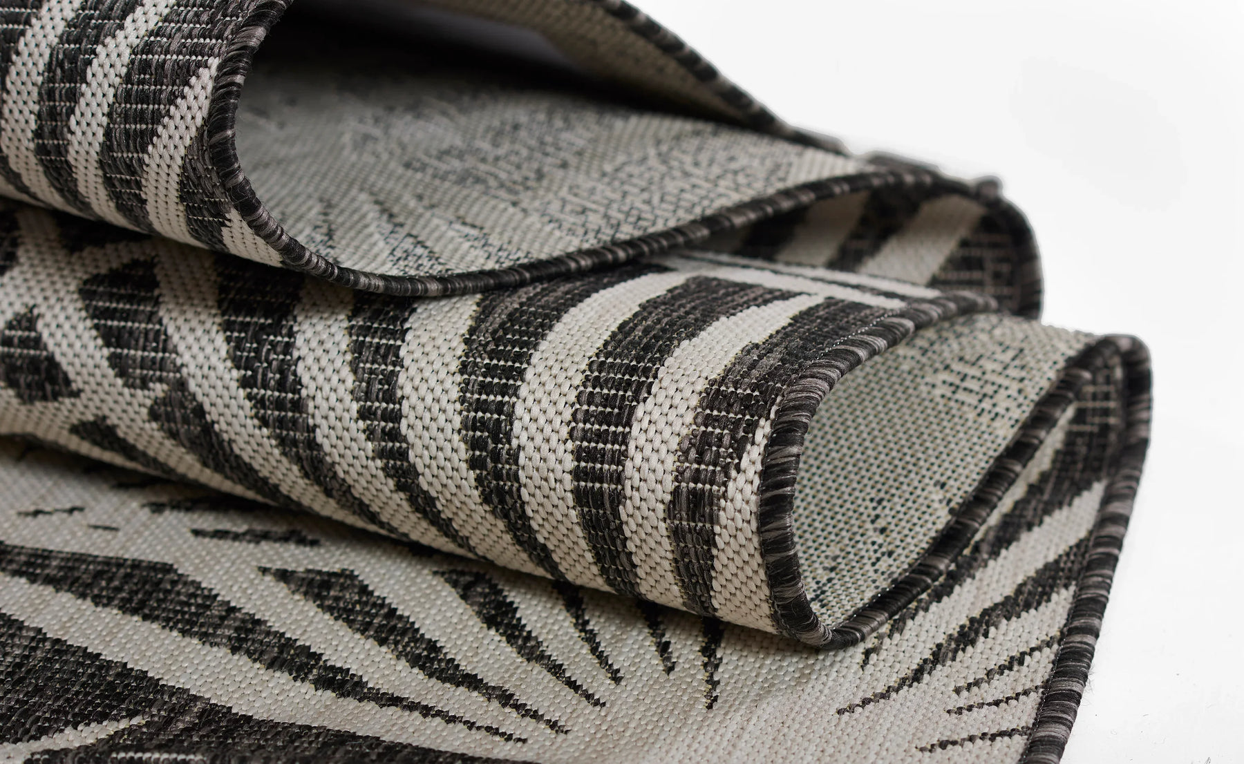This rug from the Villa collection by Novogratz delivers you some fun, bold, and graphic flavor for your home. Designed with a lush fan palm print and a charcoal-colored background, this rug is perfect for either indoor or outdoor spaces due to its machine-made polypropylene blend. In the case that it gets dirty, because kids, guests, or spills, simply shake it out or run it under a hose and she’s good to go.
