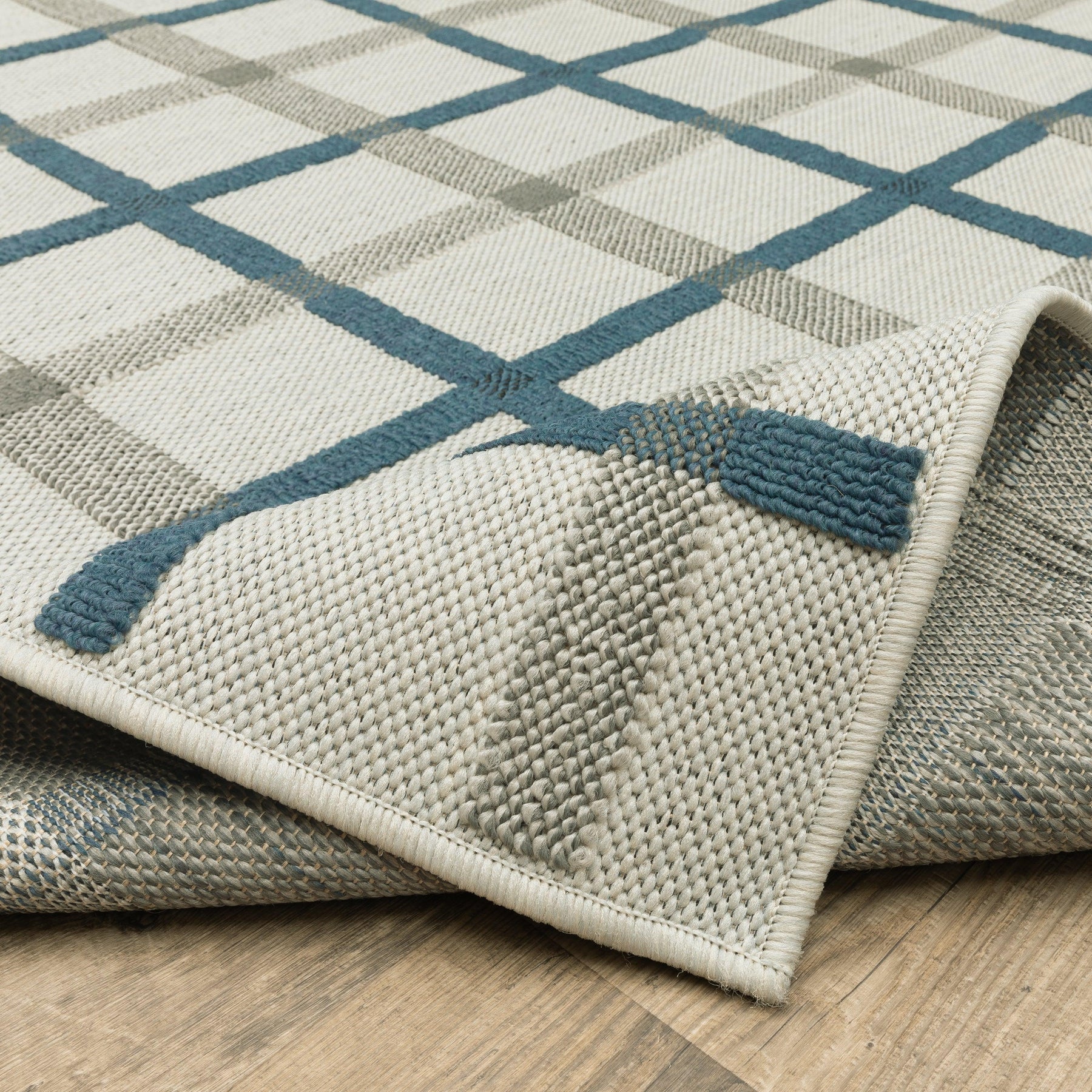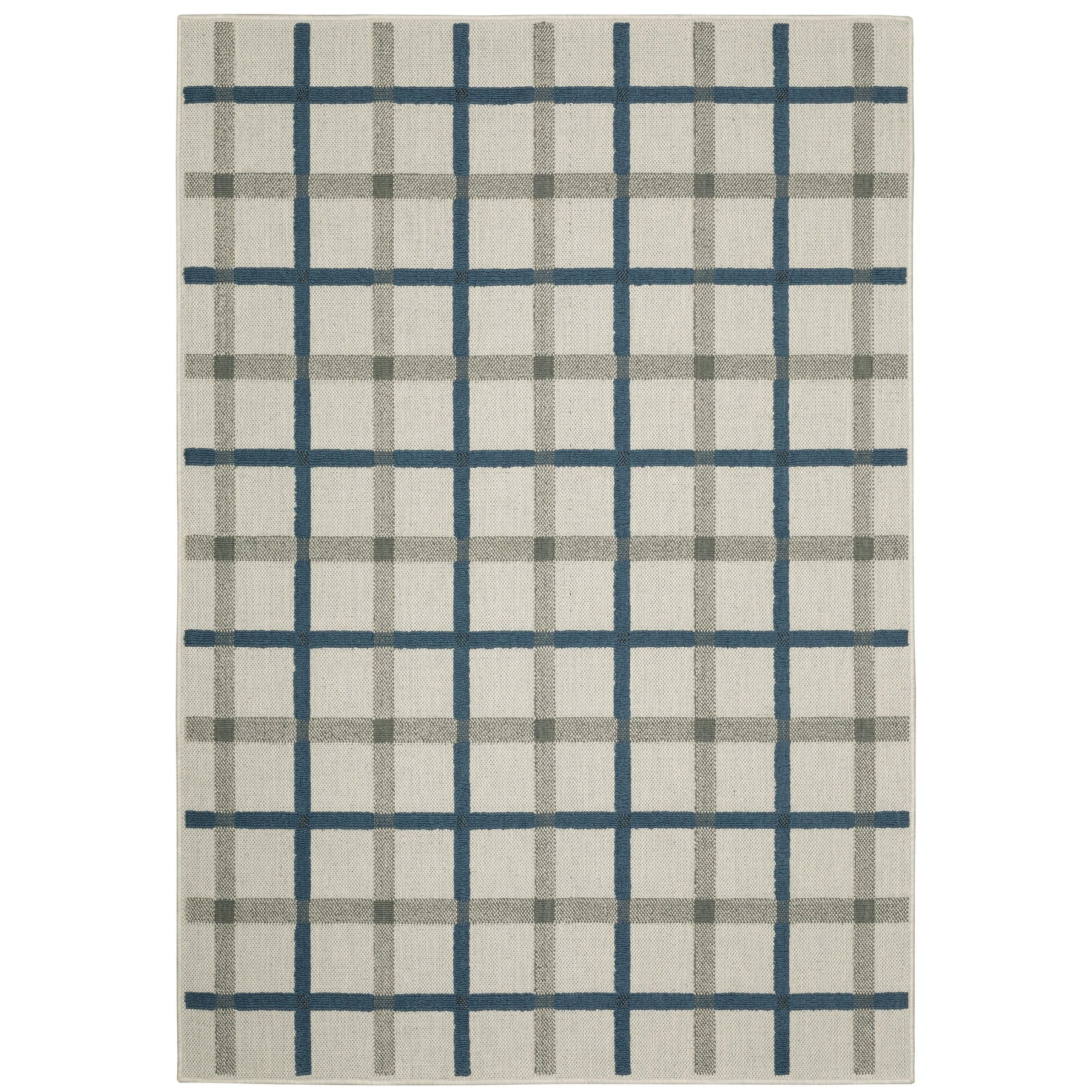 The unique construction of our new Torrey collection features both flatwoven and loop textures giving the line a tactile hand and interesting surface texture. The patterned loop pile in tri-colored shades of deep marine blue, dark charcoal and soft gray pops on the flatwoven base which is a beautiful, light neutral shade of soft platinum. Torrey designs range from classic border and stripe styles to updated medallions as well as global looks and more modern abstract pieces. The collection is constructed of 100% easy care polypropylene making it perfect for use in either indoor or outdoor spaces.