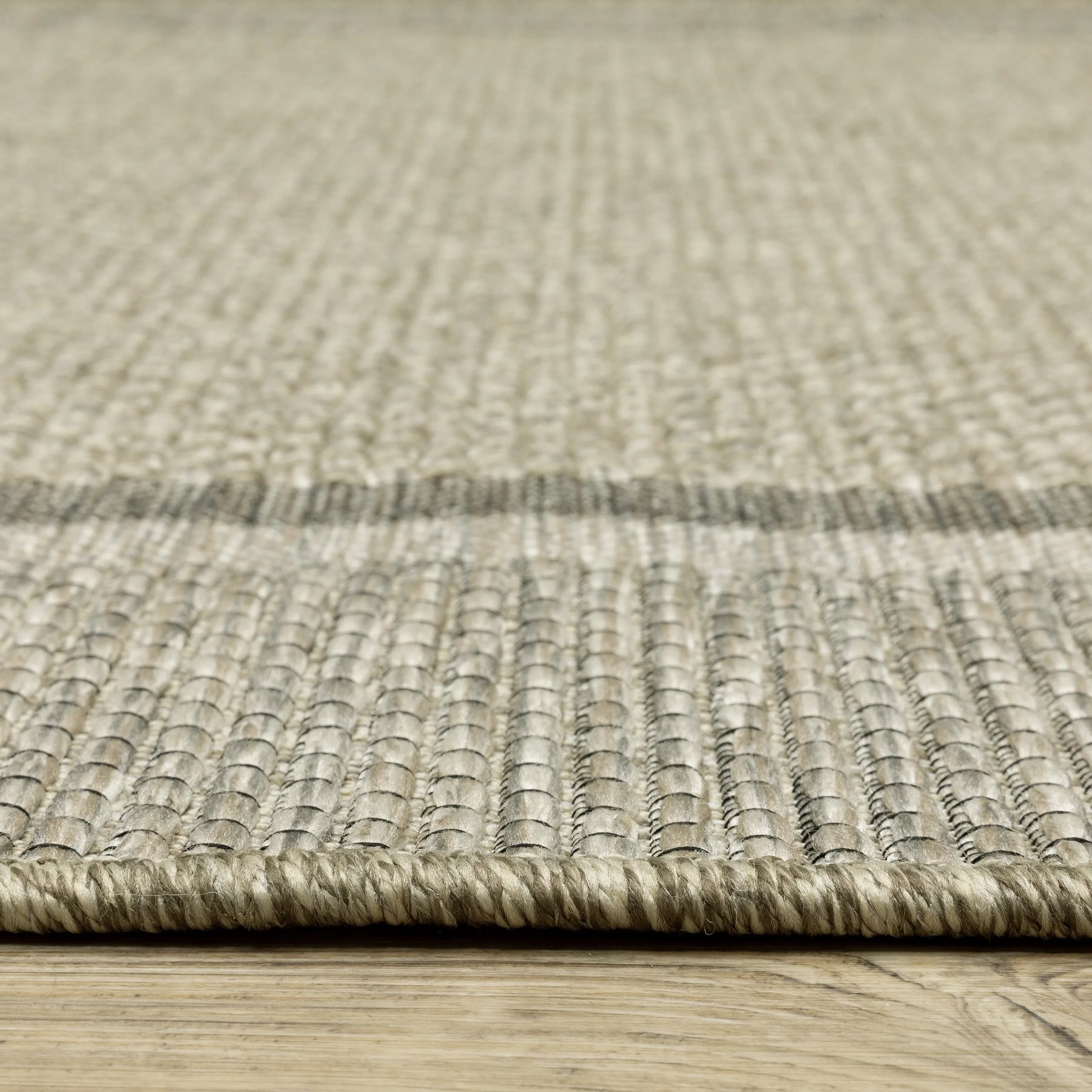 Tortuga, power-loomed of 100% polypropylene, features a textural, multi-level construction that gives the appearance of a high-end woven wool in an affordable, easy-care collection. Global inspired designs using multi-tonal yarns in neutral shades with a fine accent yarn in true black are sure to be the perfect finishing touch adding visual interest and dimension.