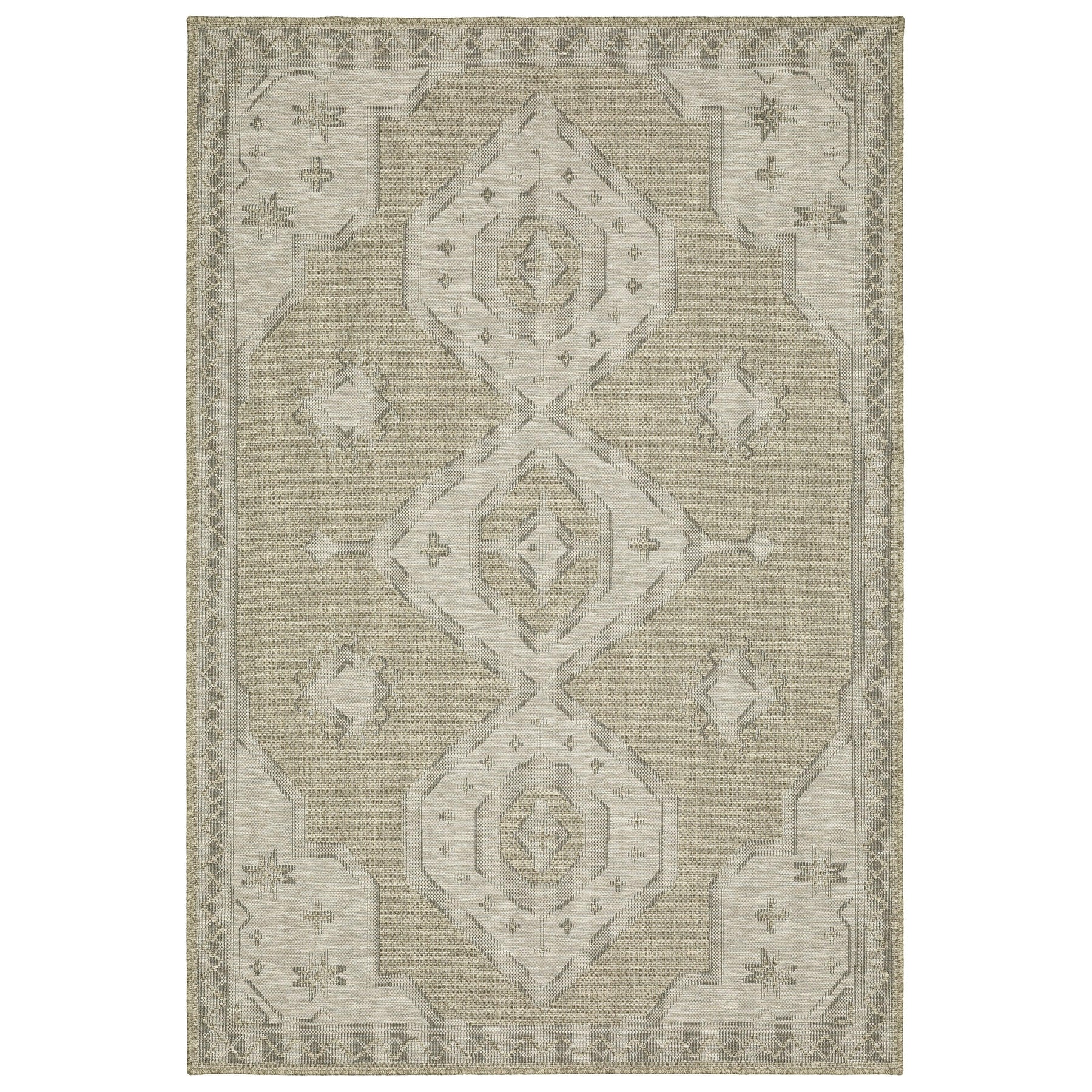 Tortuga, power-loomed of 100% polypropylene, features a textural, multi-level construction that gives the appearance of a high-end woven wool in an affordable, easy-care collection. Global inspired designs using multi-tonal yarns in neutral shades with a fine accent yarn in true black are sure to be the perfect finishing touch adding visual interest and dimension.