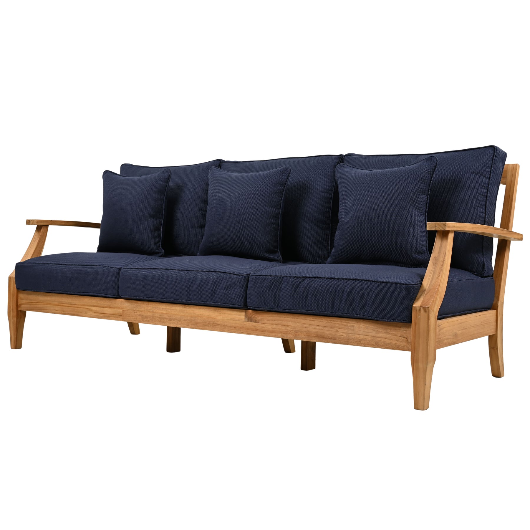 The lavish look of coastal villa decor comes to any outdoor patio, porch, or backyard deck with the Martinique Teakwood Patio Sofa. With ample seating for festive outdoor soirees or relaxing under the stars, Martinique boasts smooth curves and shapely angles in a natural teak wood frame with plush, all-weather Olefin cushions adding luxury and comfort season after season.