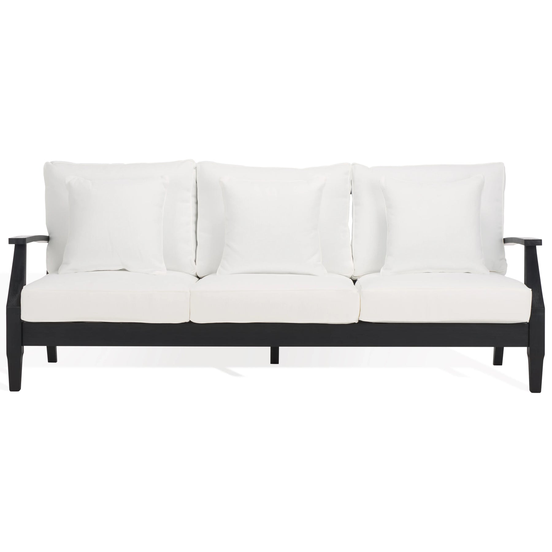 Bring the coastal villa vibe to your outdoor space with the Martinique Wood Patio Sofa. Crafted from natural eucalyptus wood, this sofa features smooth curves and elegant angles that add sophistication to your patio, porch, or backyard deck. Plush, all-weather Olefin cushions provide lasting comfort and durability, perfect for relaxing or entertaining outdoors season after season. Assembly required.