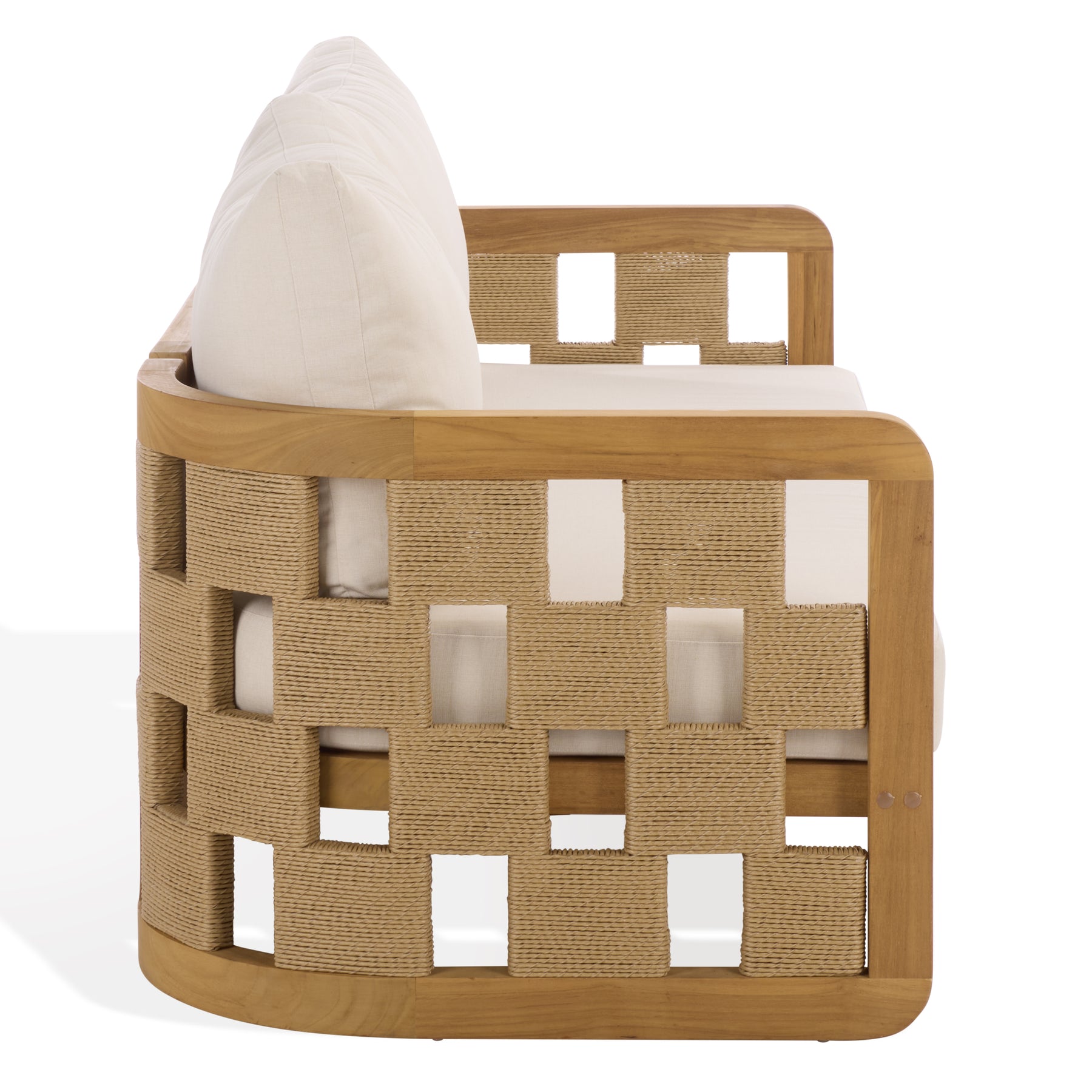 Transform your outdoor space with the Skipper Teak and Hyacinth Patio Sofa in natural and beige. This sofa perfectly blends wood and twisted hyacinth materials, adding a touch of understated elegance to any patio or garden setting. Its graceful design invites relaxation, making it an ideal spot to unwind with friends or soak in the tranquility of nature.
