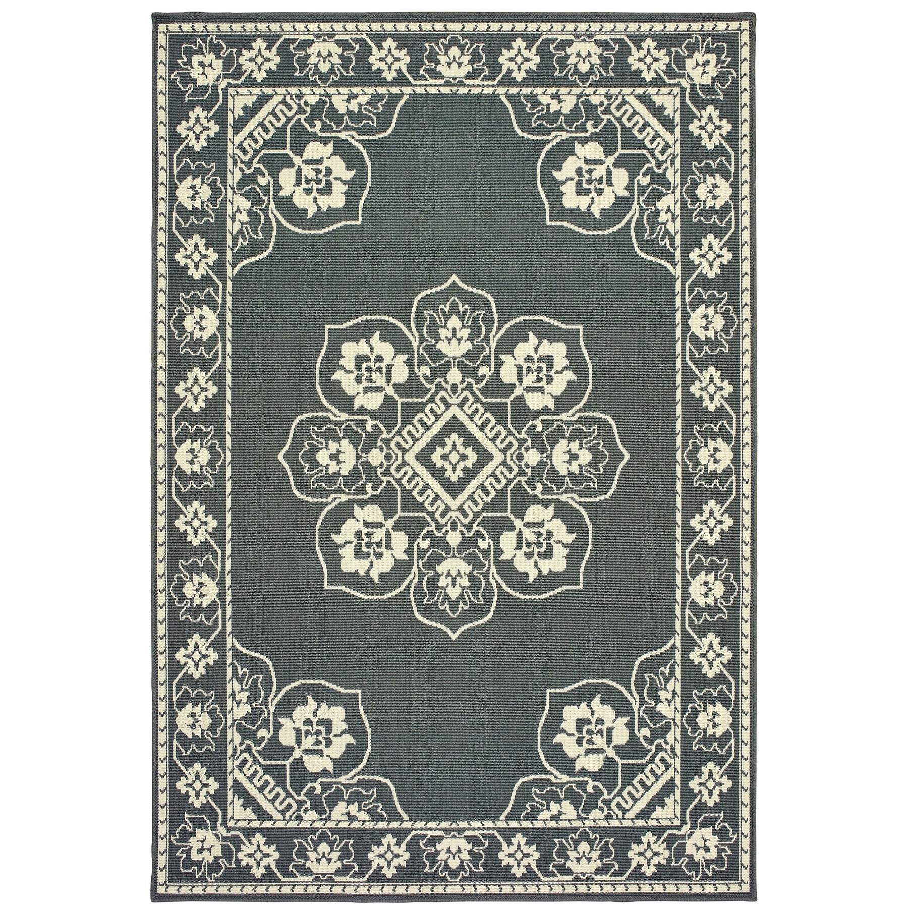 Marina is an elegant new introduction for indoor or outdoor use and features a 100% polypropylene looped yarn made in Egypt. It features a classic neutral palette using high contrast colors like black, ivory, deep navy, sand and cool gray. The collection includes casual but sophisticated patterns like updated geometrics and simplified traditionals that all feel fresh but timeless.