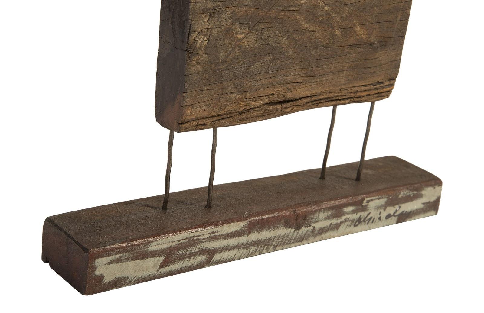 crafted and even has his signature on every piece. All of the wood is reclaimed and even the wire is