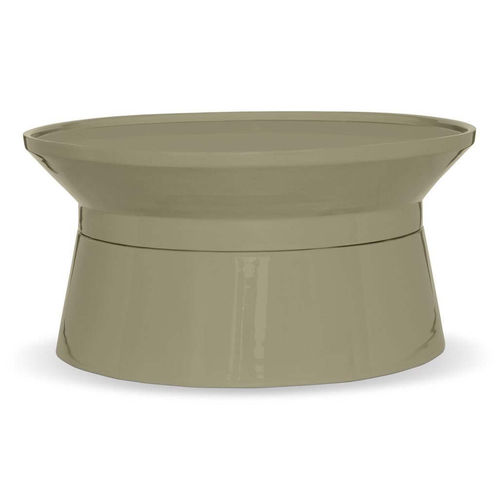This contemporary enamel coffee table features a low-profile, sculptural silhouette with a smooth, high-gloss finish. Crafted with durable enamel coating, it provides a refined, non-porous surface that is easy to maintain and built for everyday use.