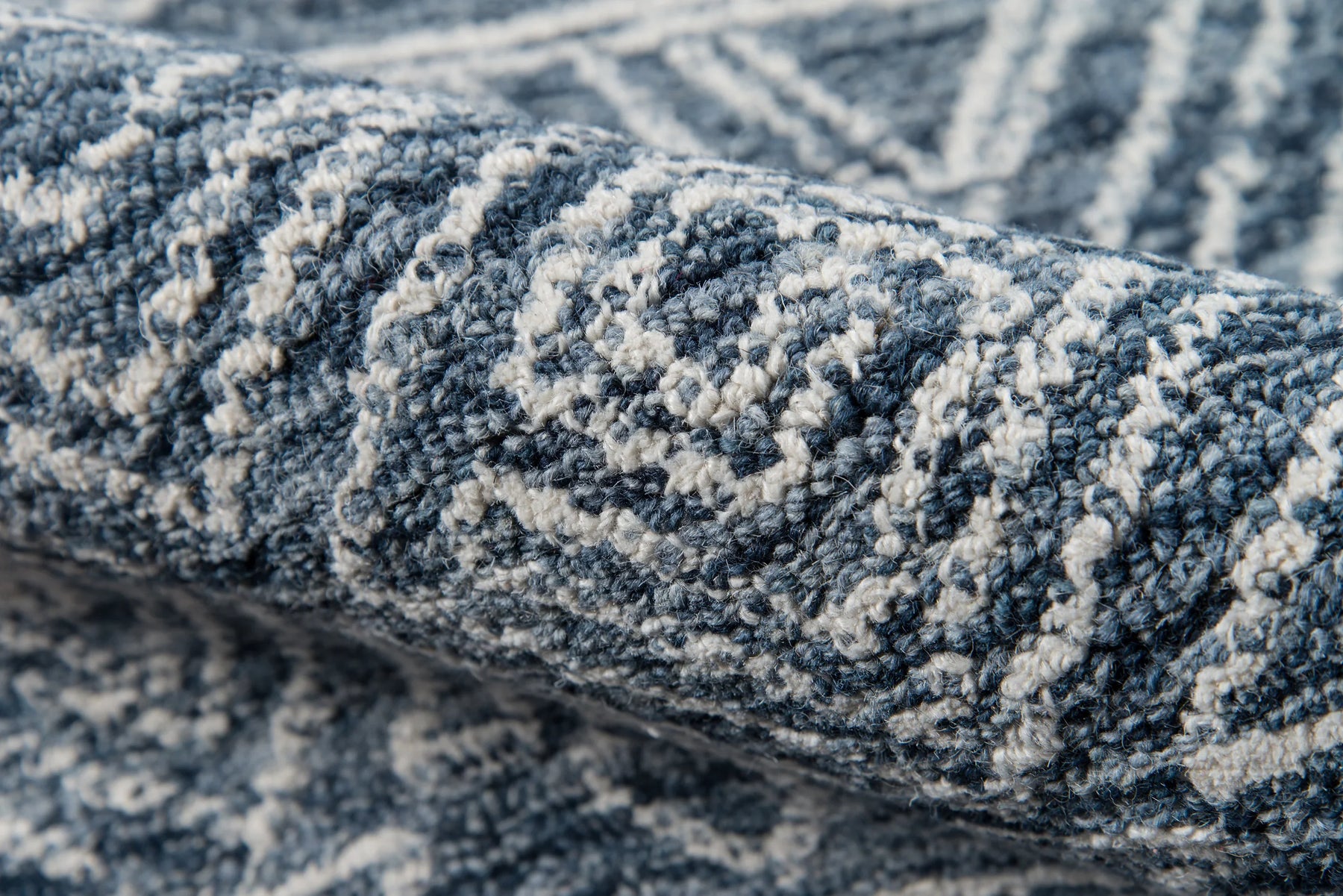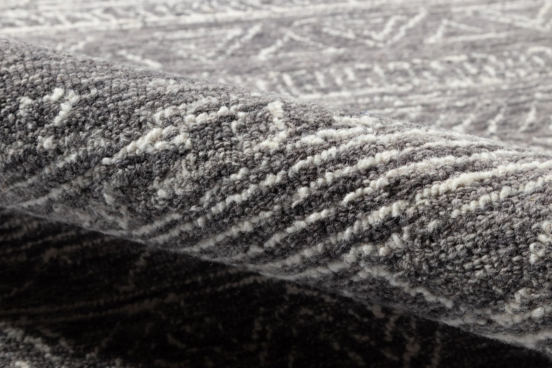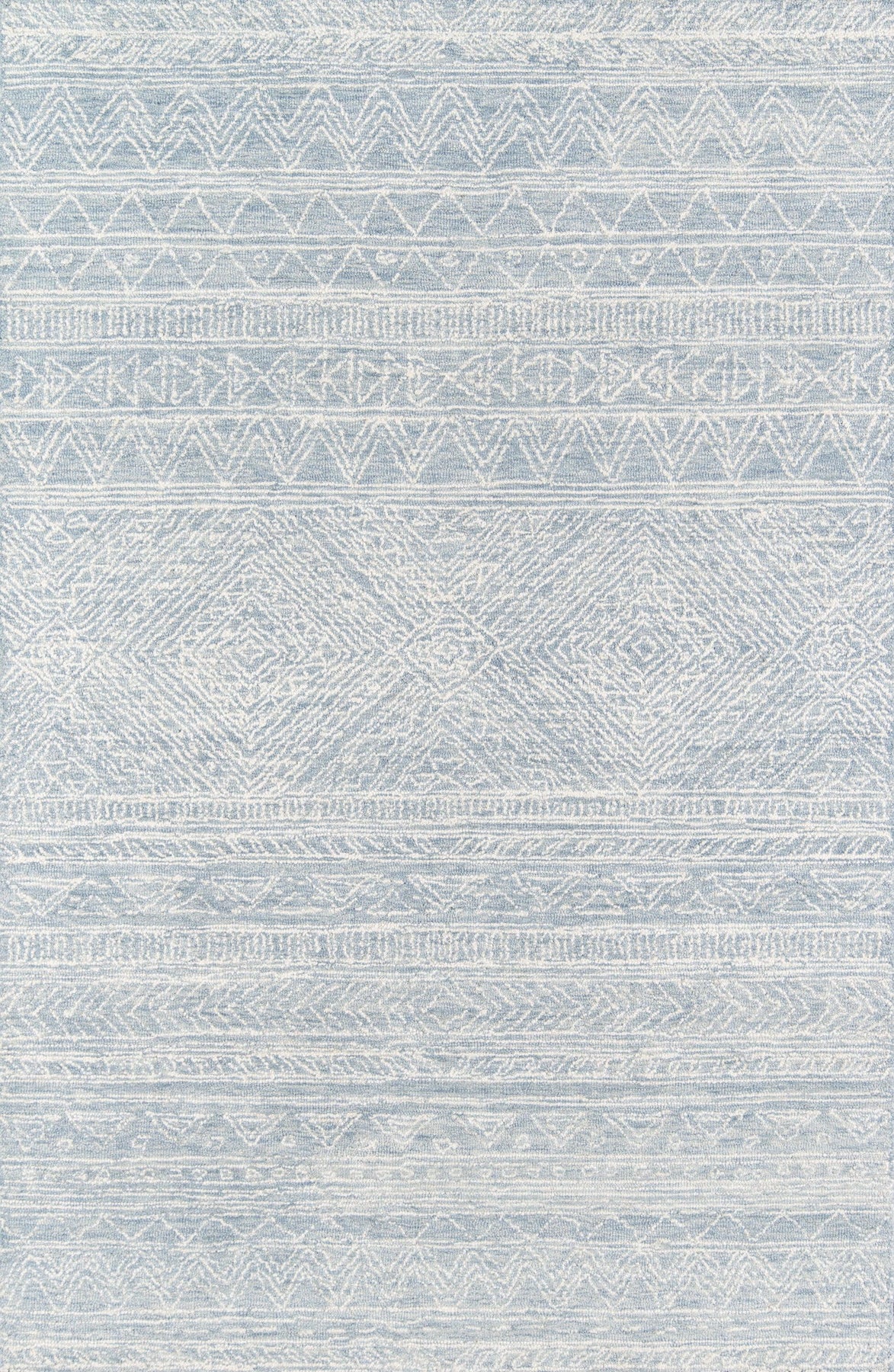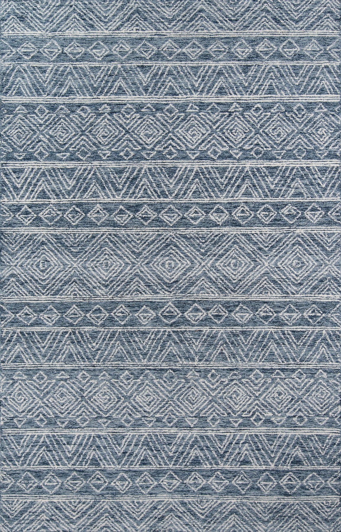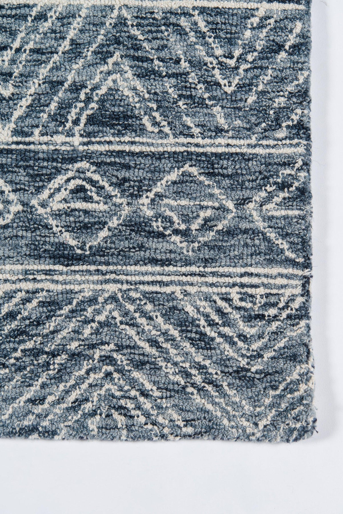 Allow the graphic gestures of this tribal area rug to define the decoration in the well-designed space. Geometric patterns abandon structural symmetry in favor of freehand forms, its casual expression lending an illustrative quality to ivory zigzags, diamonds and triangles that adorn the gray background. The elegant ease of the hand-hooked rug design belies its sumptuous texture, its twisted wool yarns the basis for many a barefoot moment.