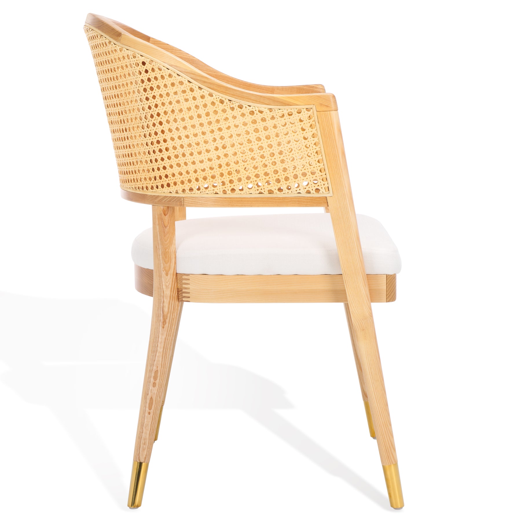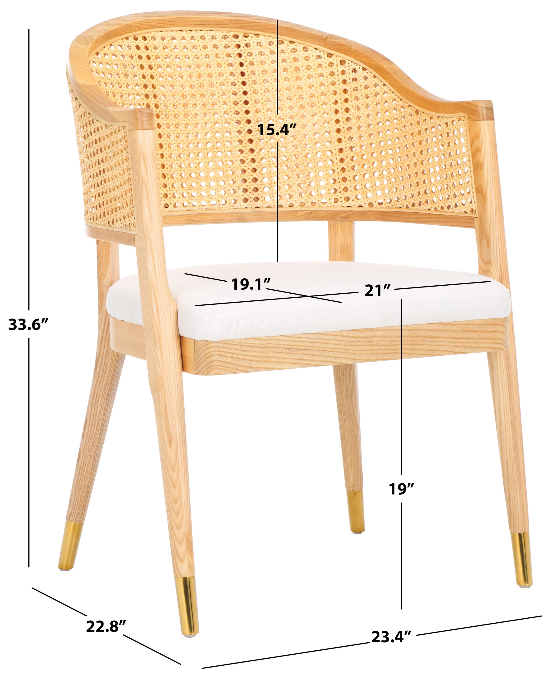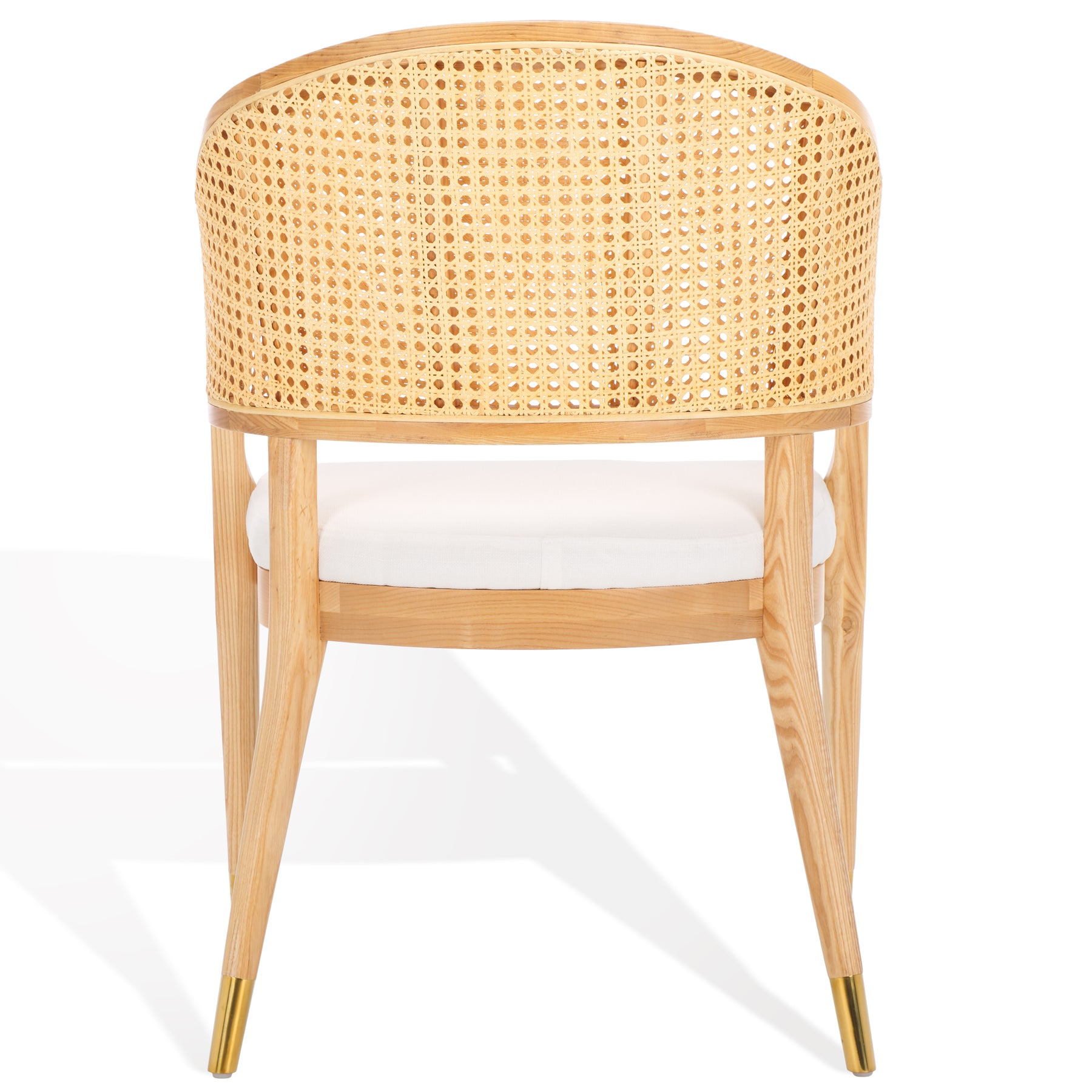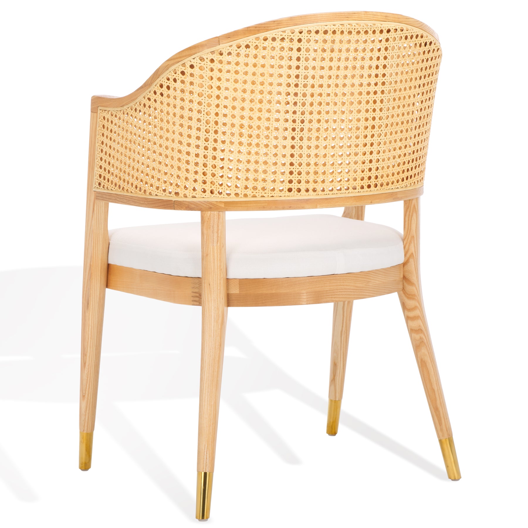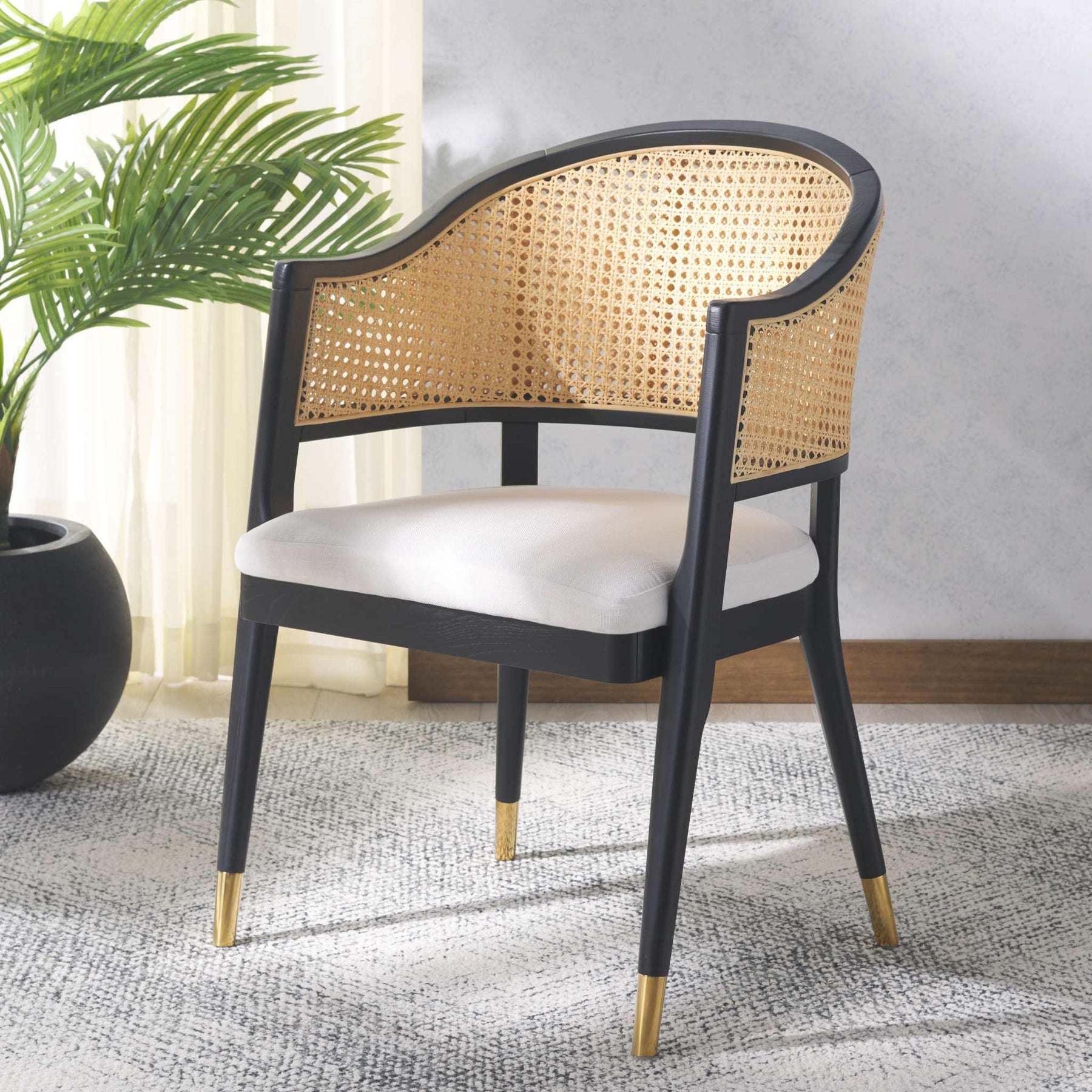 The Rogue Rattan Dining Chair reimagines a Mid Century design icon for today's contemporary chic interiors. Rogue's curved rattan back, stiletto inspired wood frame, and glamorous brass caps make it a bold, stylish statement piece in any modern dining room.